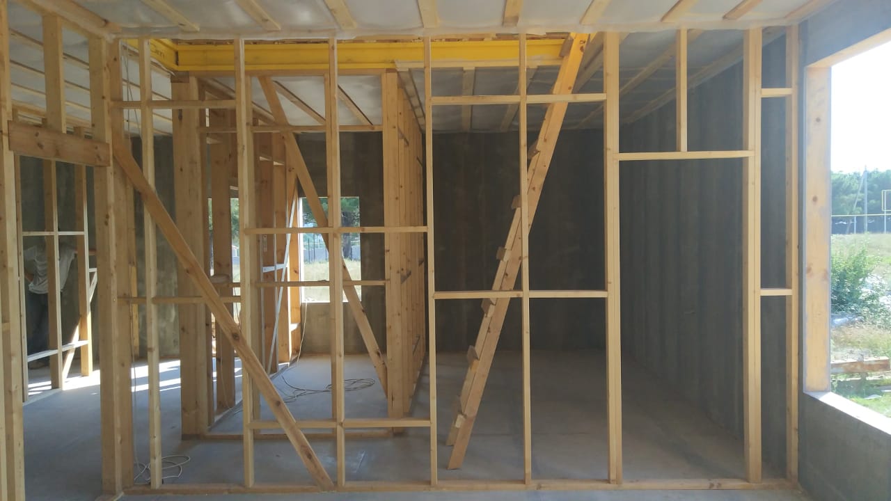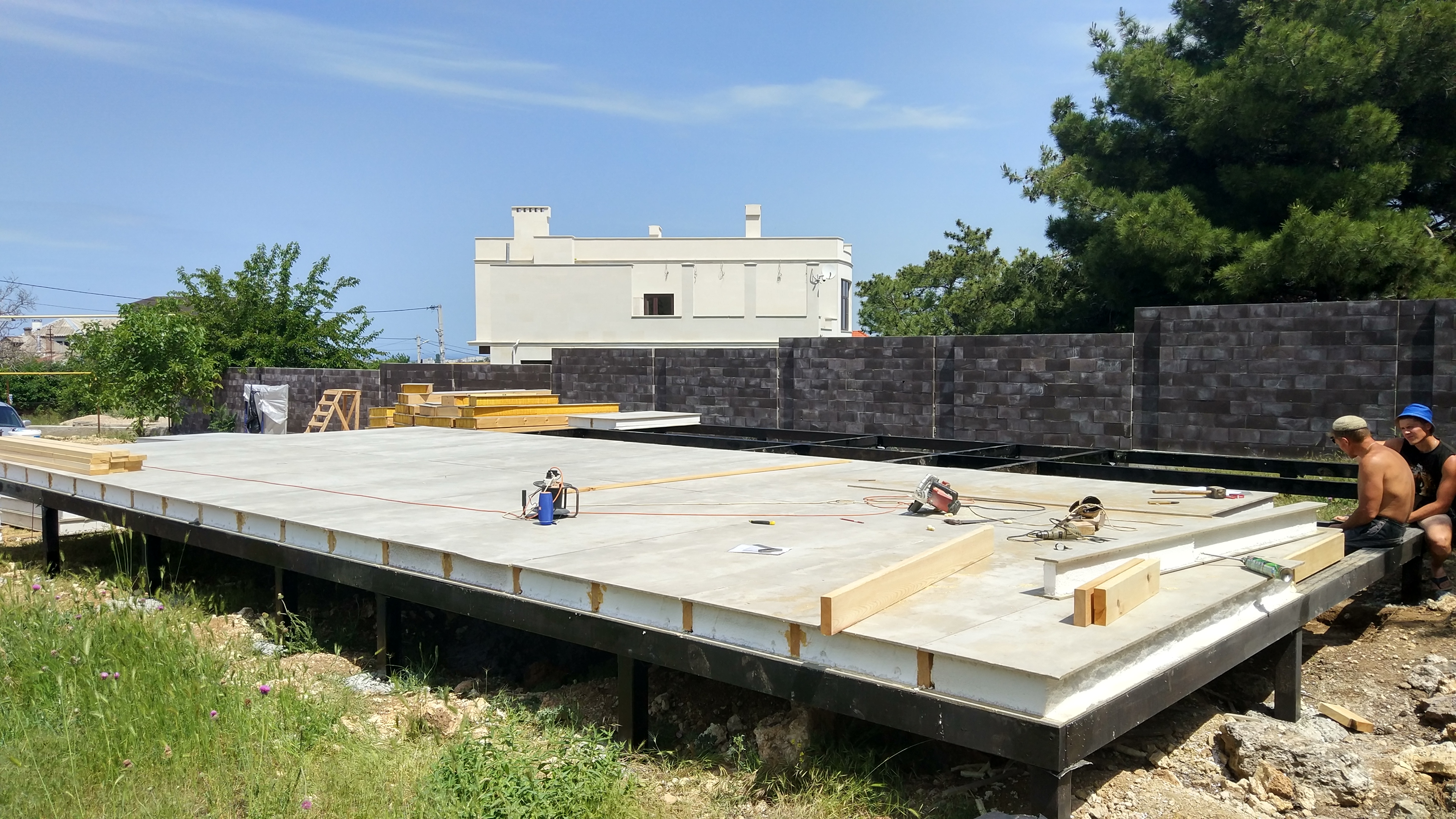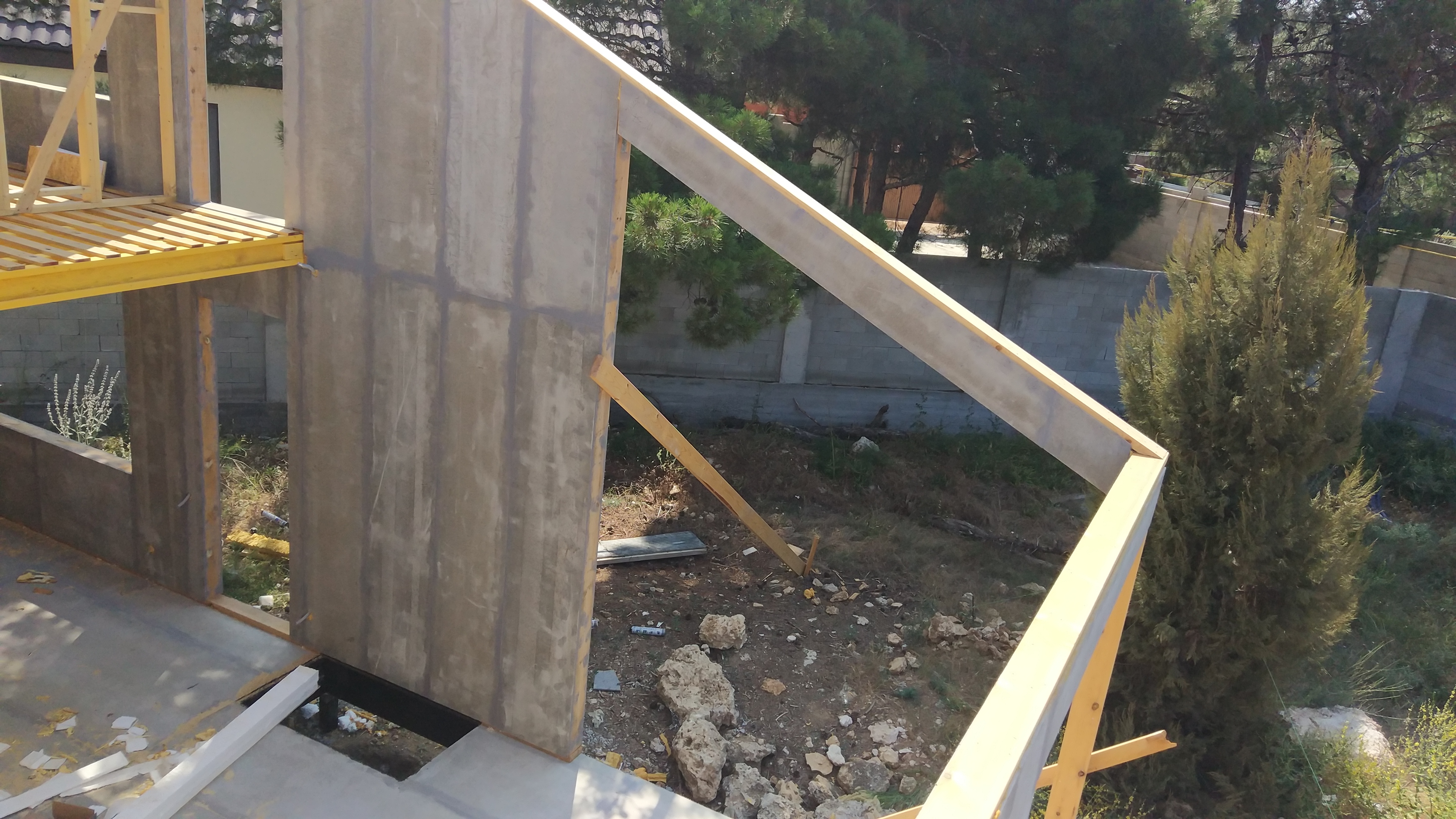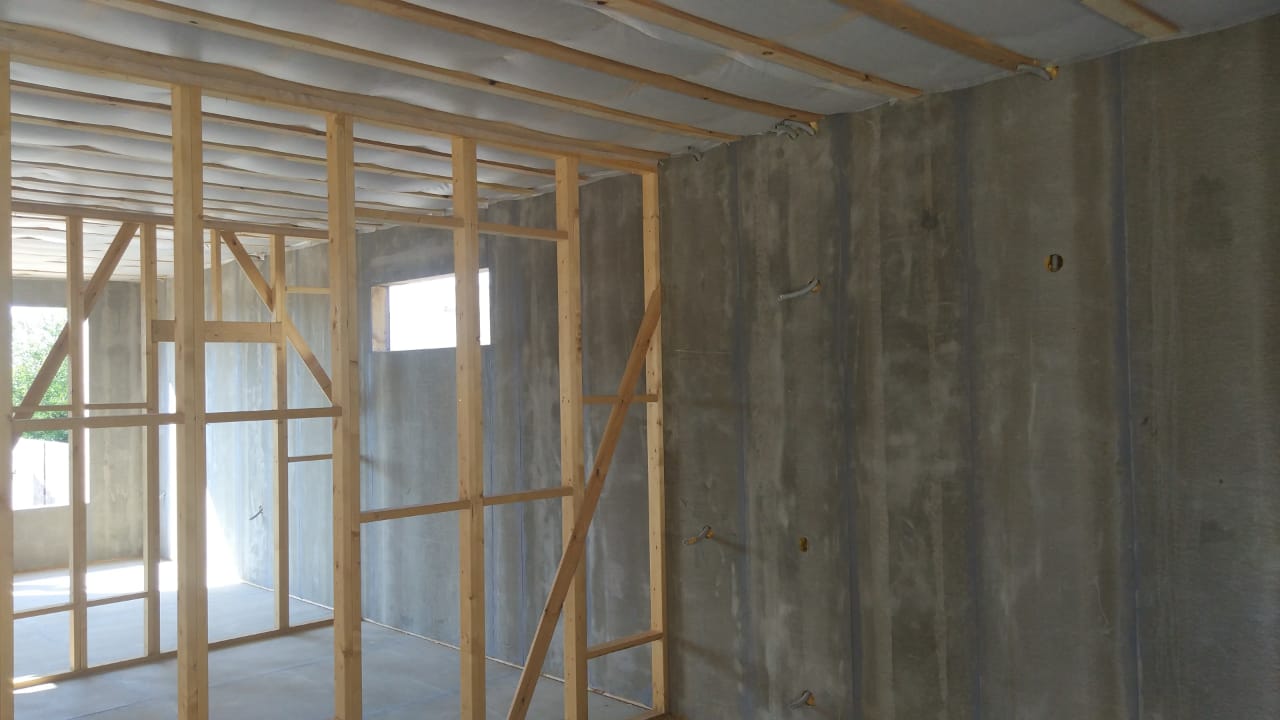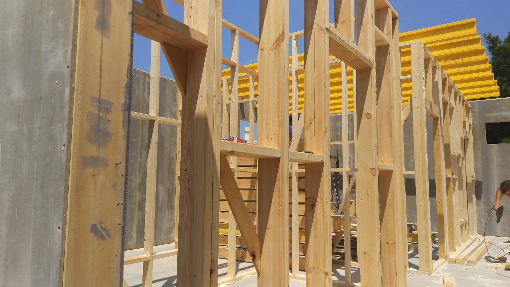 Ростверк изготовлен из калиброванного клееного бруса и защищен снаружи цементно-стружечной плитой