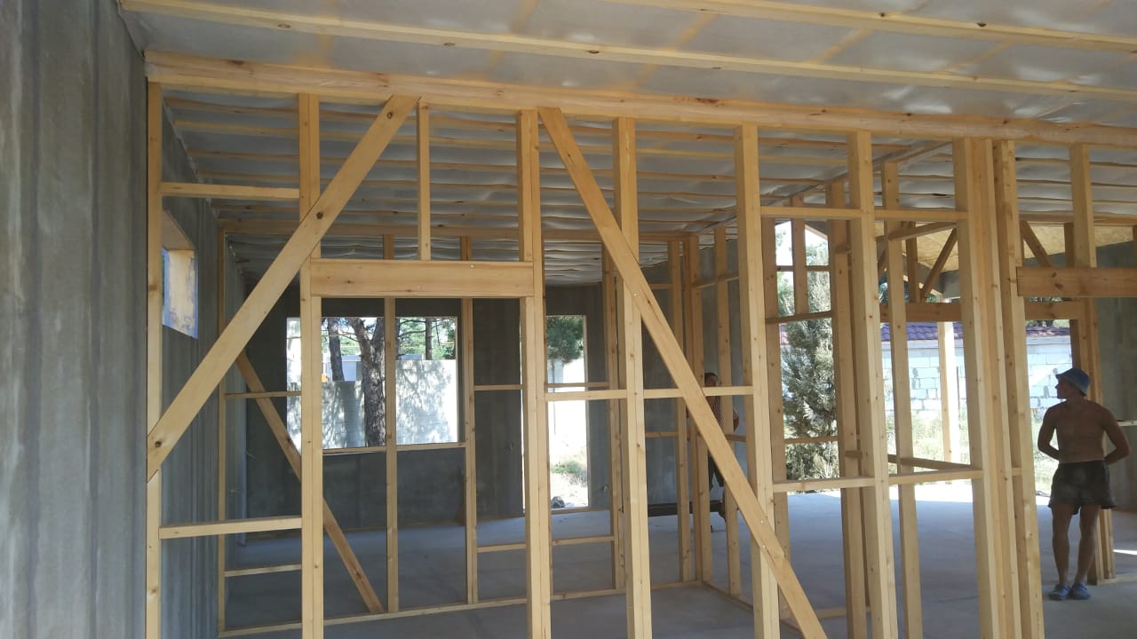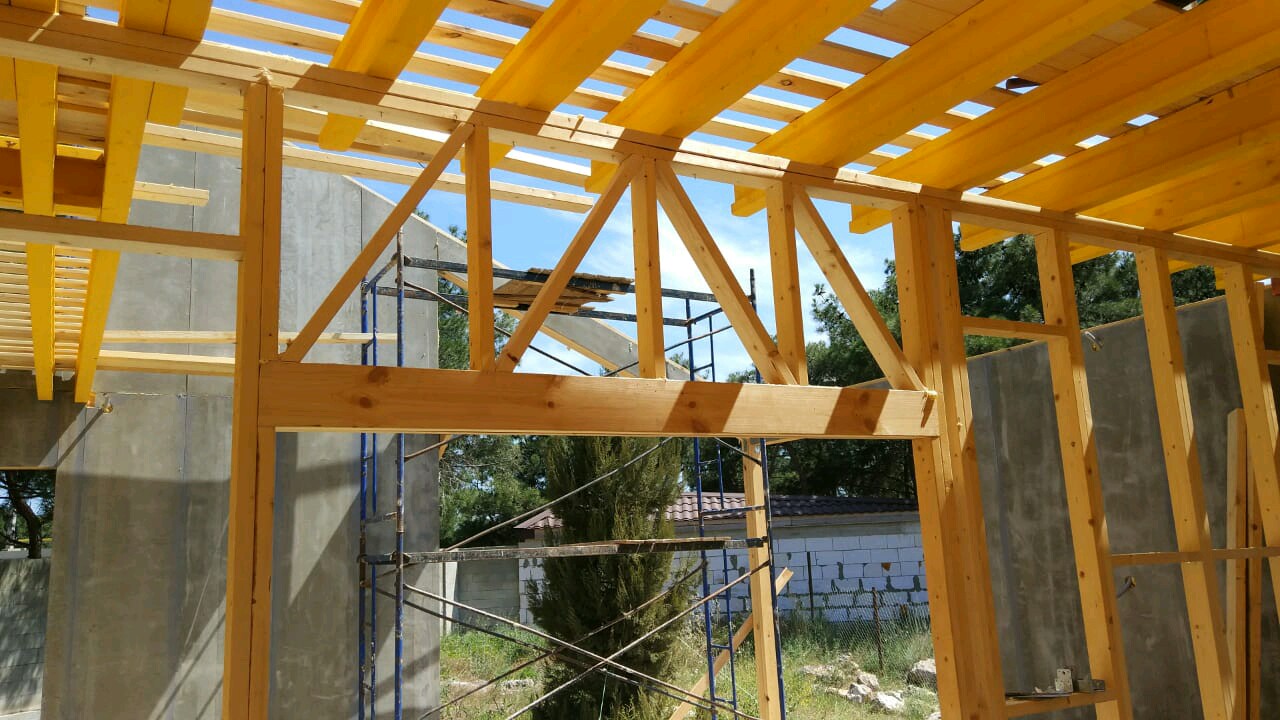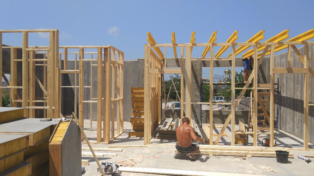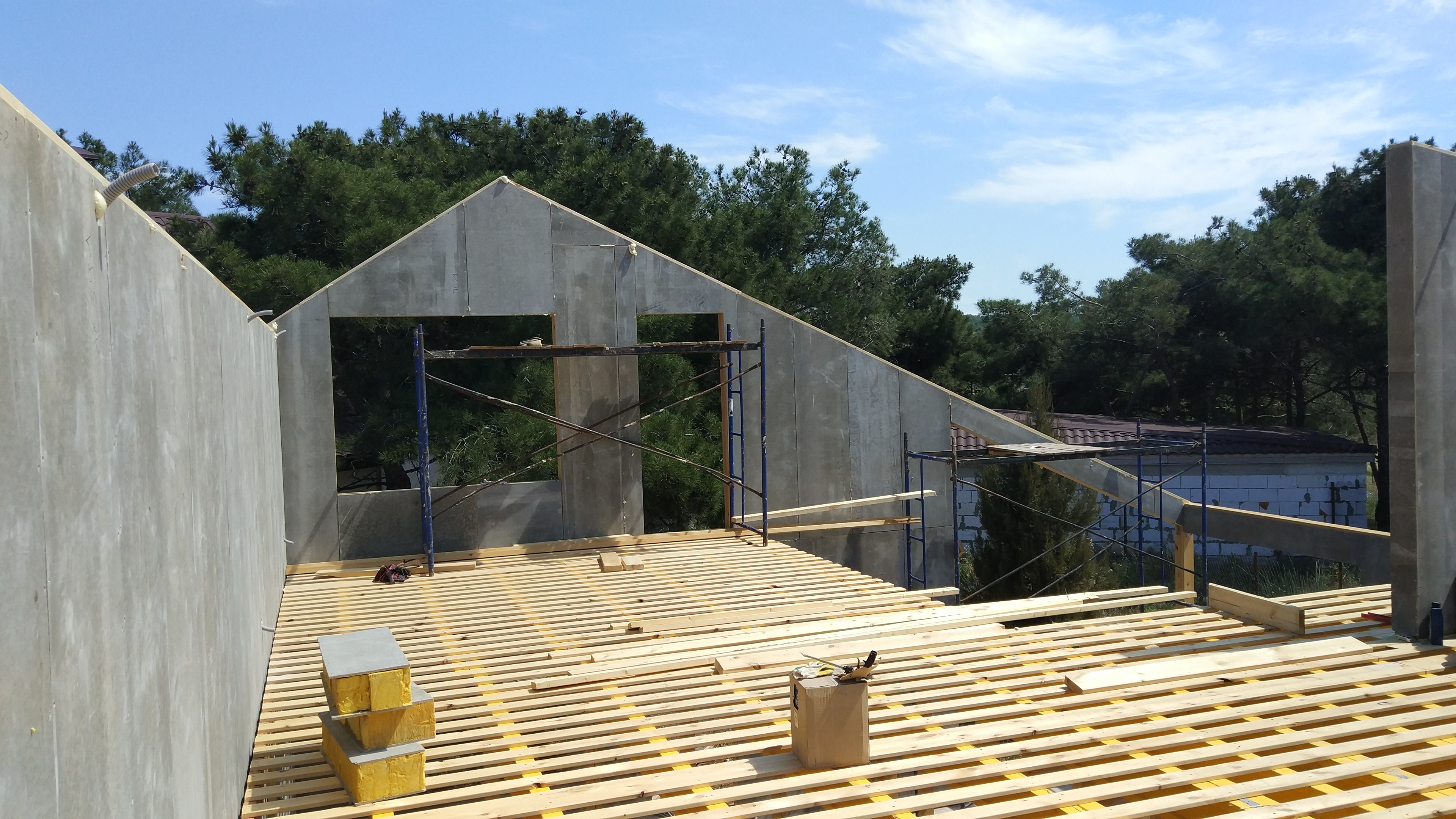 Кровля может быть построена из бруса 150х50мм или SIP панелей. В качестве кровельного материала можно использовать: металлочерепицу, битумную и керамическую черепицу. Также производим кровельные шовные сэндвич-панели.