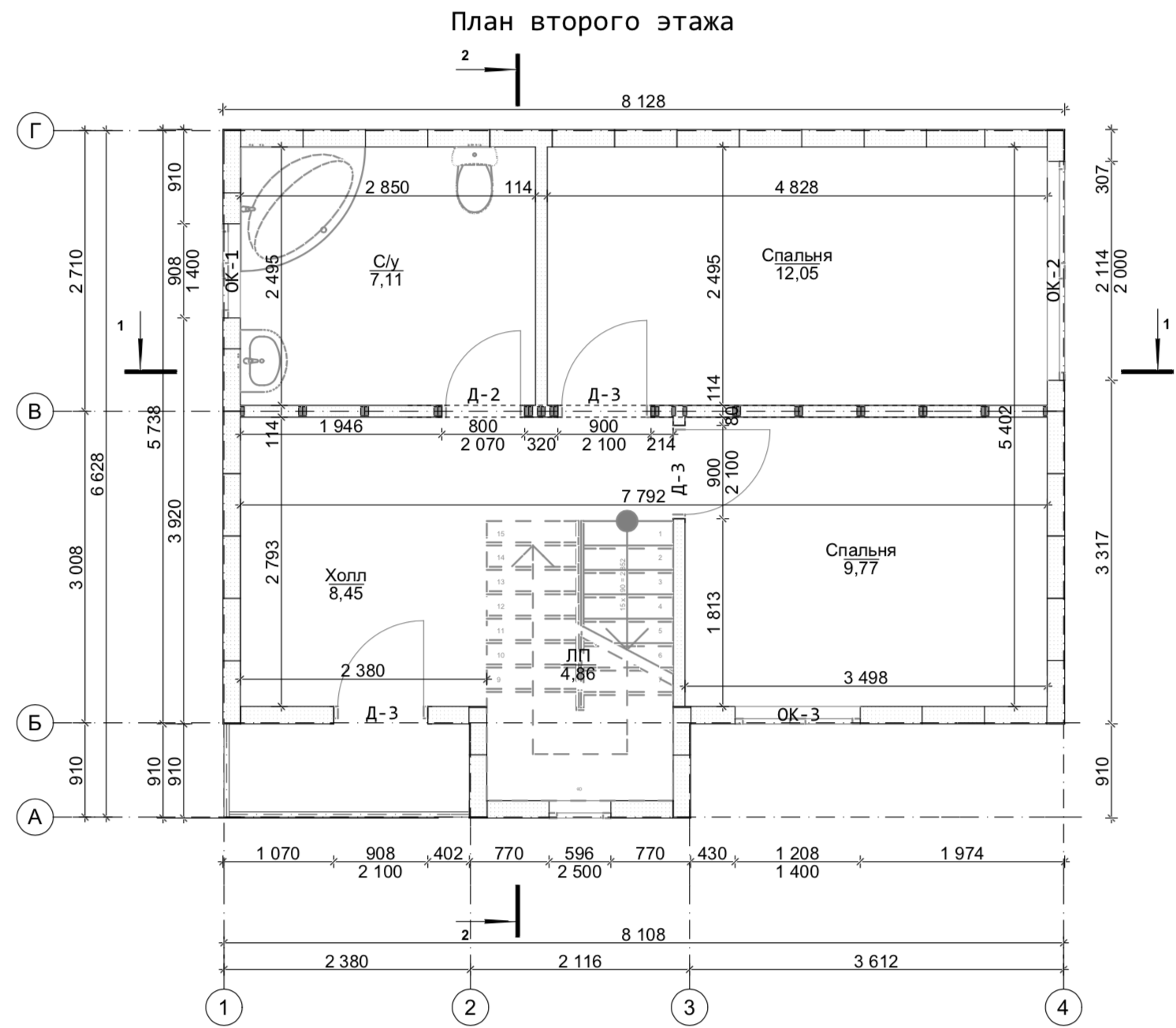 Площадь второго этажа: 53 м2