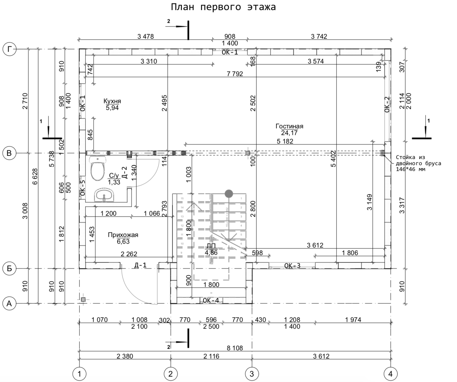 Площадь первого этажа: 53 м2