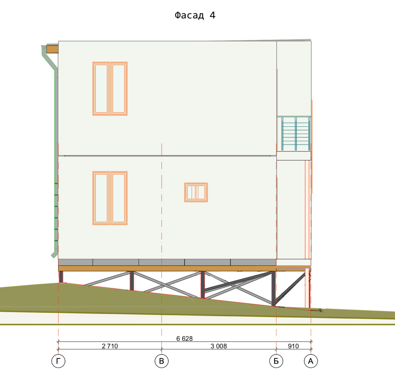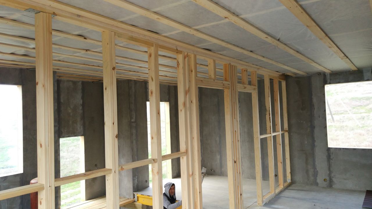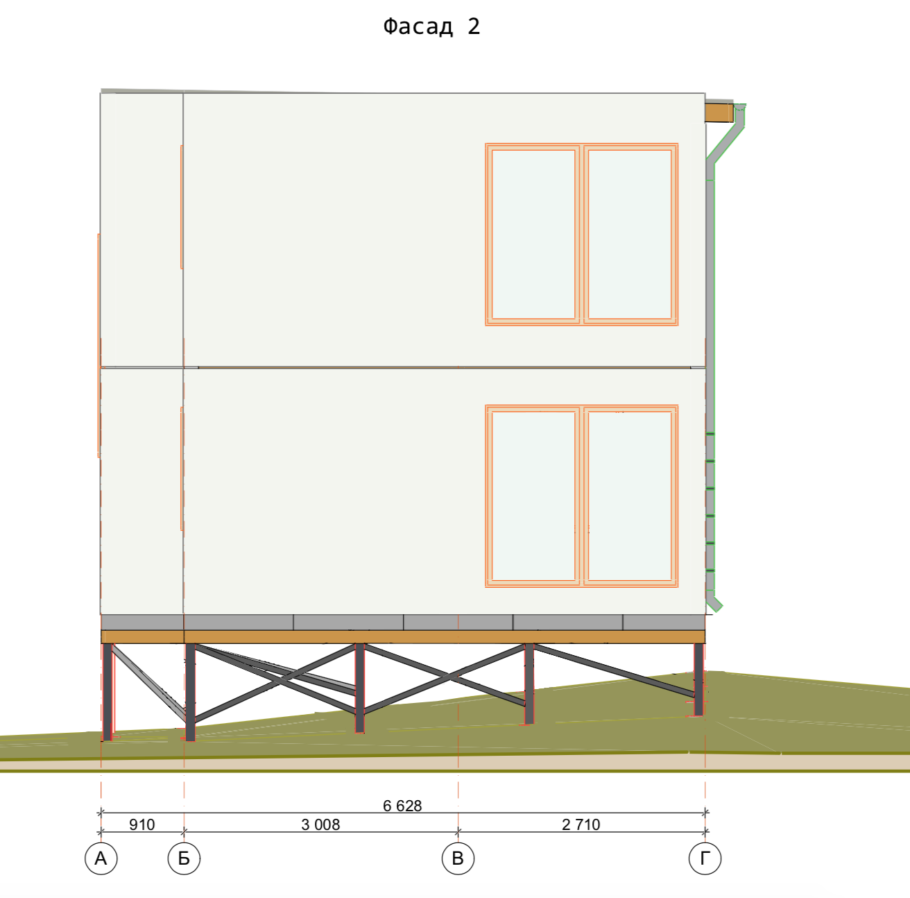 Ростверк изготовлен из калиброванного клееного бруса и защищен снаружи цементно-стружечной плитой