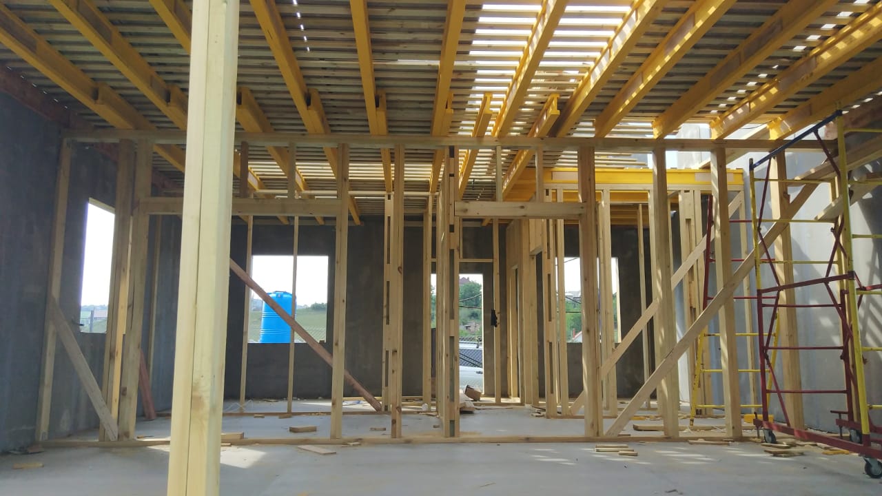 Ростверк изготовлен из калиброванного клееного бруса и защищен снаружи цементно-стружечной плитой