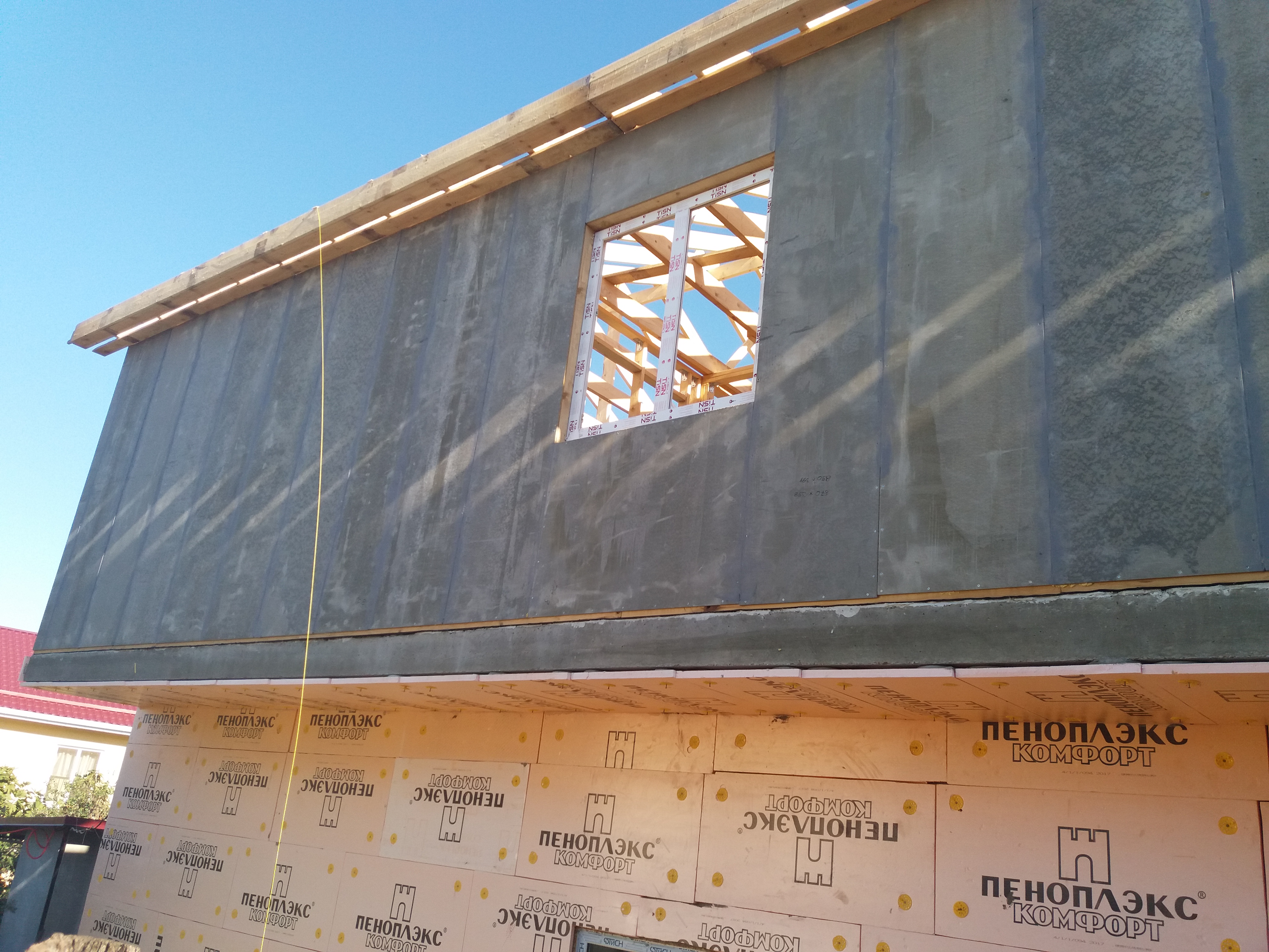 Ростверк изготовлен из калиброванного клееного бруса и защищен снаружи цементно-стружечной плитой