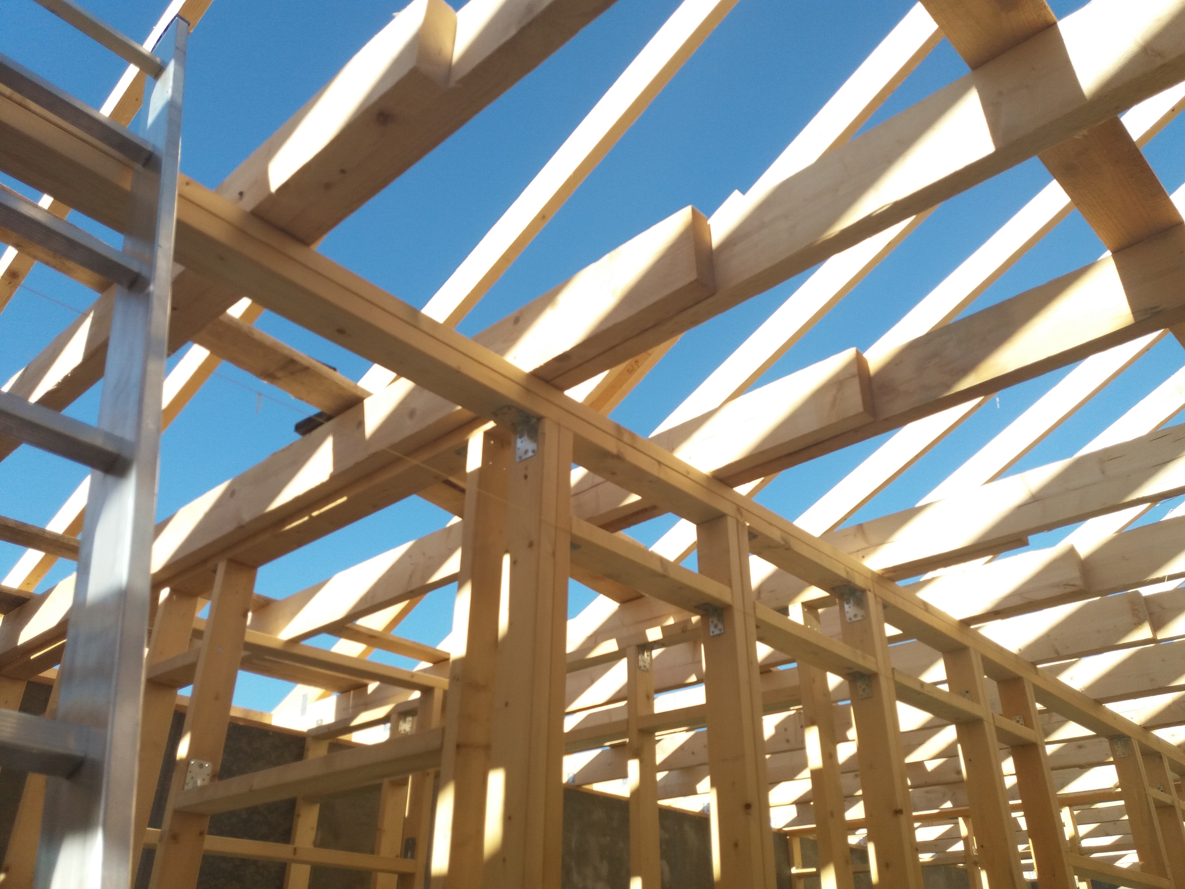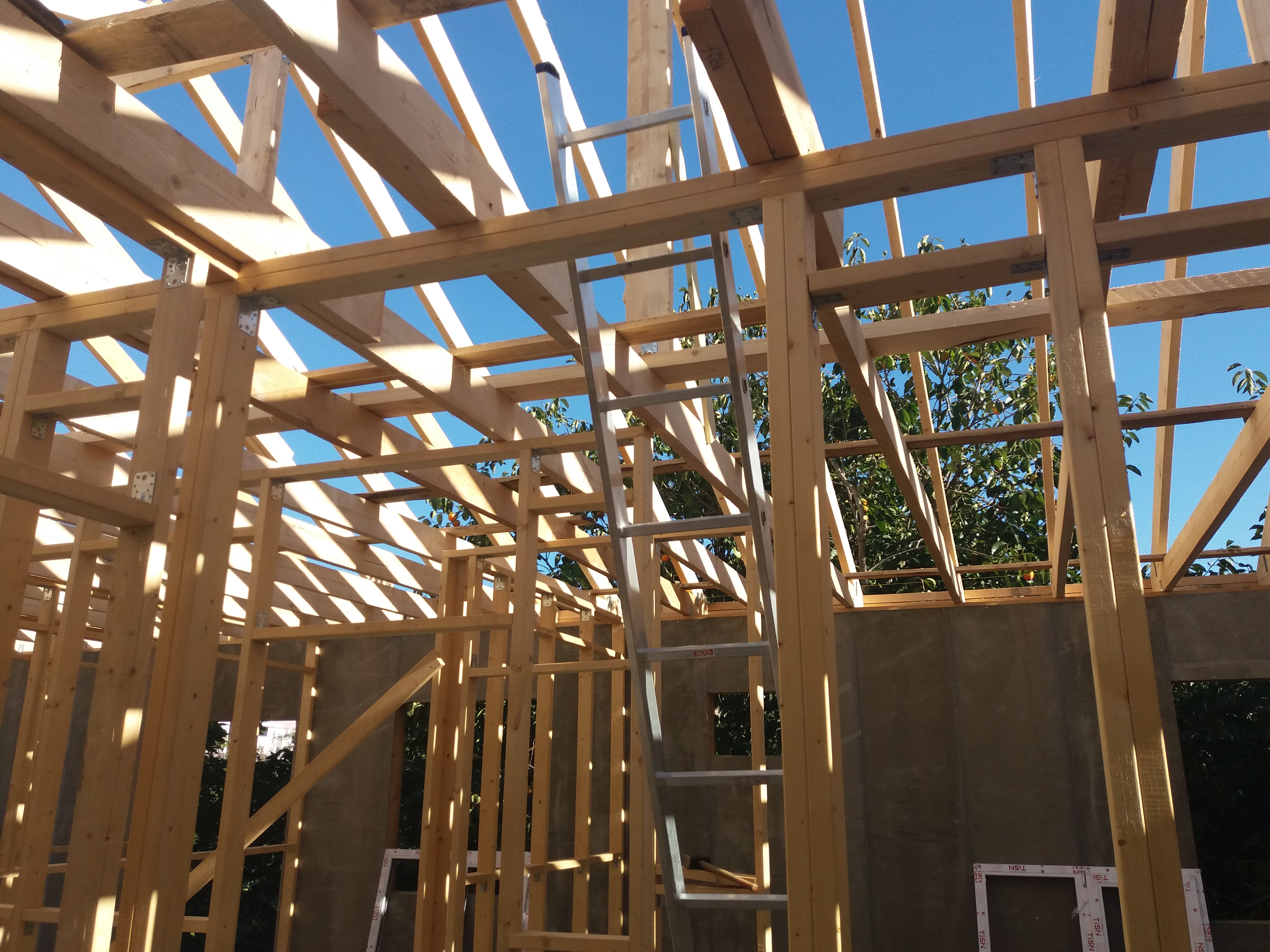 В межэтажных перекрытиях в качестве несущих лаг мы применяем двутавровые балки собственного производства с влагостойкой 24 мм. фанерой в сердечнике.