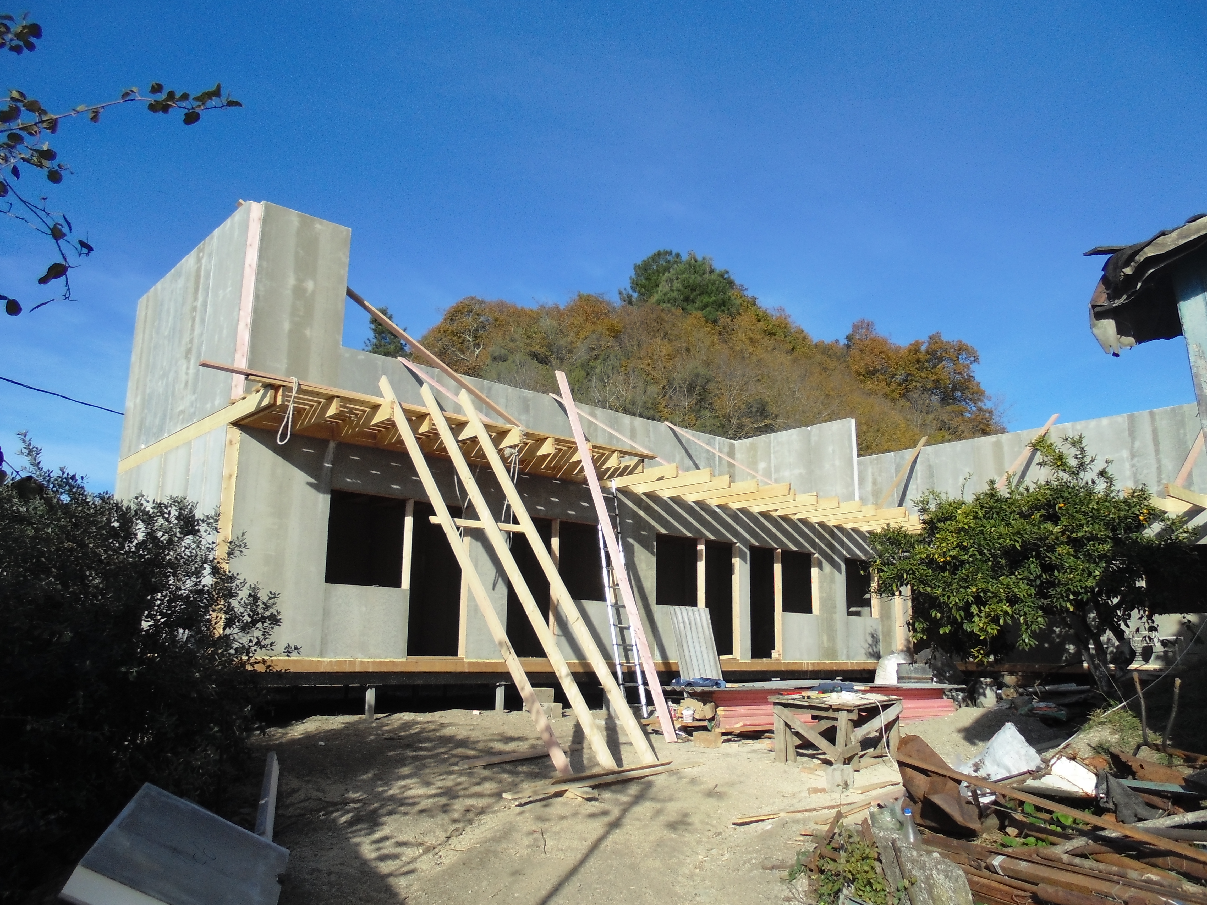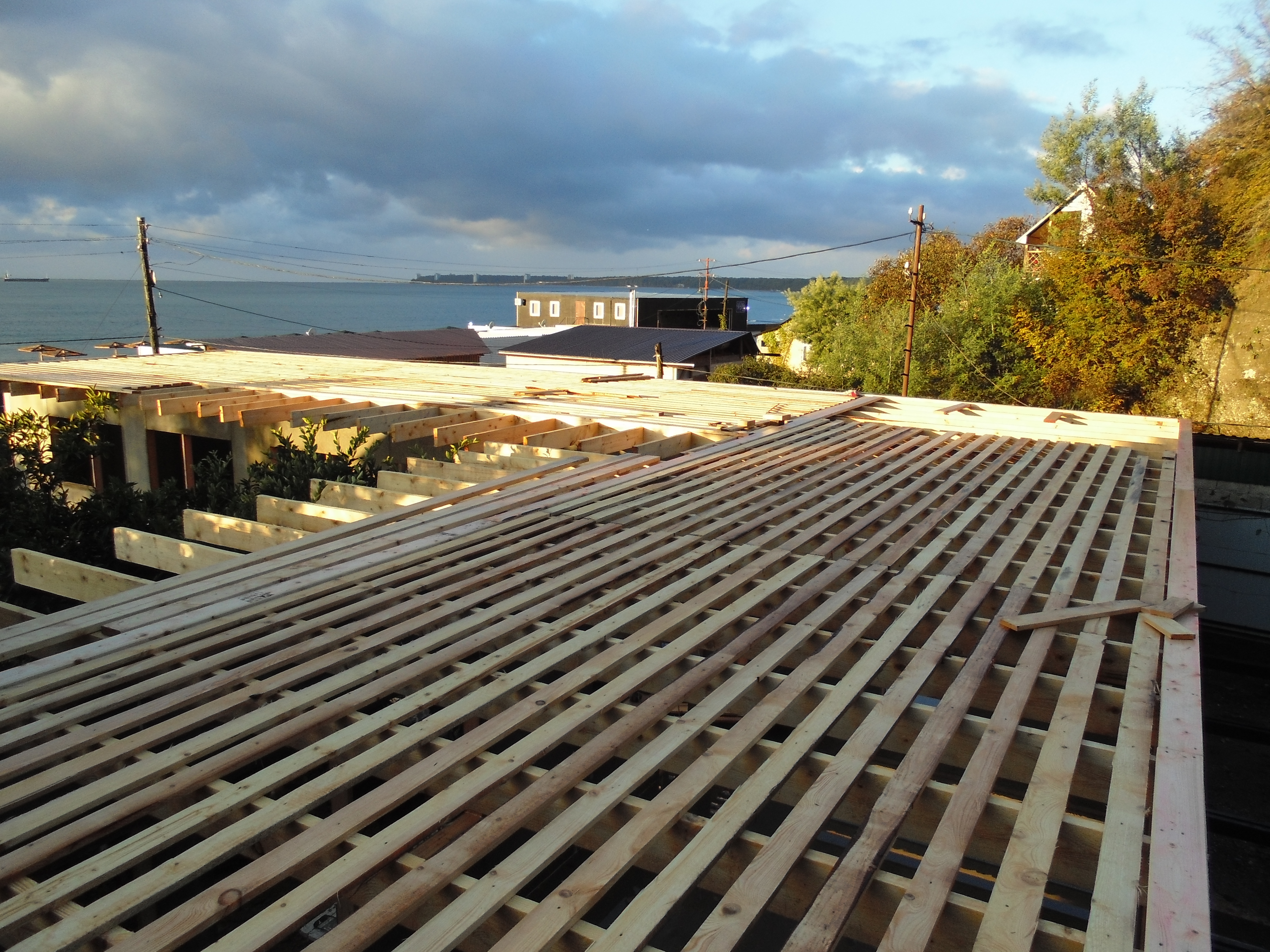 Кровля может быть построена из бруса 150х50мм или SIP панелей. В качестве кровельного материала можно использовать: металлочерепицу, битумную и керамическую черепицу. Также производим кровельные шовные сэндвич-панели.