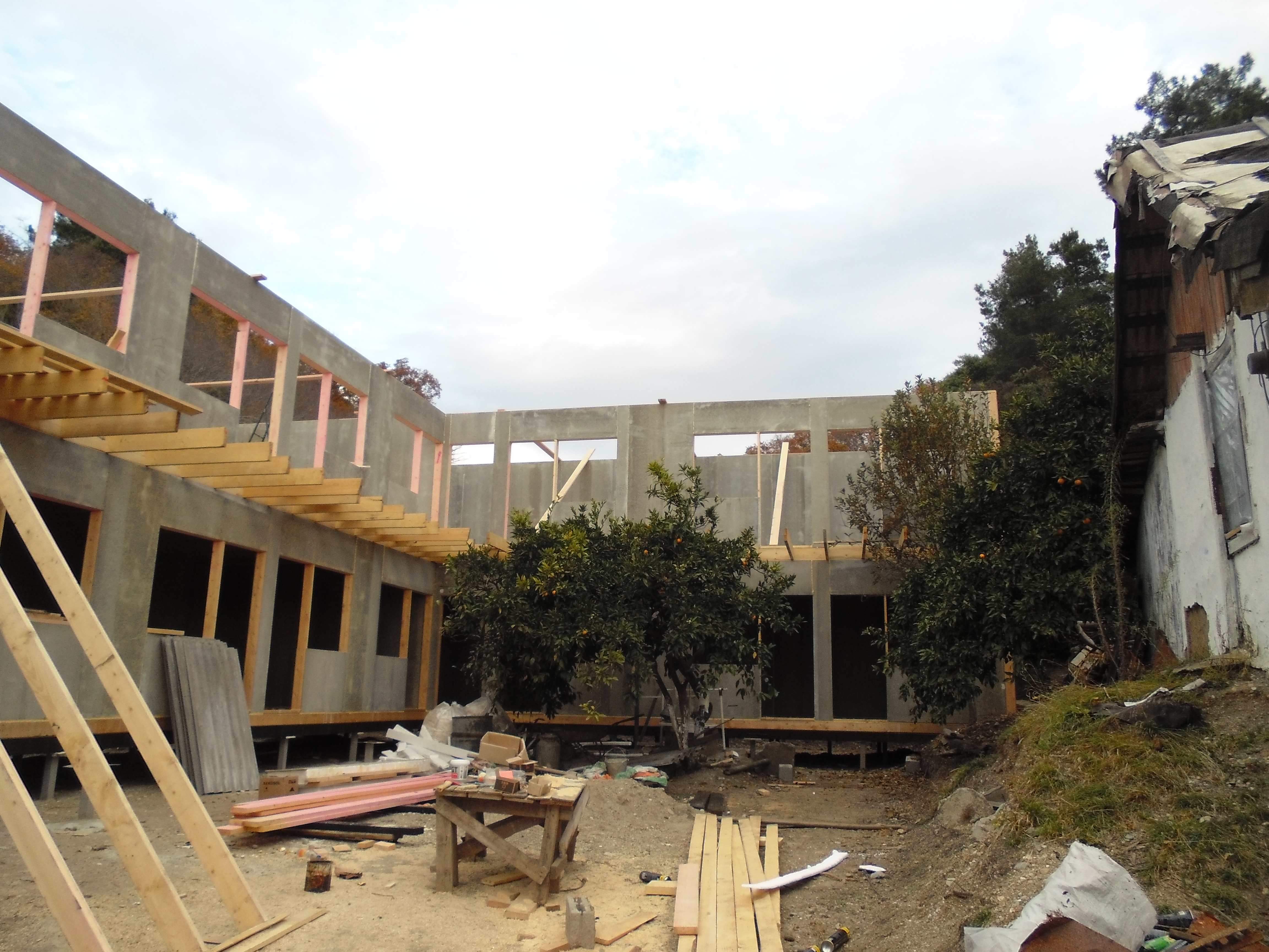 Ростверк изготовлен из калиброванного клееного бруса и защищен снаружи цементно-стружечной плитой
