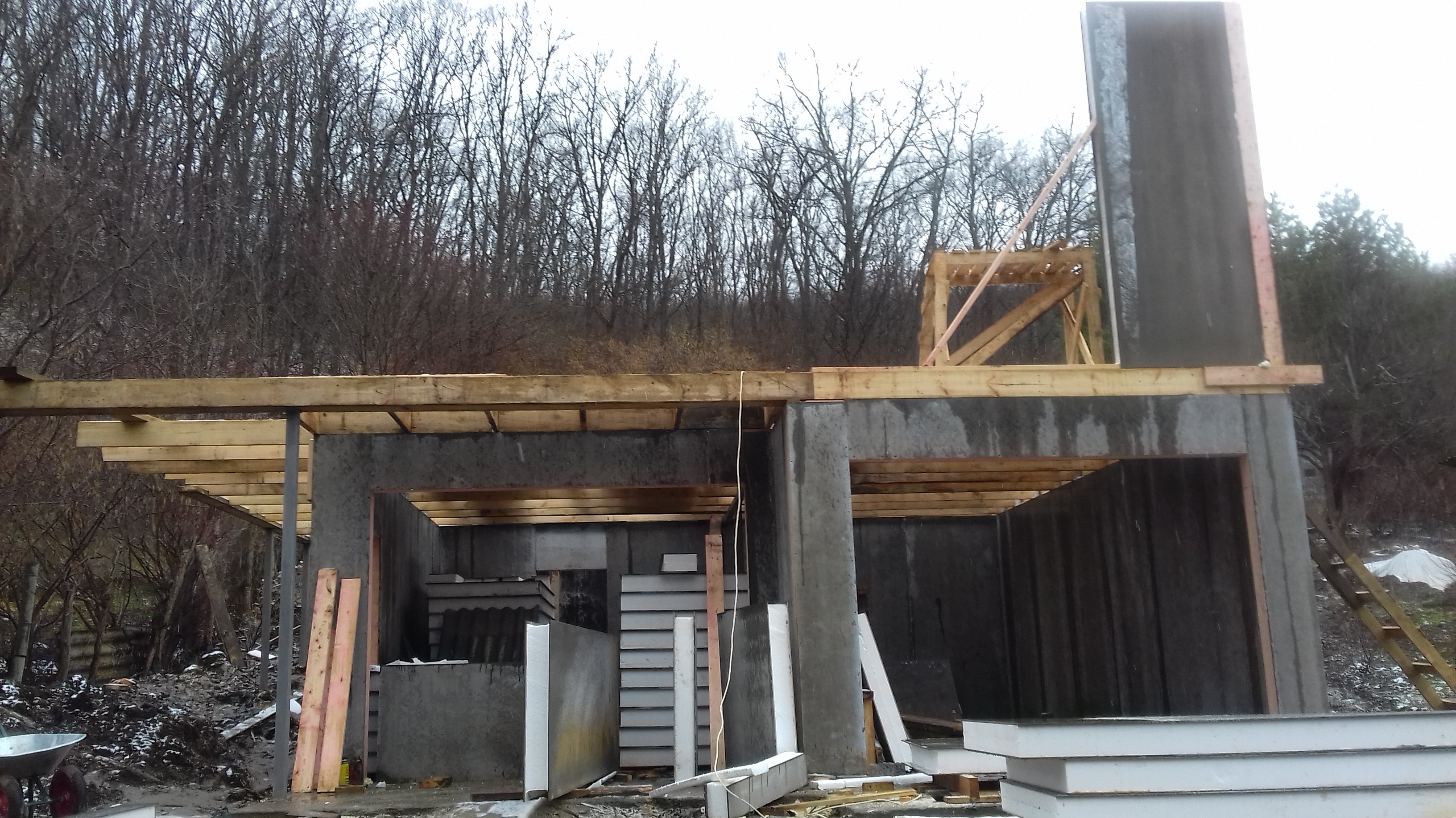 Ростверк изготовлен из калиброванного клееного бруса и защищен снаружи цементно-стружечной плитой