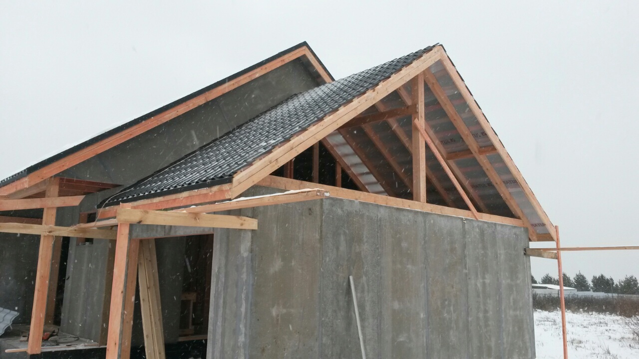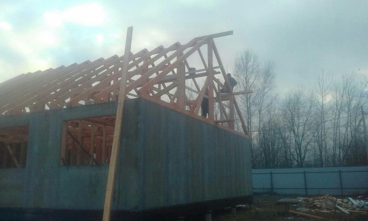 Кровля может быть построена из бруса 150х50мм или SIP панелей. В качестве кровельного материала можно использовать: металлочерепицу, битумную и керамическую черепицу. Также производим кровельные шовные сэндвич-панели.