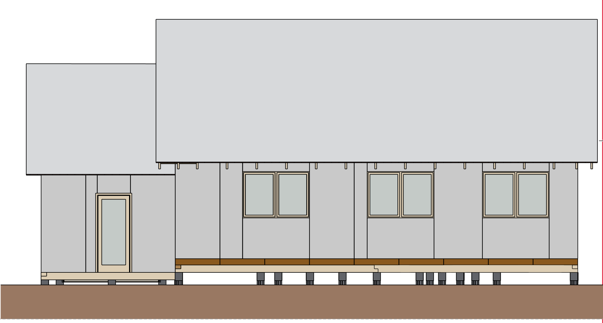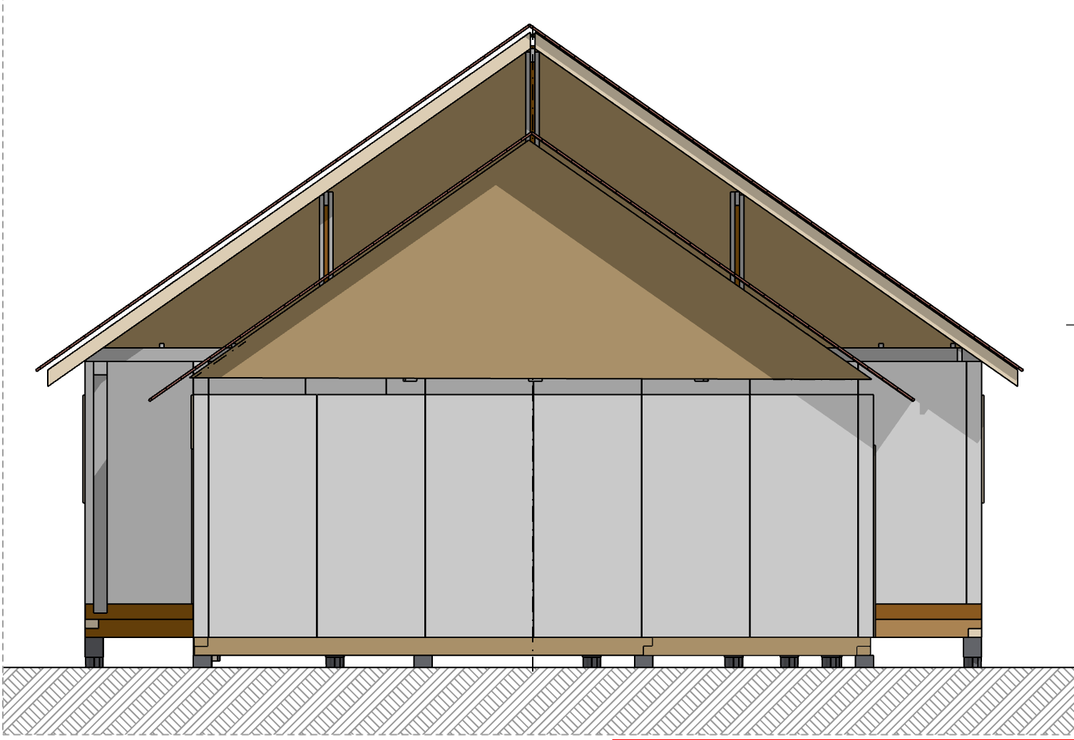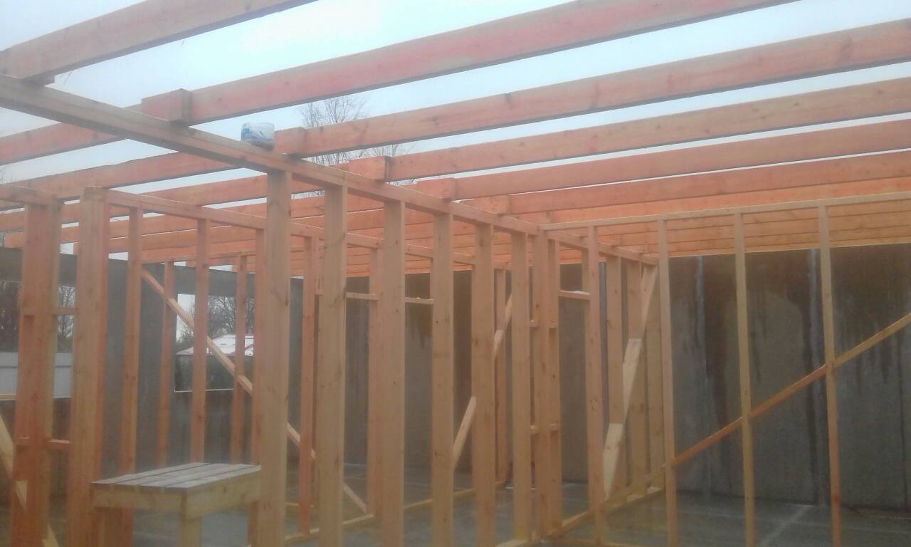 Ростверк изготовлен из калиброванного клееного бруса и защищен снаружи цементно-стружечной плитой