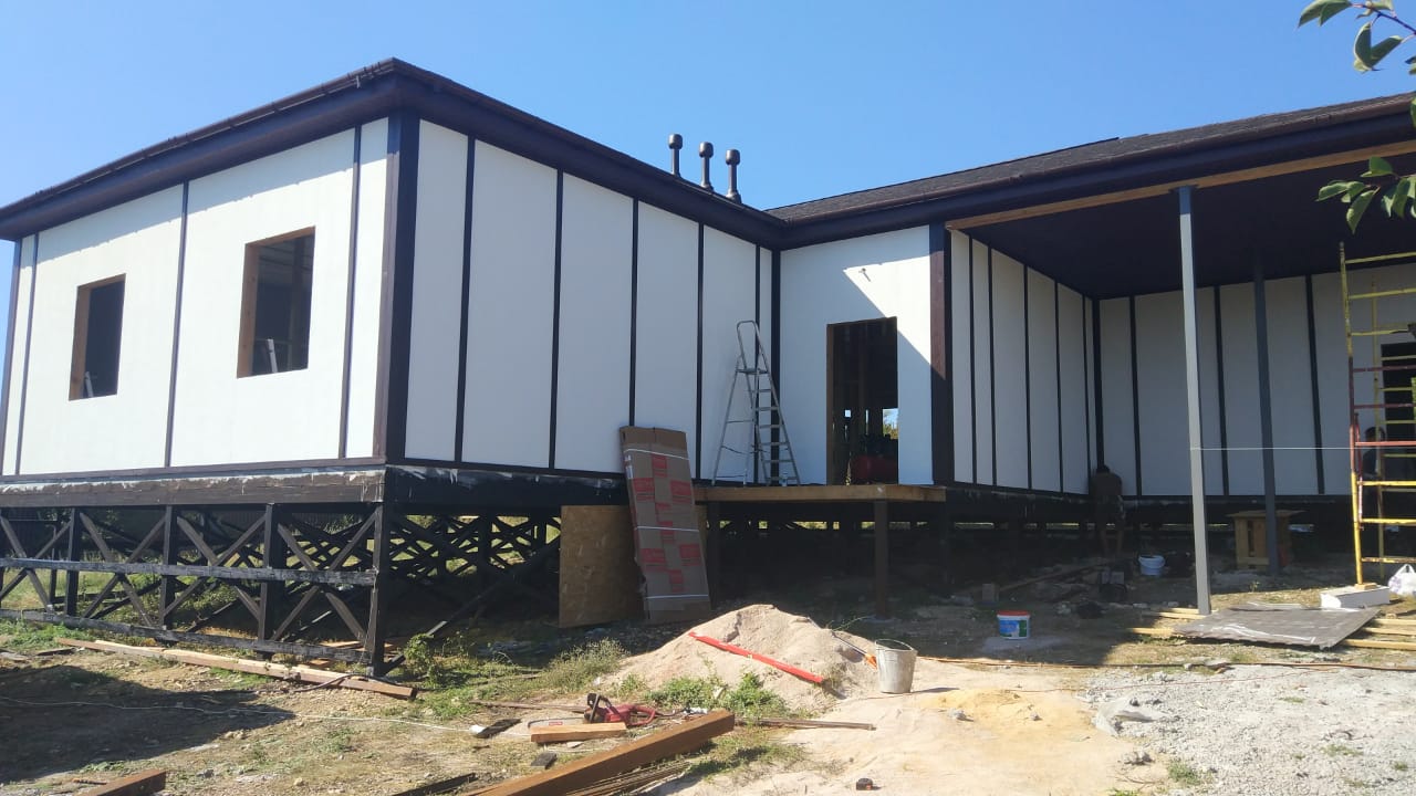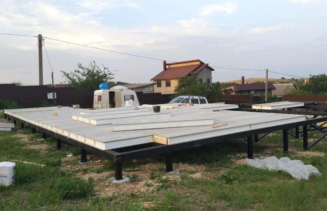 Ростверк изготовлен из калиброванного клееного бруса и защищен снаружи цементно-стружечной плитой