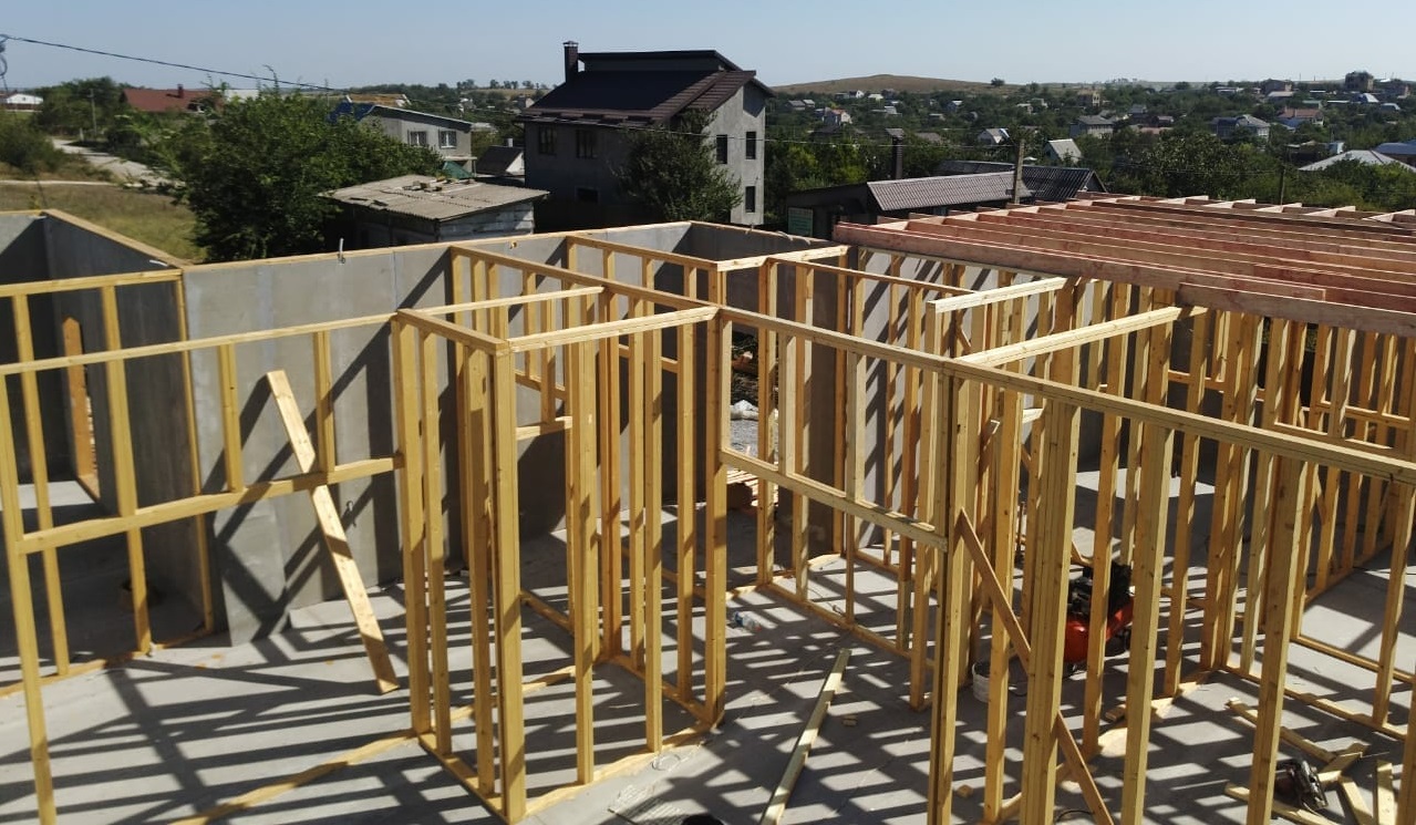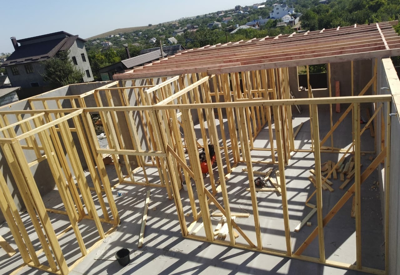 Кровля может быть построена из бруса 150х50мм или SIP панелей. В качестве кровельного материала можно использовать: металлочерепицу, битумную и керамическую черепицу. Также производим кровельные шовные сэндвич-панели.