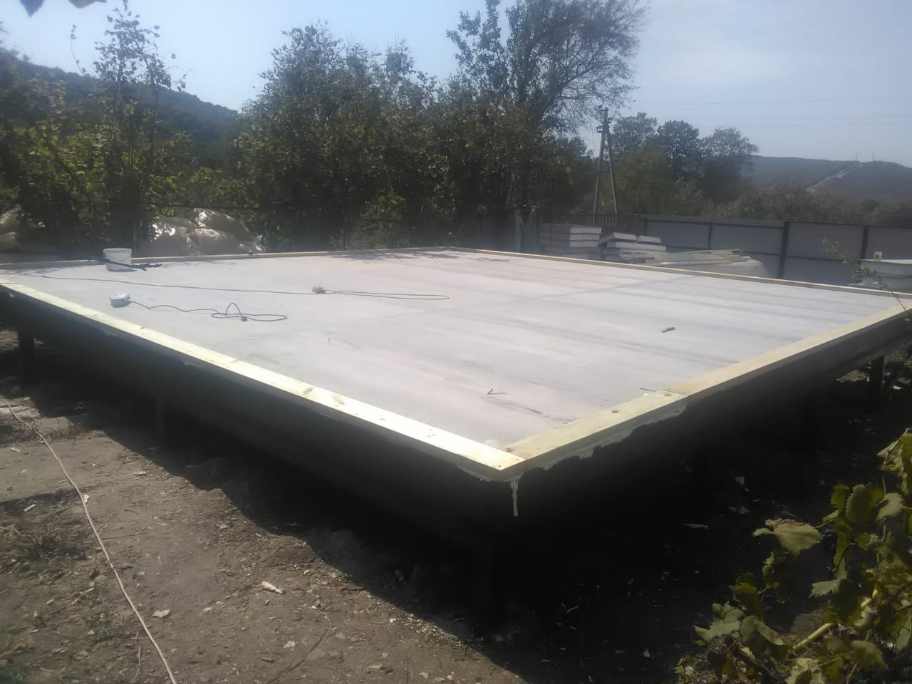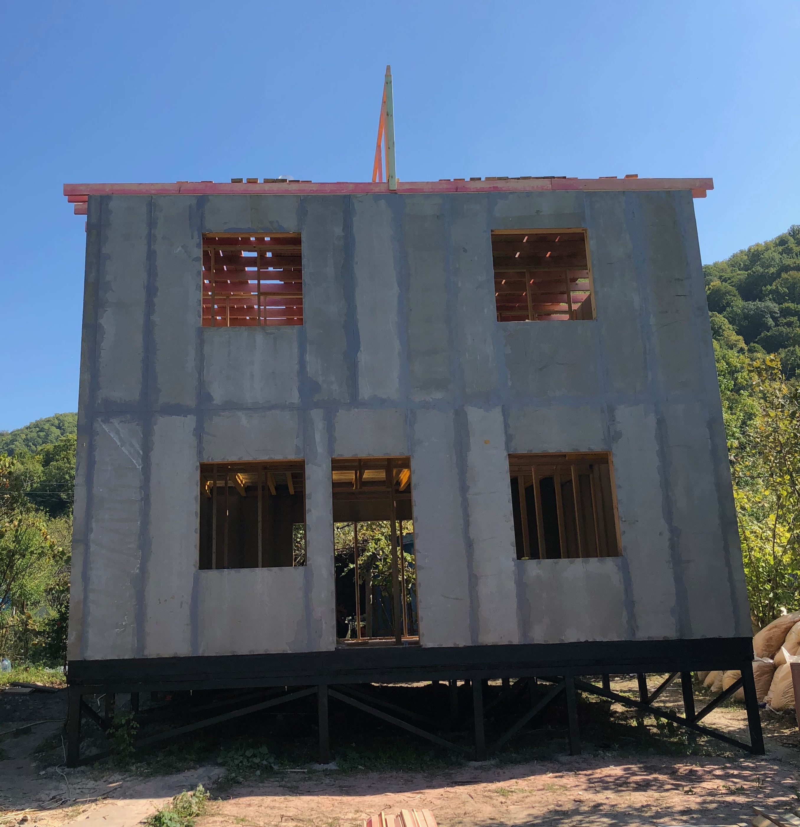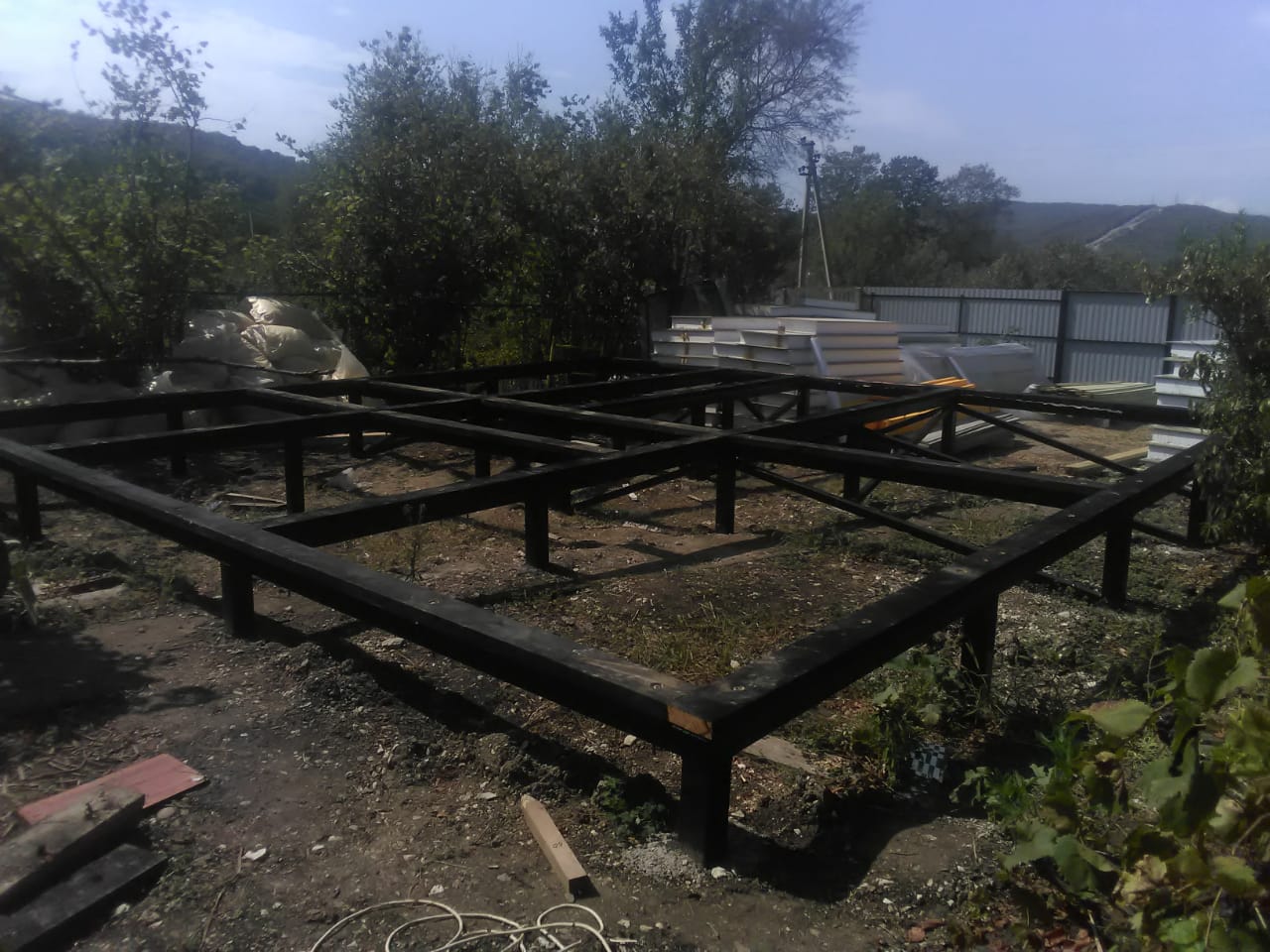 Ростверк изготовлен из калиброванного клееного бруса и защищен снаружи цементно-стружечной плитой
