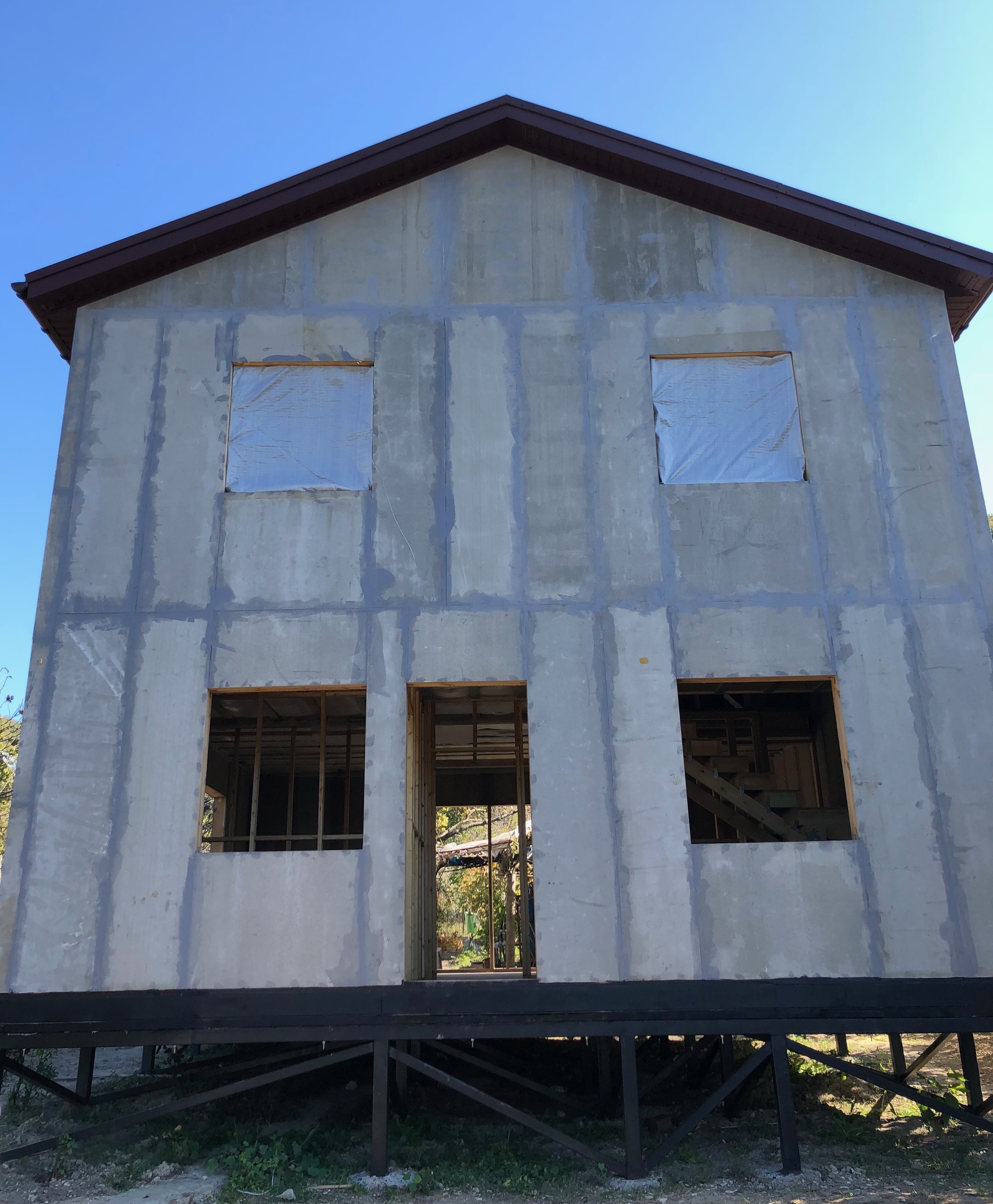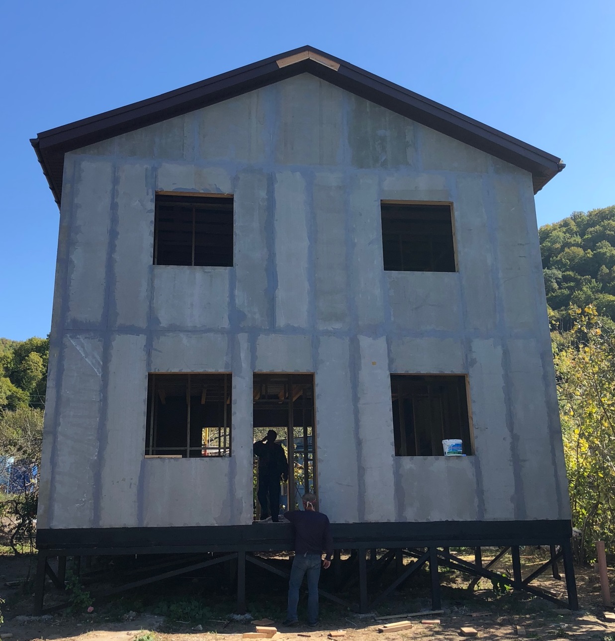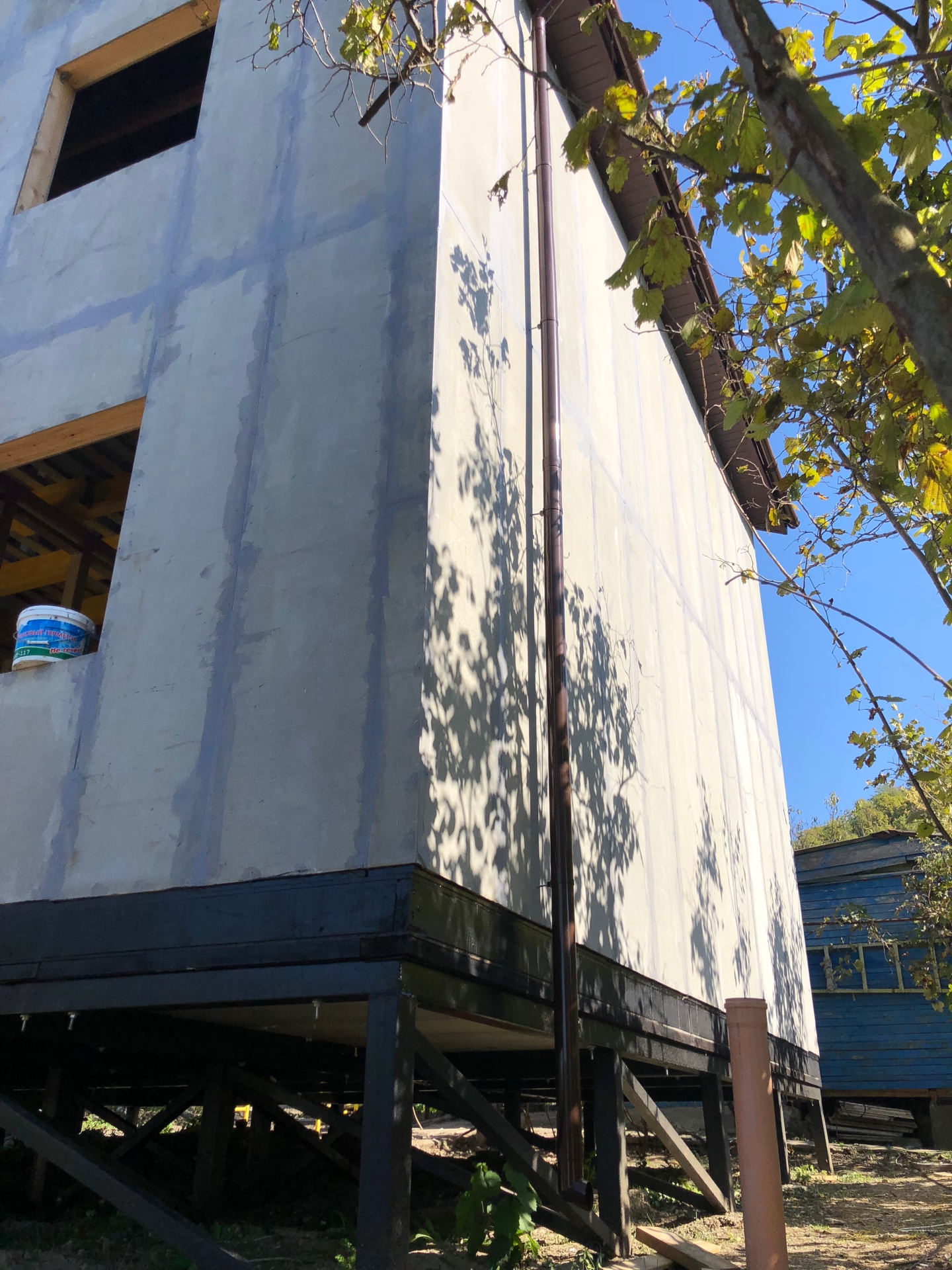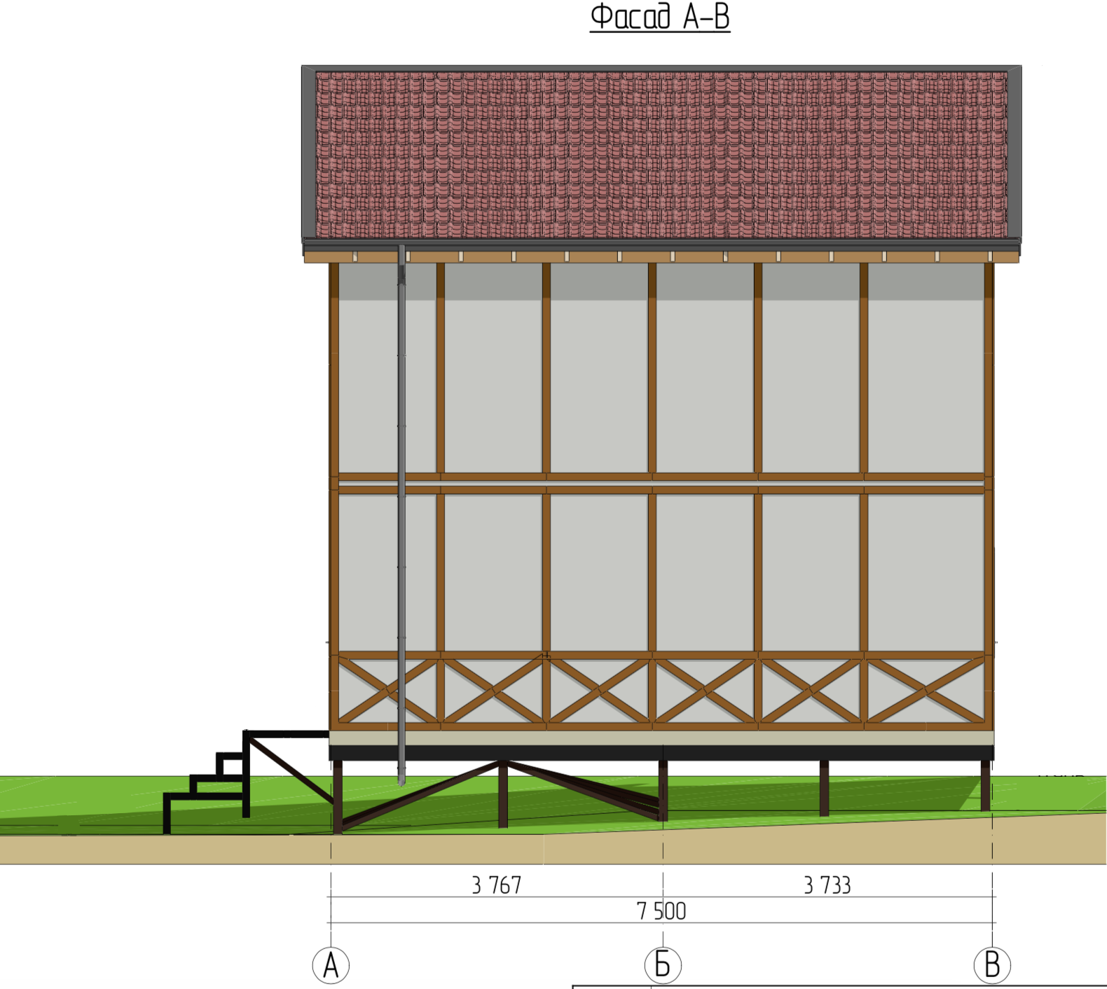 Ростверк изготовлен из калиброванного клееного бруса и защищен снаружи цементно-стружечной плитой