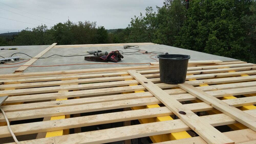 Кровля может быть построена из бруса 150х50мм или SIP панелей. В качестве кровельного материала можно использовать: металлочерепицу, битумную и керамическую черепицу. Также производим кровельные шовные сэндвич-панели.