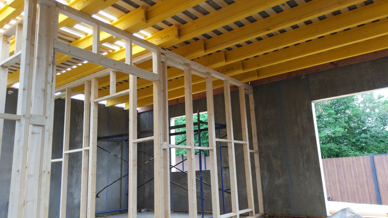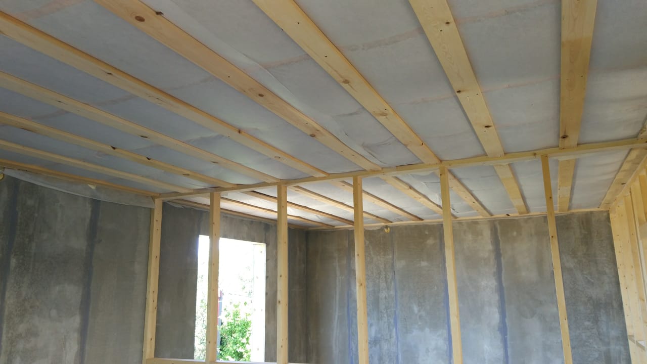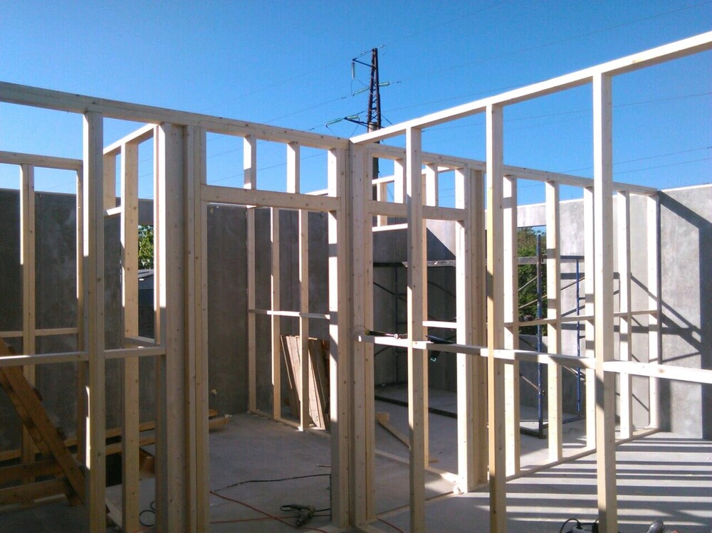 Ростверк изготовлен из калиброванного клееного бруса и защищен снаружи цементно-стружечной плитой