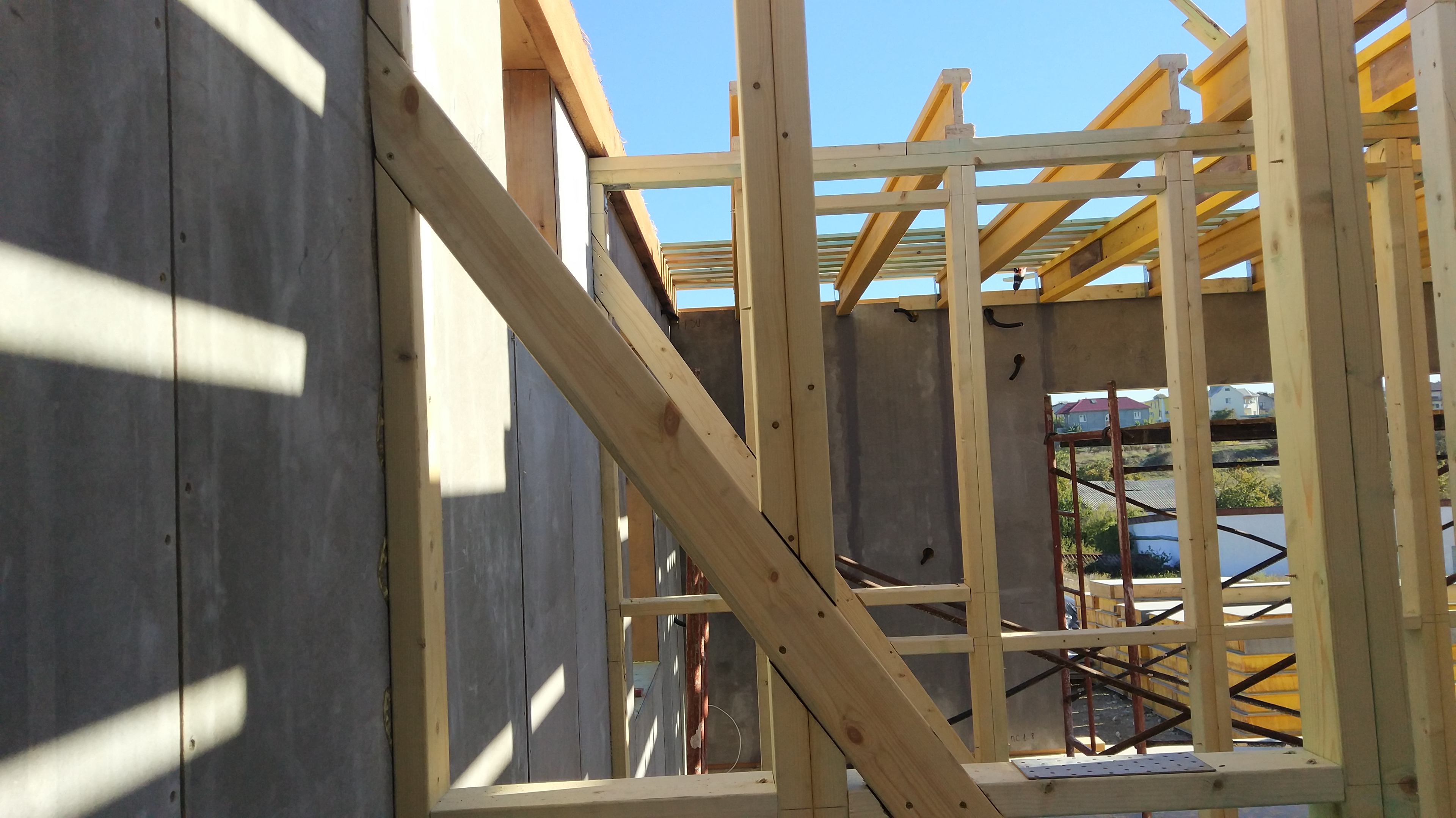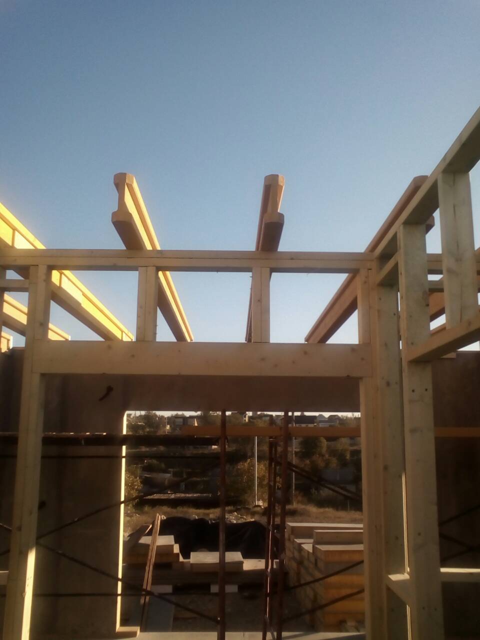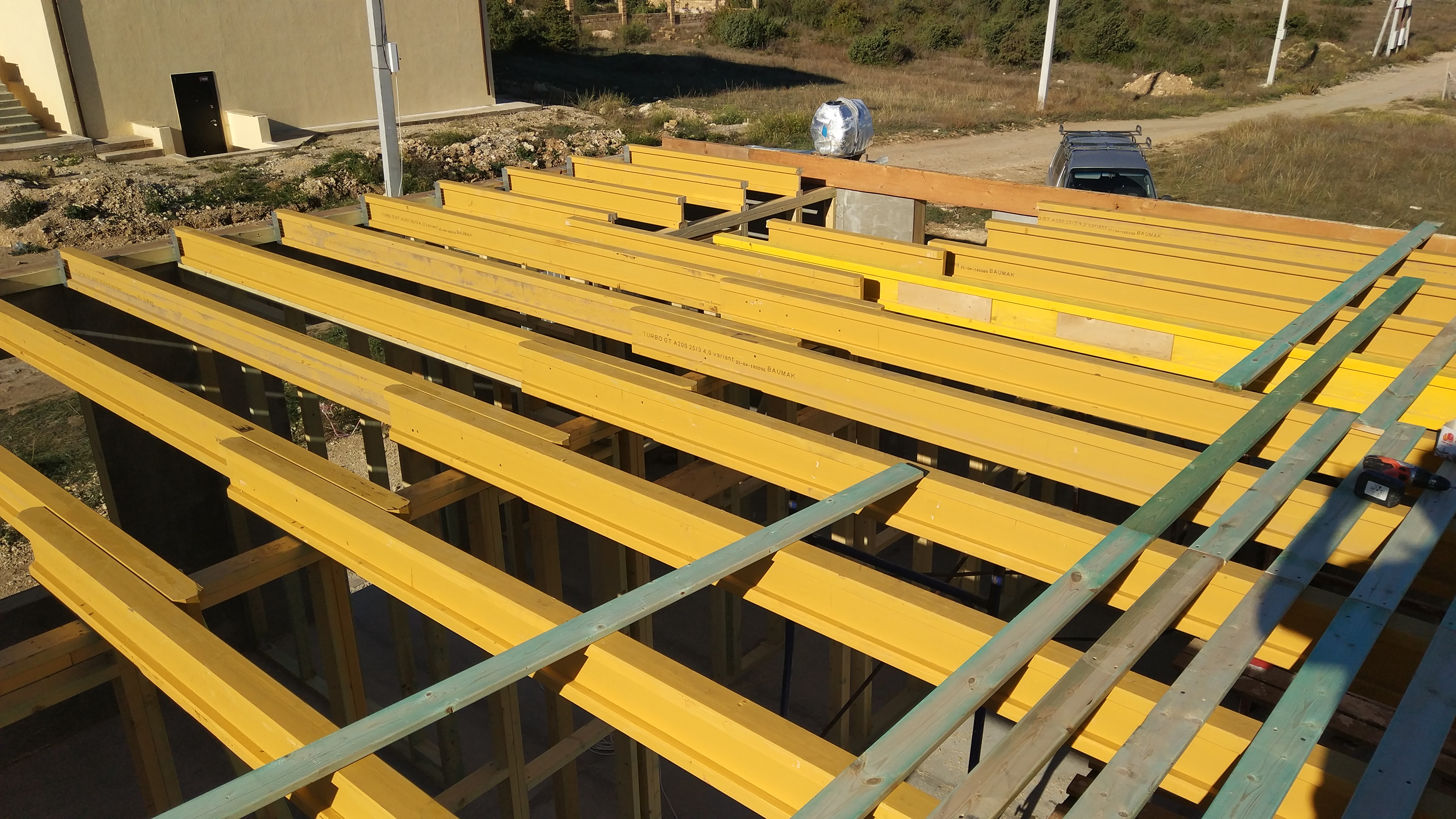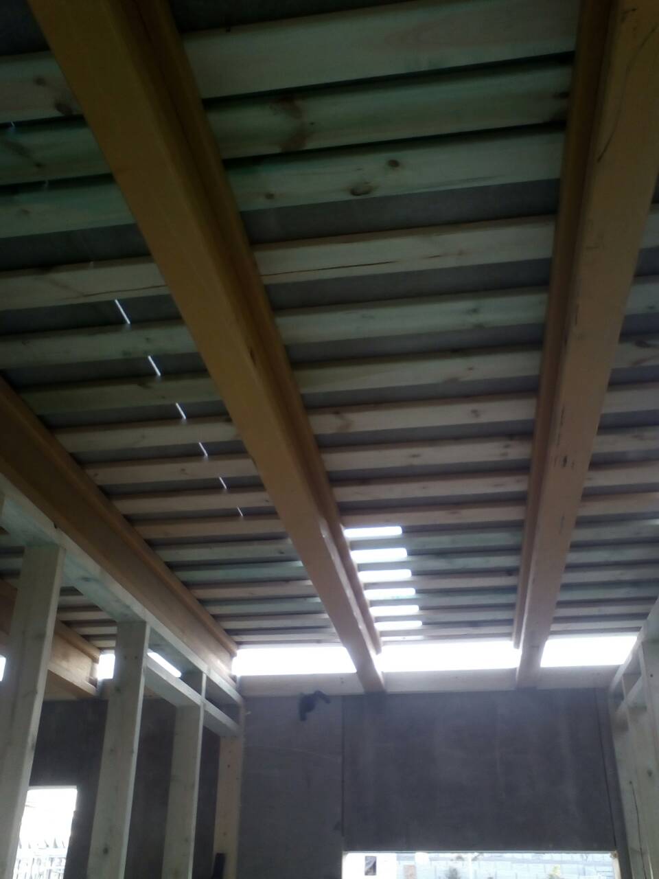 В межэтажных перекрытиях в качестве несущих лаг мы применяем двутавровые балки собственного производства с влагостойкой 24 мм. фанерой в сердечнике.