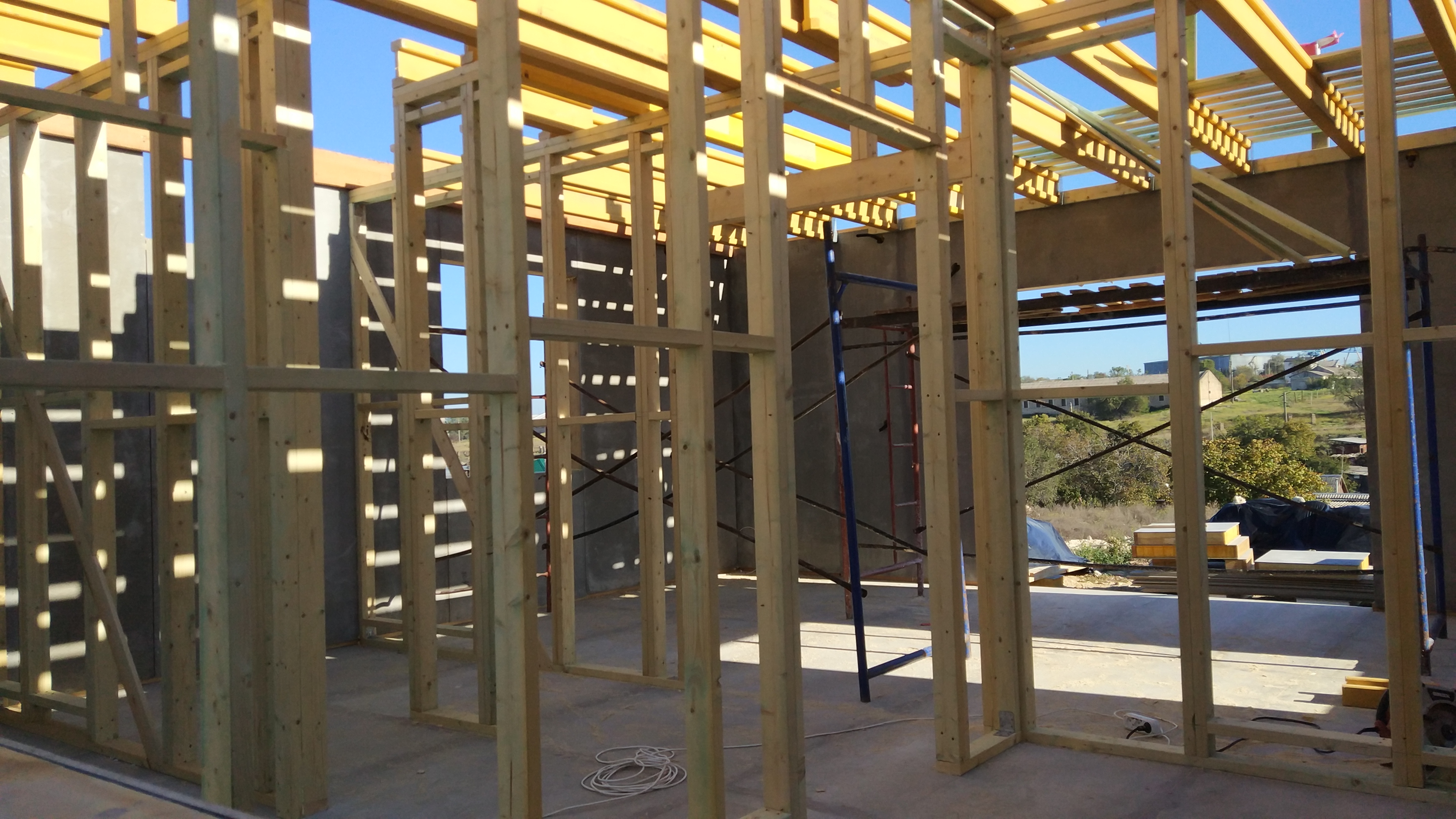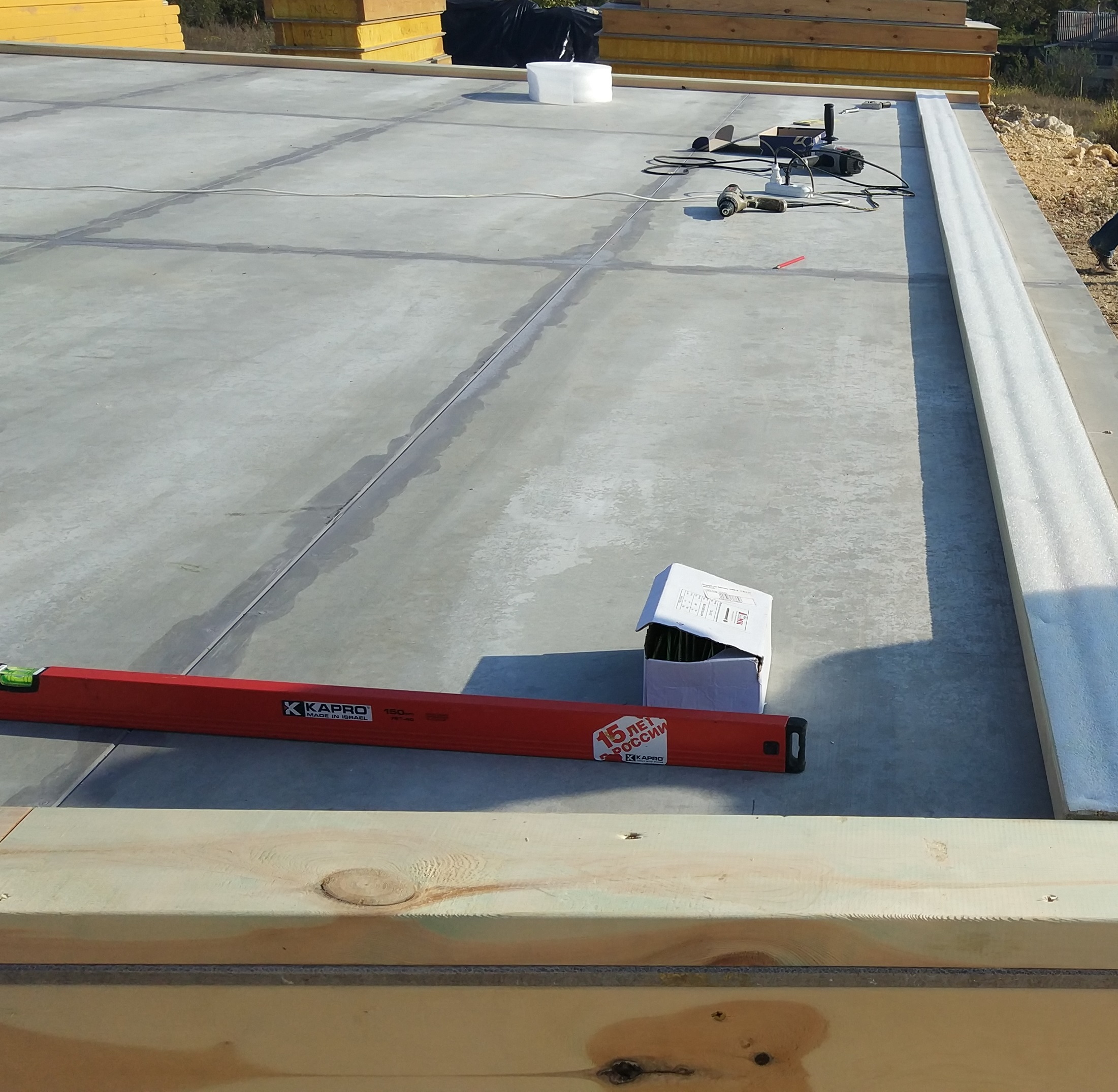 Ростверк изготовлен из калиброванного клееного бруса и защищен снаружи цементно-стружечной плитой