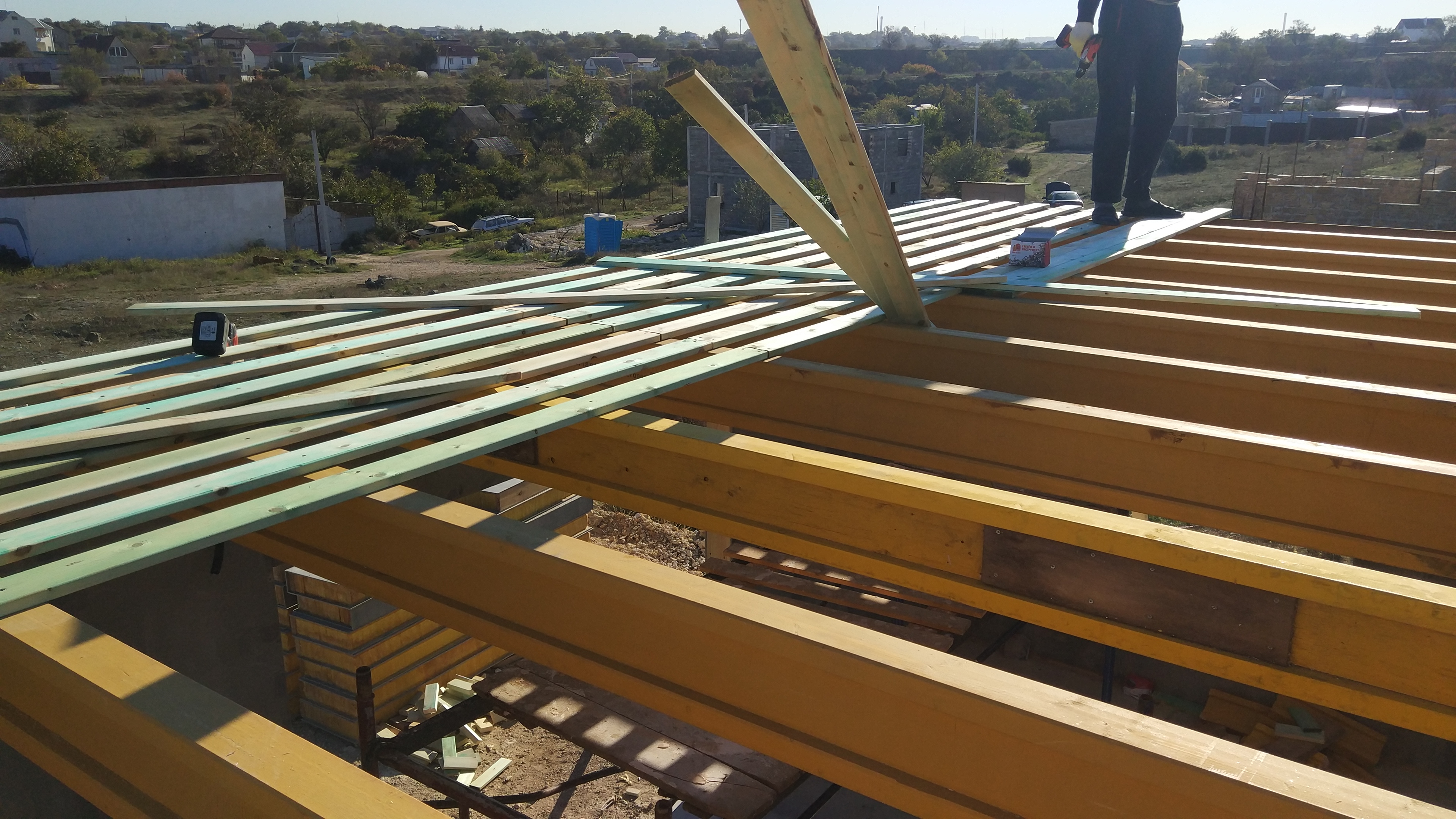 Кровля может быть построена из бруса 150х50мм или SIP панелей. В качестве кровельного материала можно использовать: металлочерепицу, битумную и керамическую черепицу. Также производим кровельные шовные сэндвич-панели.