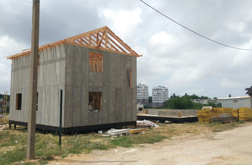 Ростверк изготовлен из калиброванного клееного бруса и защищен снаружи цементно-стружечной плитой