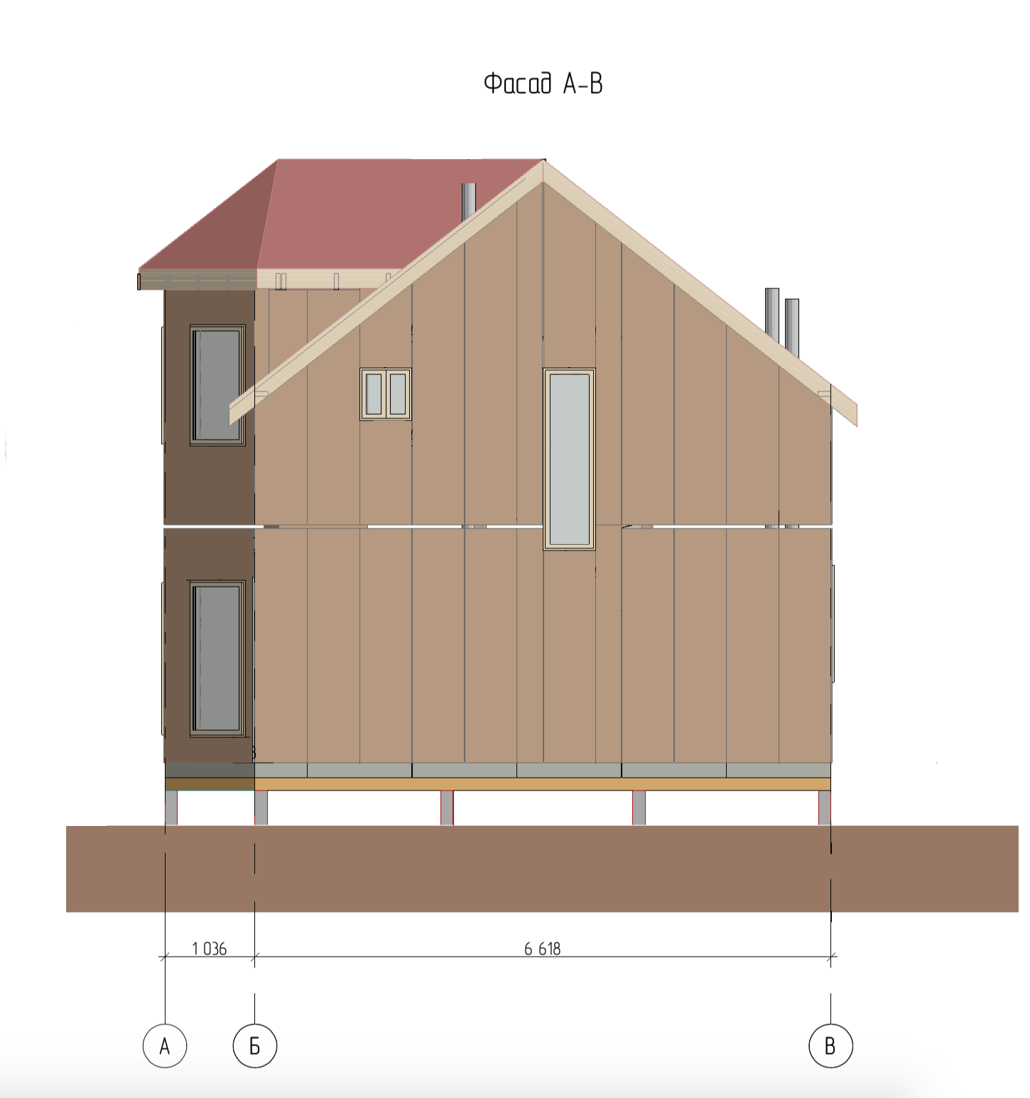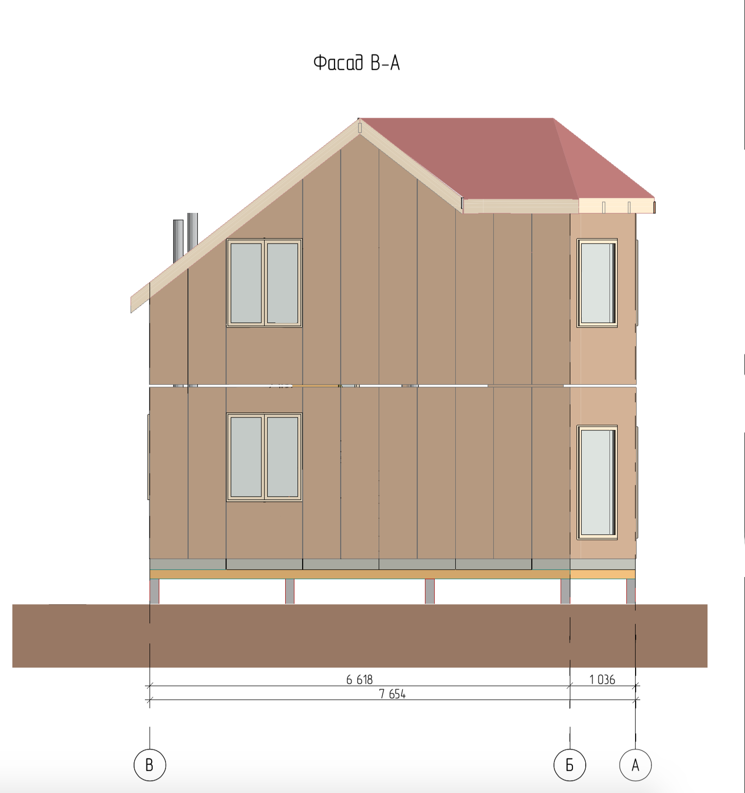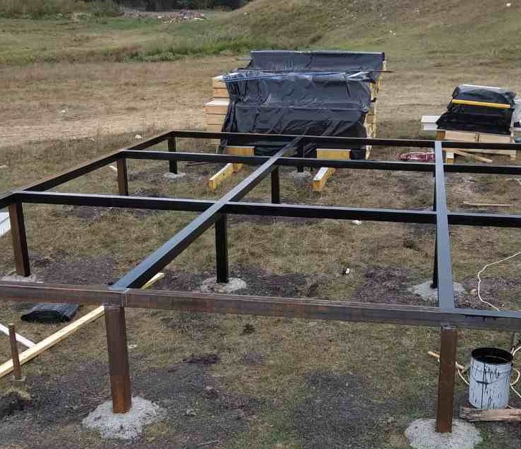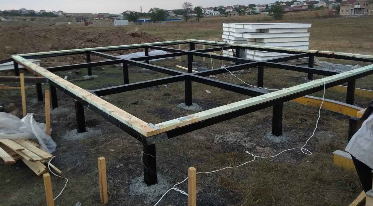 Ростверк изготовлен из калиброванного клееного бруса и защищен снаружи цементно-стружечной плитой