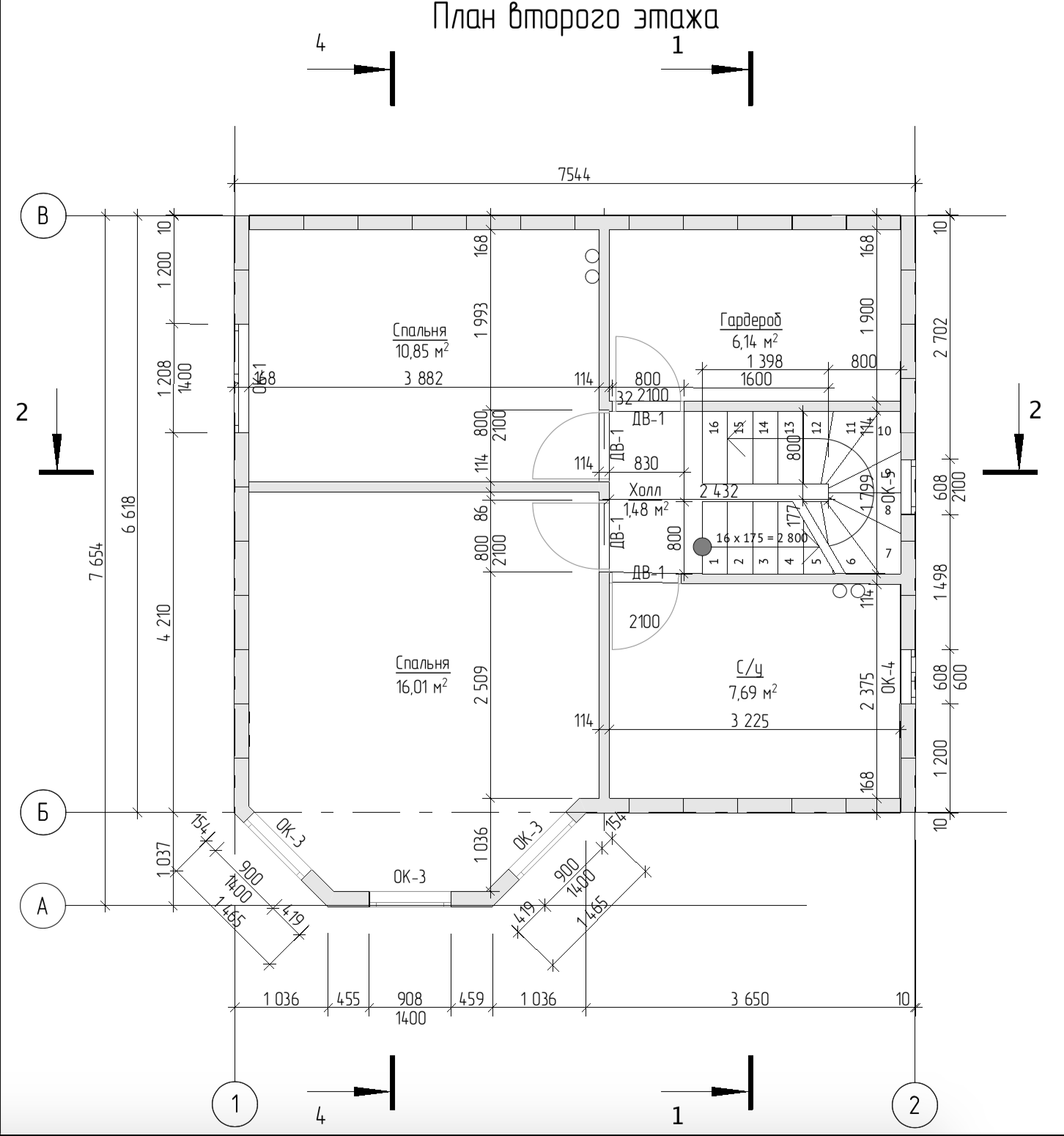 Площадь второго этажа: 53 м²