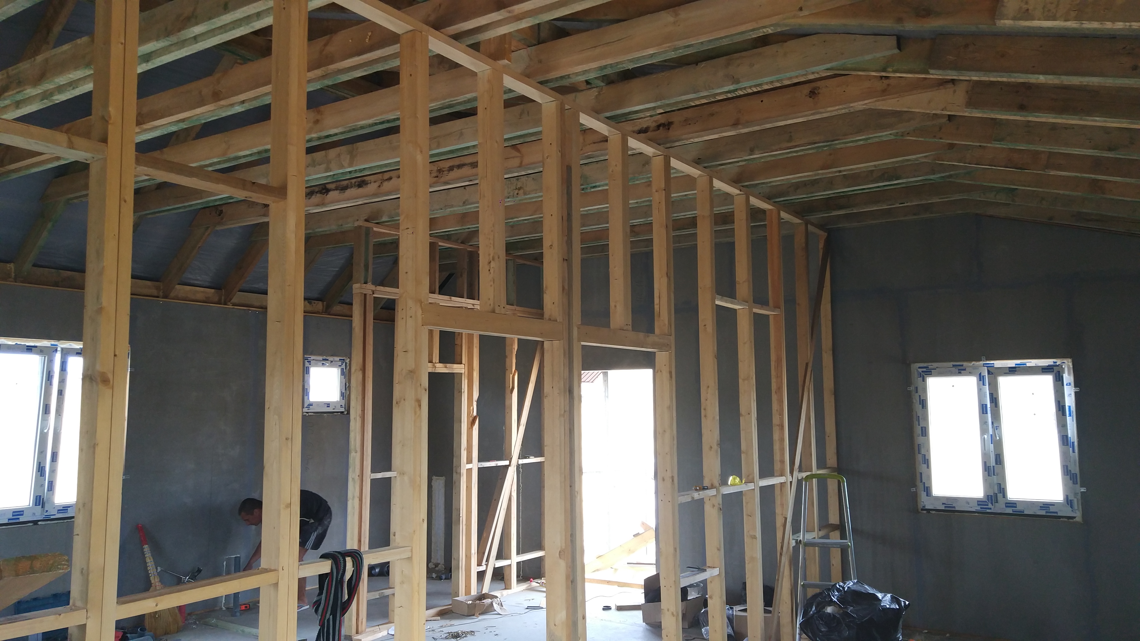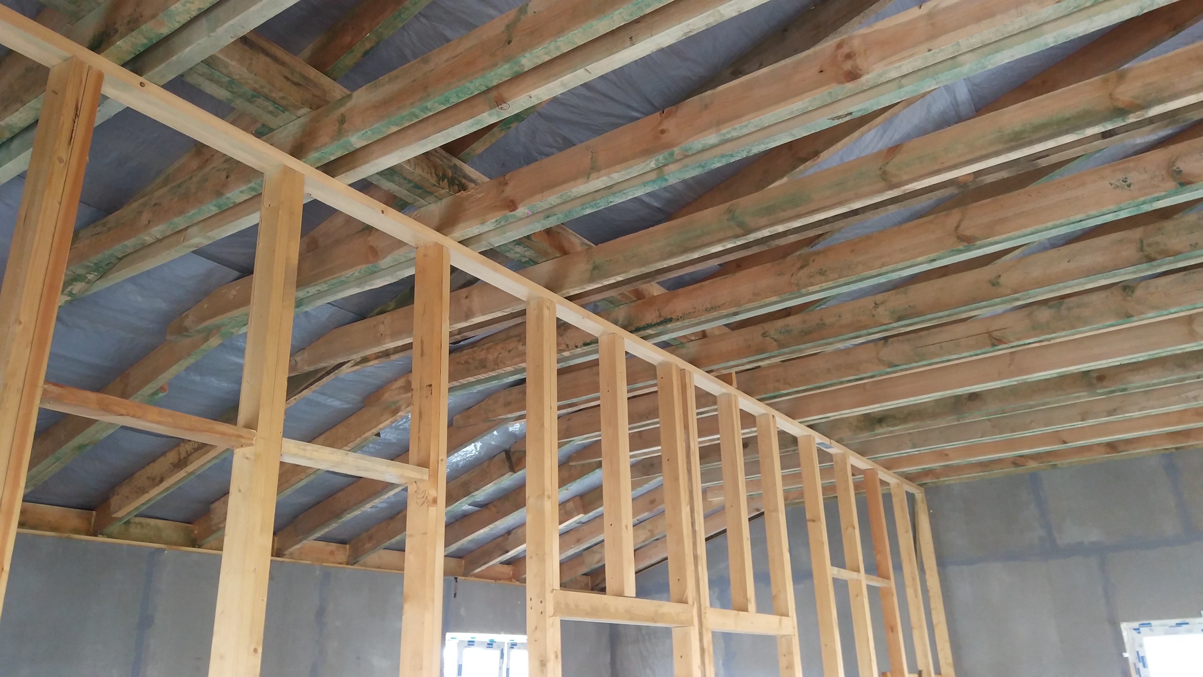 В межэтажных перекрытиях в качестве несущих лаг мы применяем двутавровые балки собственного производства с влагостойкой 24 мм. фанерой в сердечнике.
