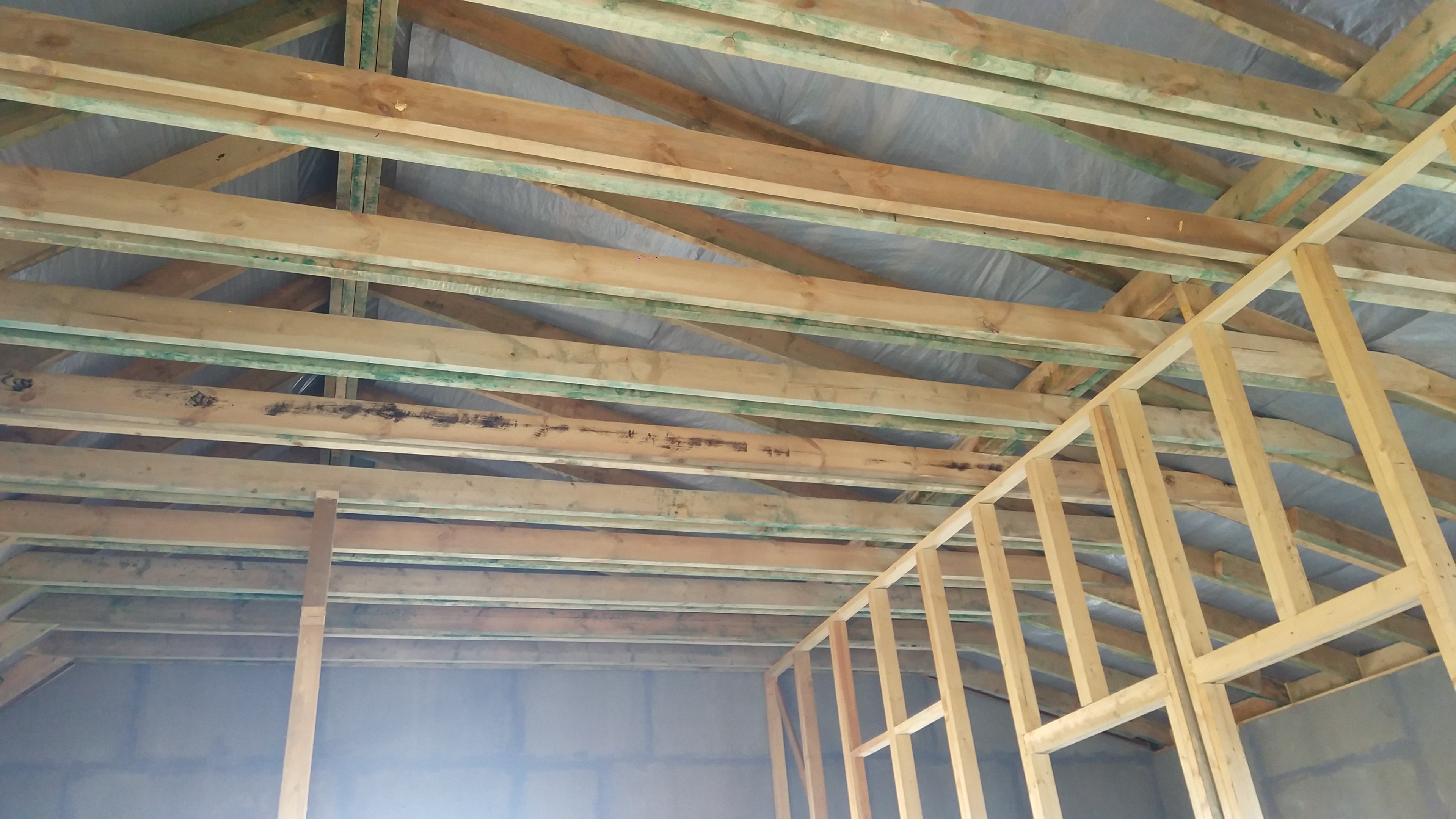 Ростверк изготовлен из калиброванного клееного бруса и защищен снаружи цементно-стружечной плитой