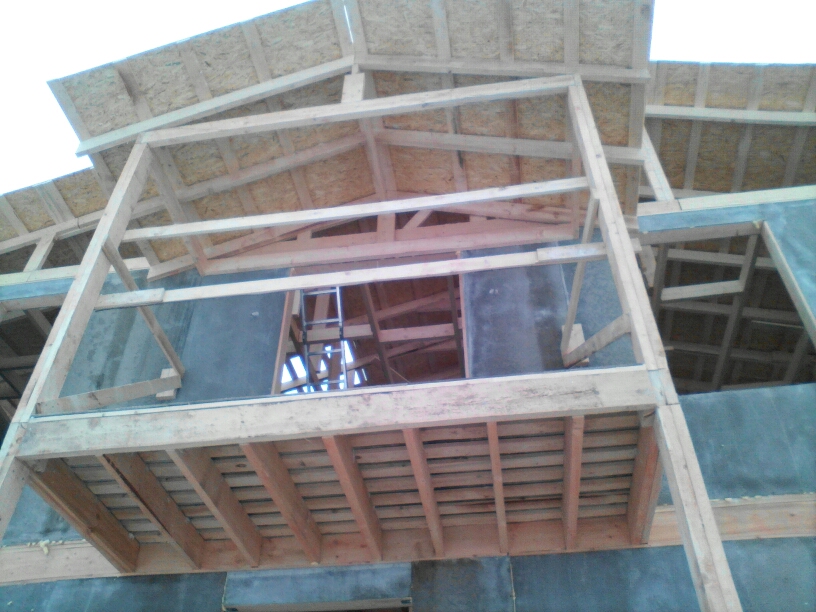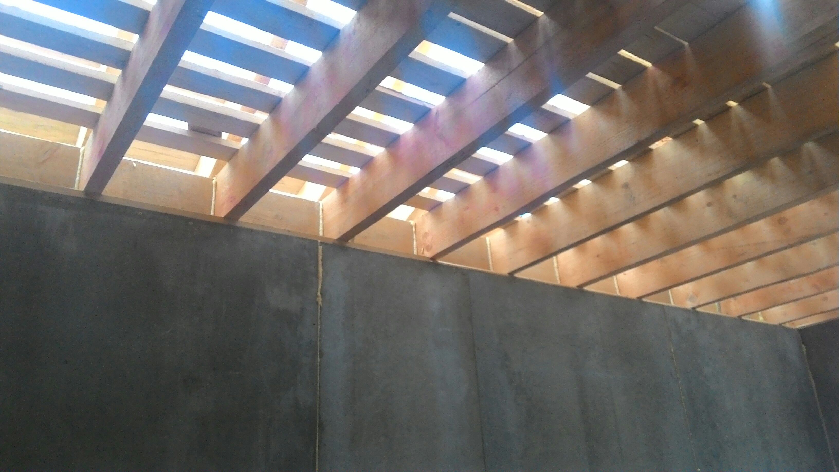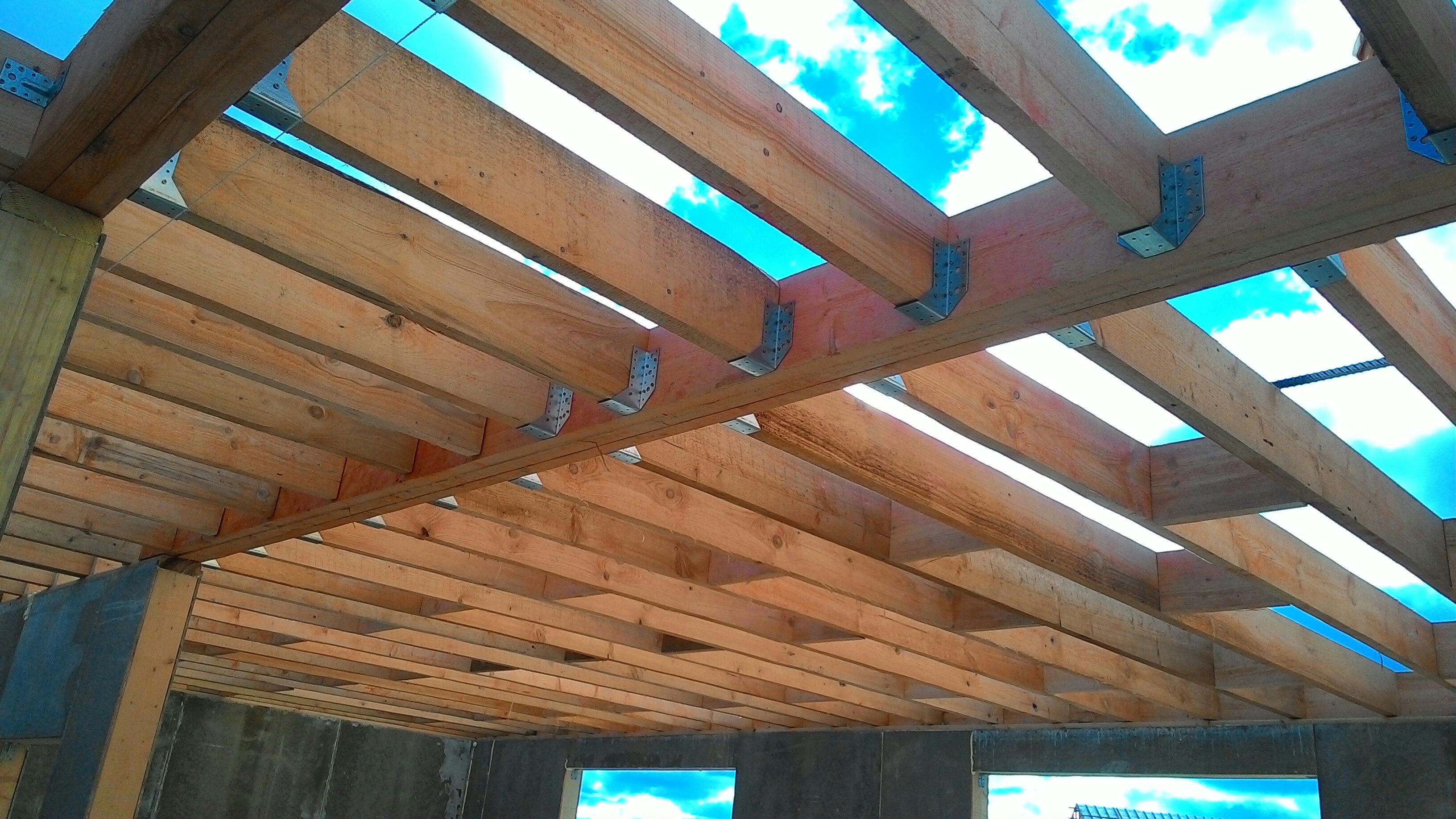 В межэтажных перекрытиях в качестве несущих лаг мы применяем двутавровые балки собственного производства с влагостойкой 24 мм. фанерой в сердечнике.