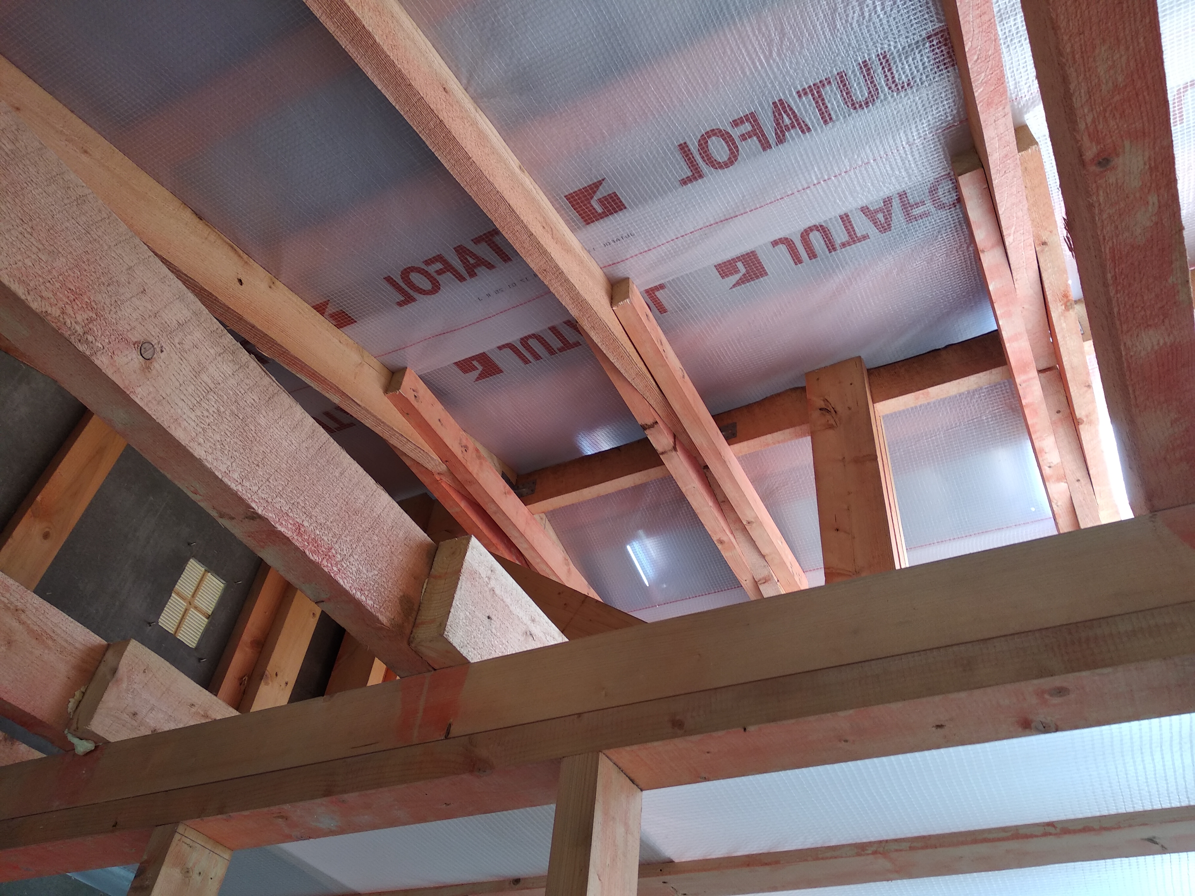 В межэтажных перекрытиях в качестве несущих лаг мы применяем двутавровые балки собственного производства с влагостойкой 24 мм. фанерой в сердечнике.