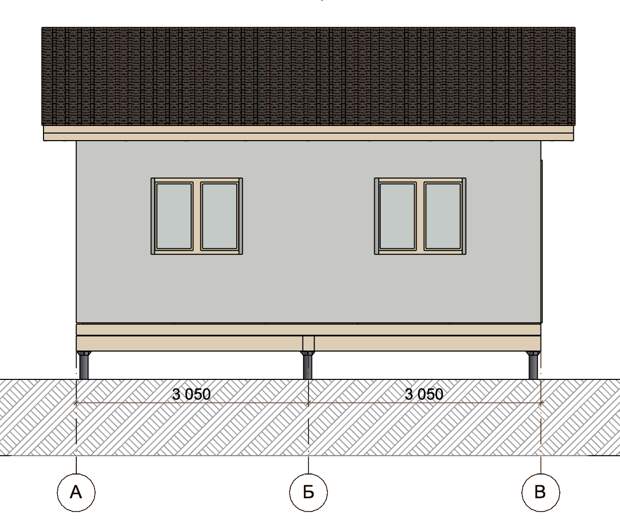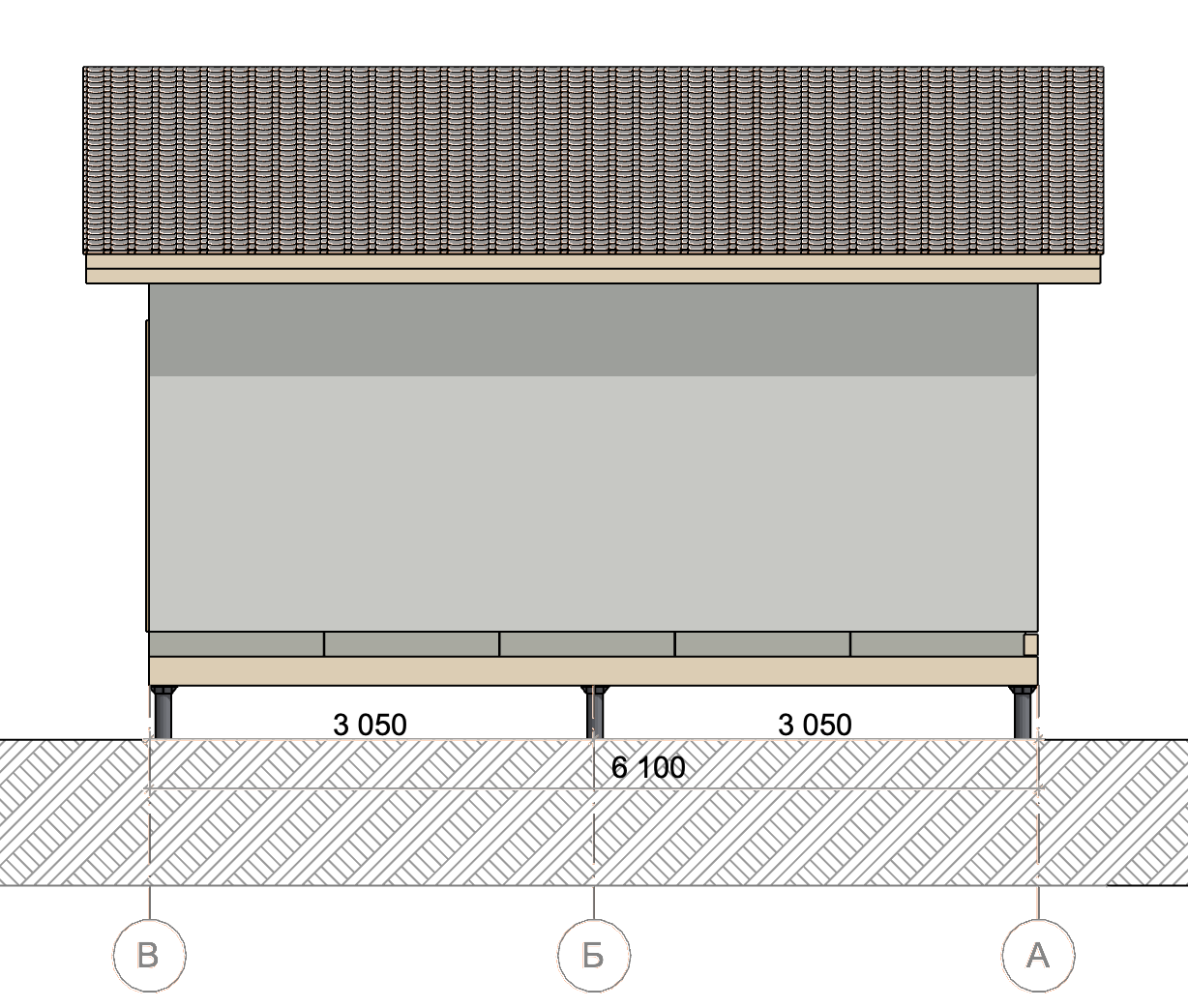Ростверк изготовлен из калиброванного клееного бруса и защищен снаружи цементно-стружечной плитой