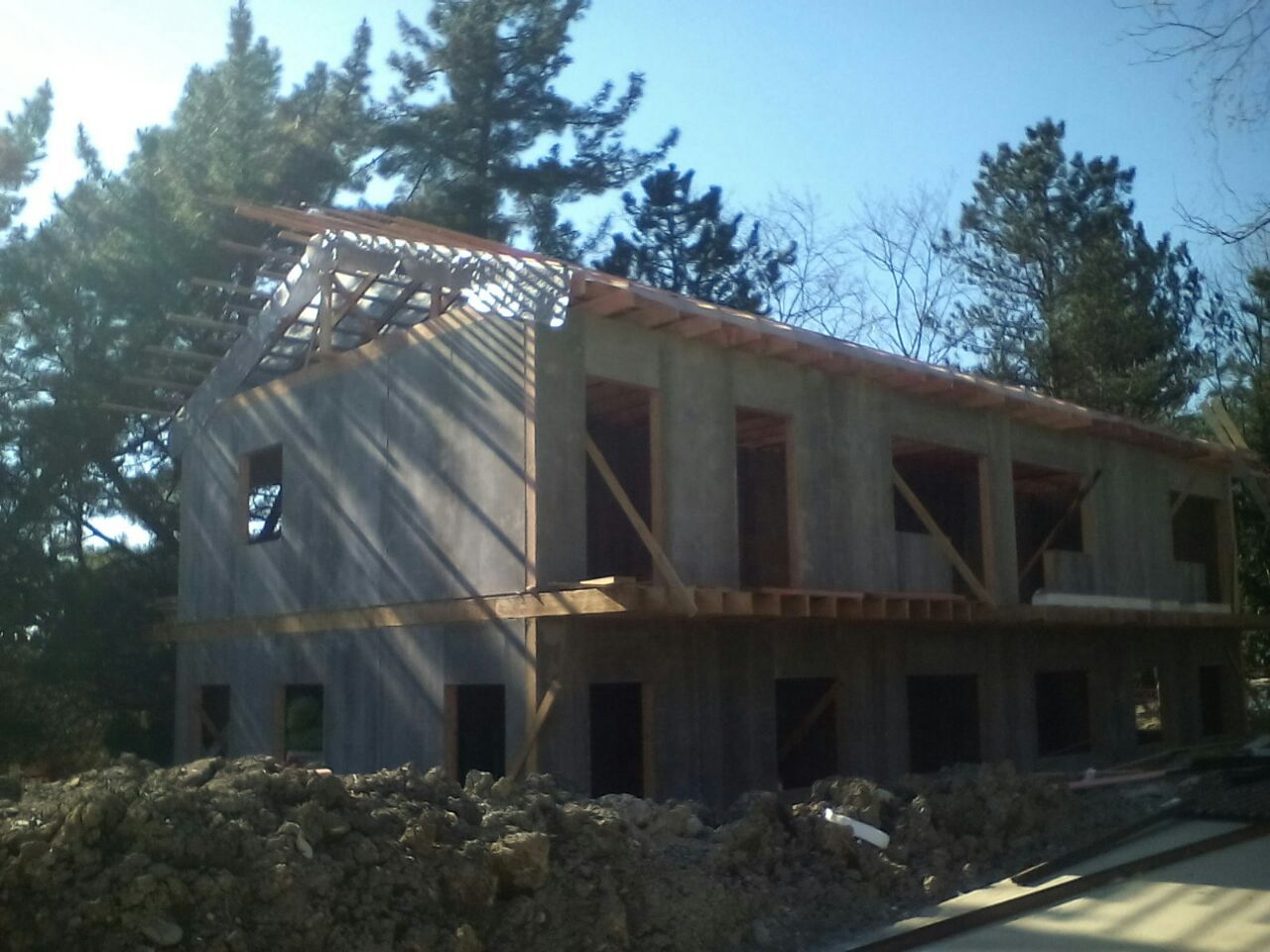 Ростверк изготовлен из калиброванного клееного бруса и защищен снаружи цементно-стружечной плитой