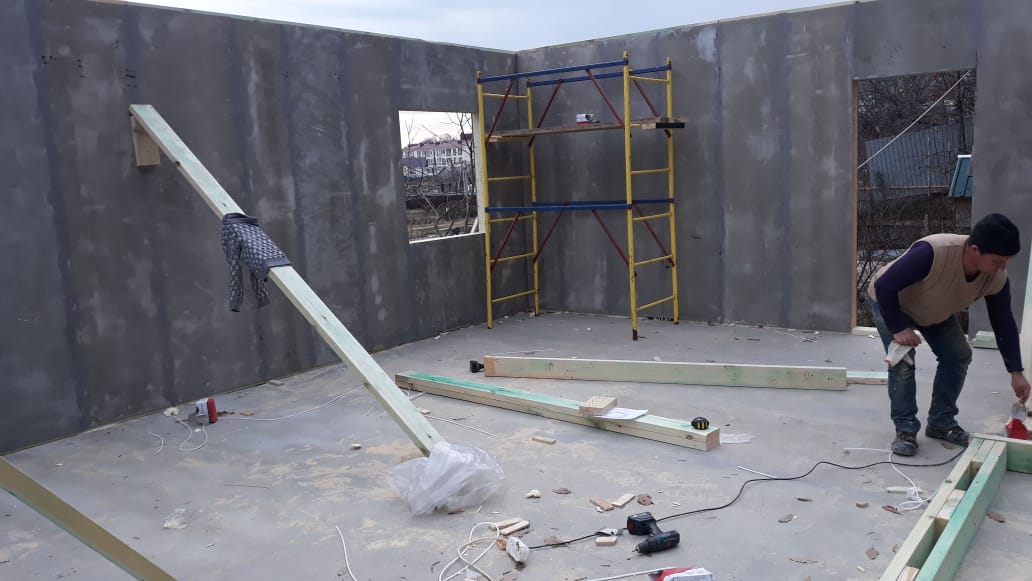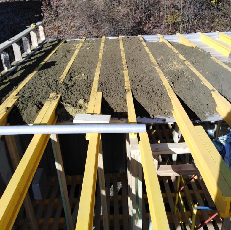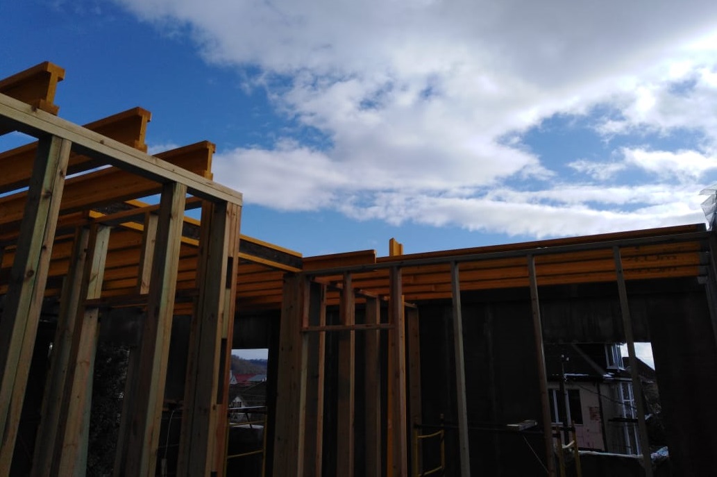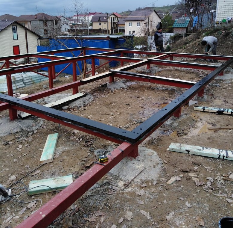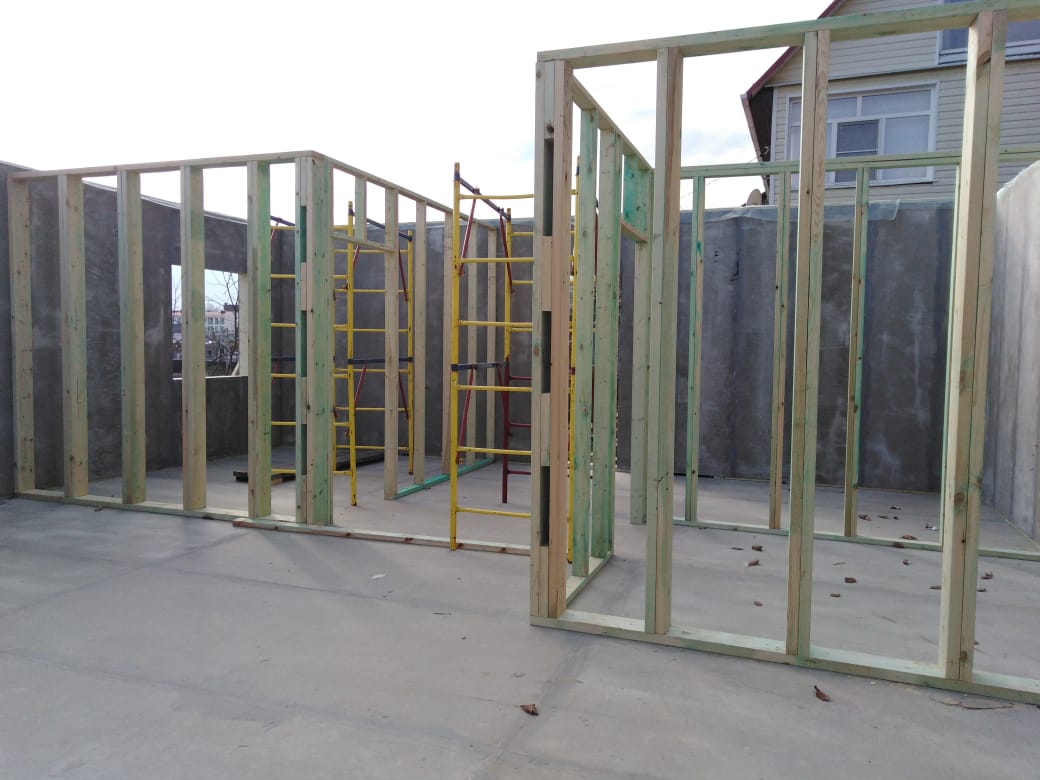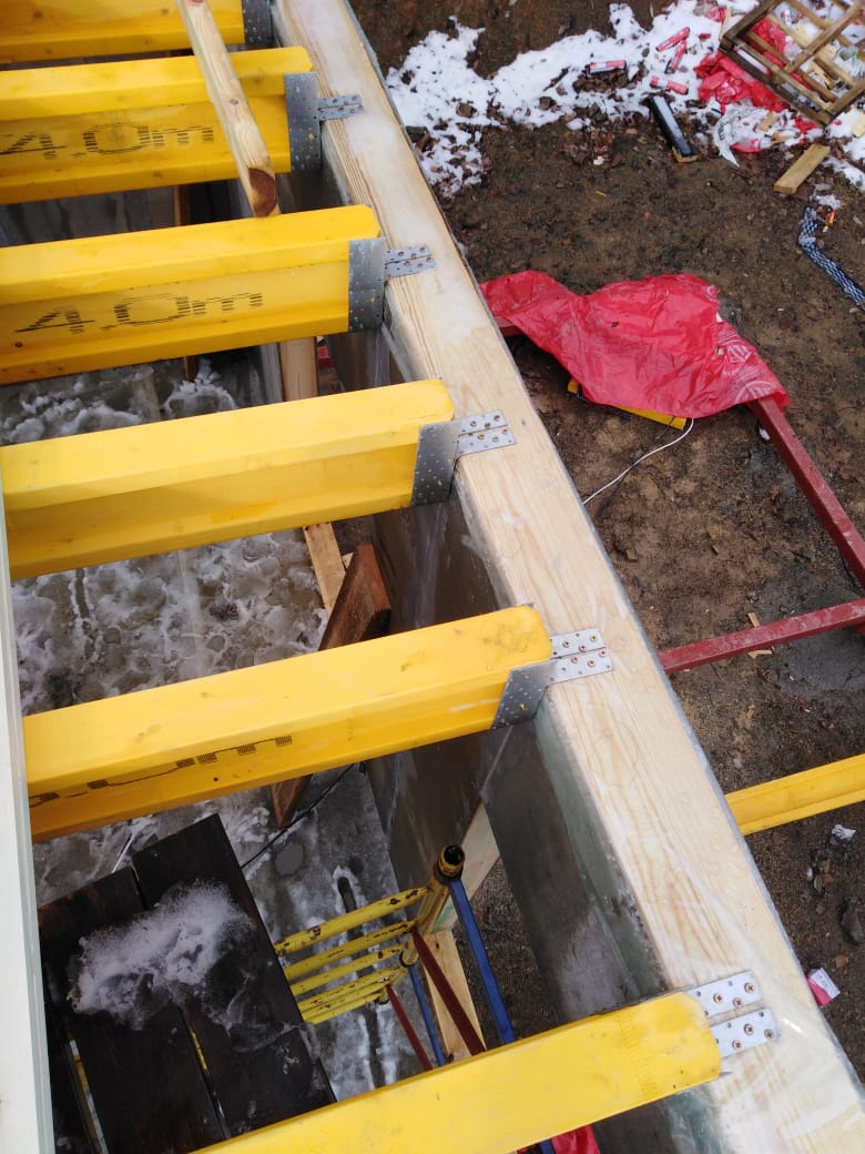 Ростверк изготовлен из калиброванного клееного бруса и защищен снаружи цементно-стружечной плитой
