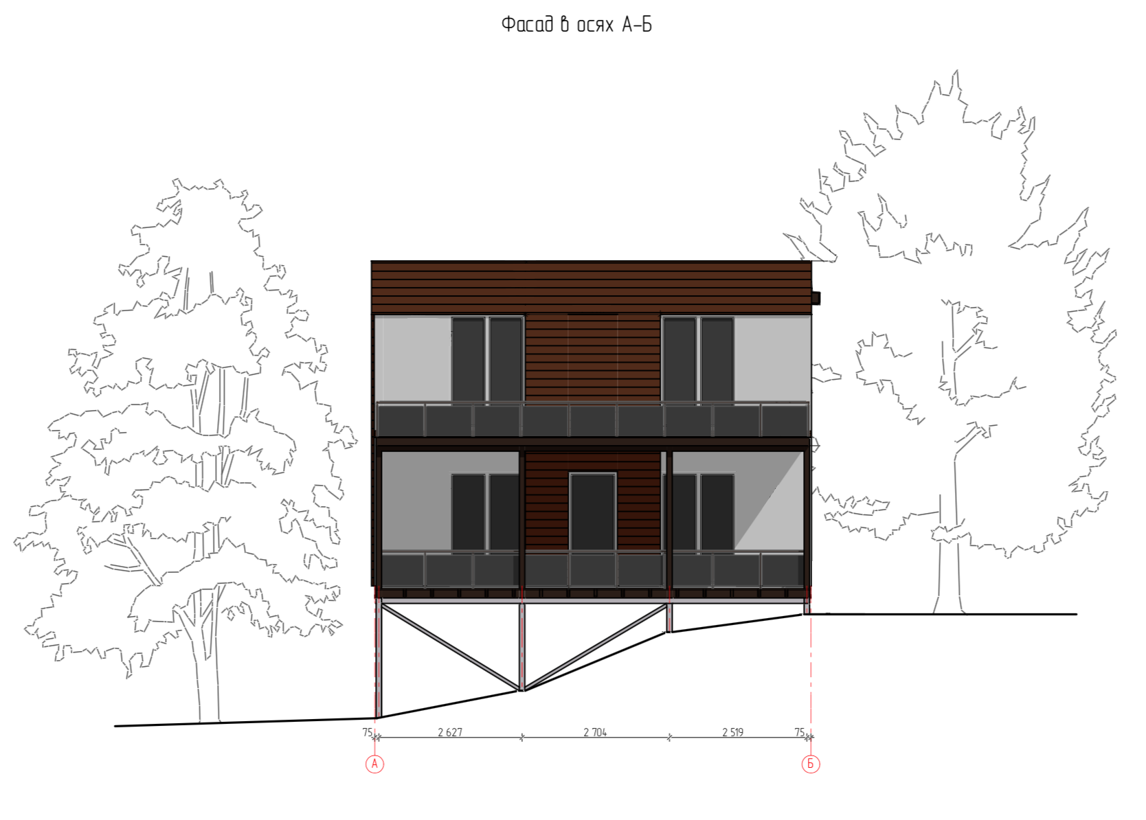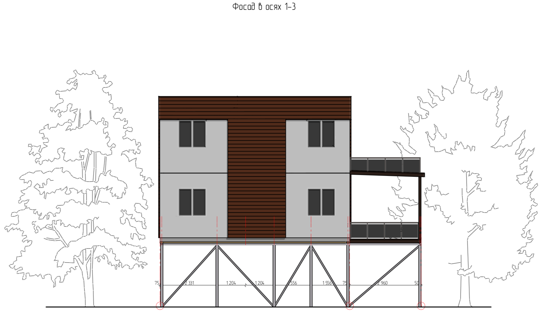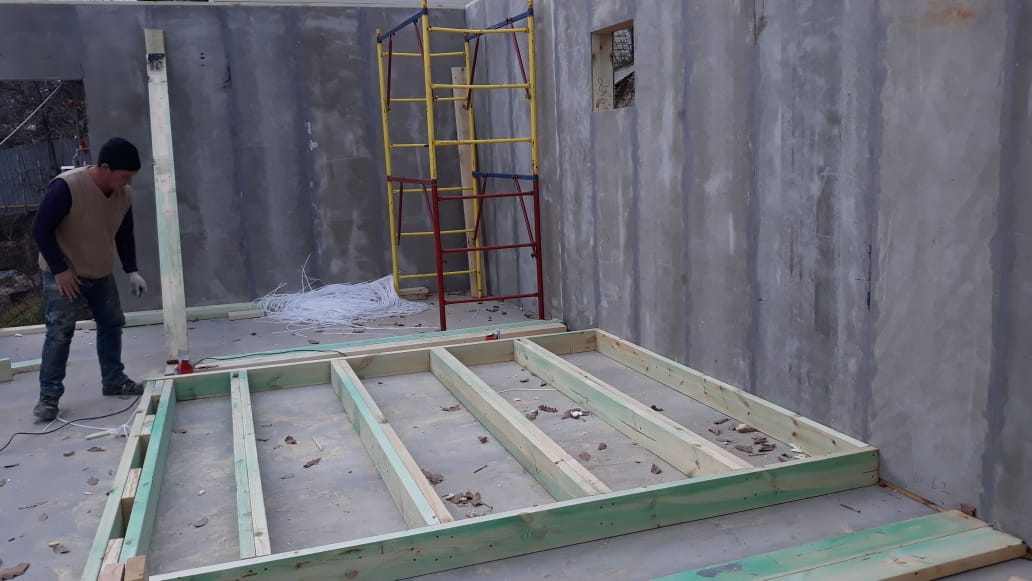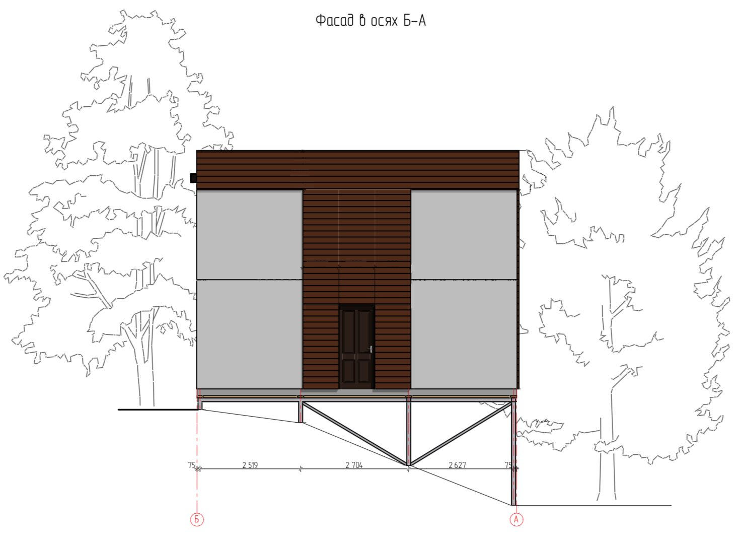 Ростверк изготовлен из калиброванного клееного бруса и защищен снаружи цементно-стружечной плитой