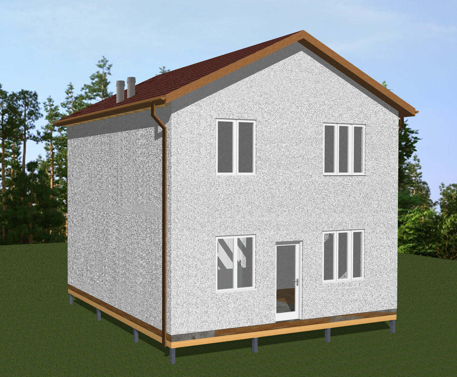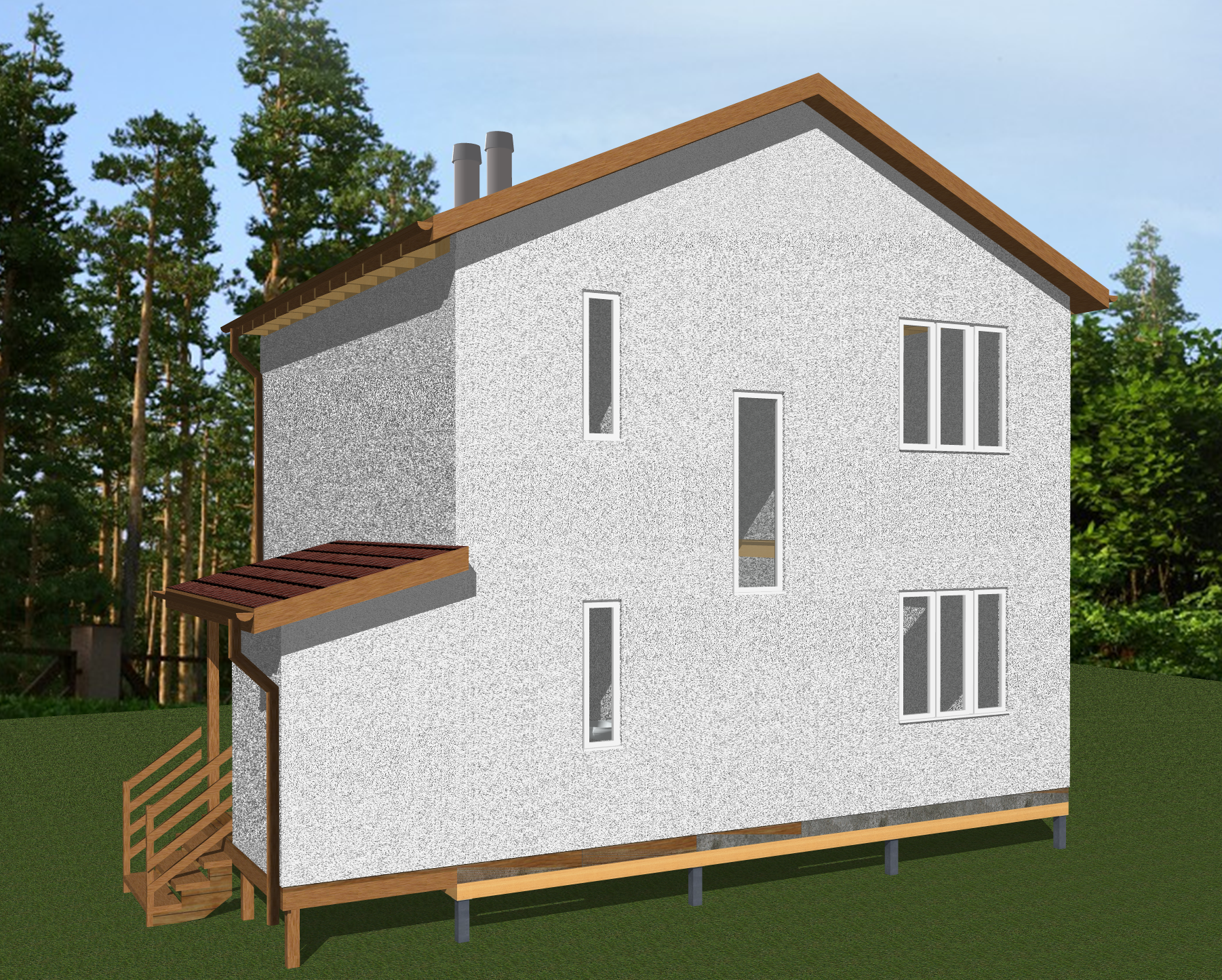 Ростверк изготовлен из калиброванного клееного бруса и защищен снаружи цементно-стружечной плитой