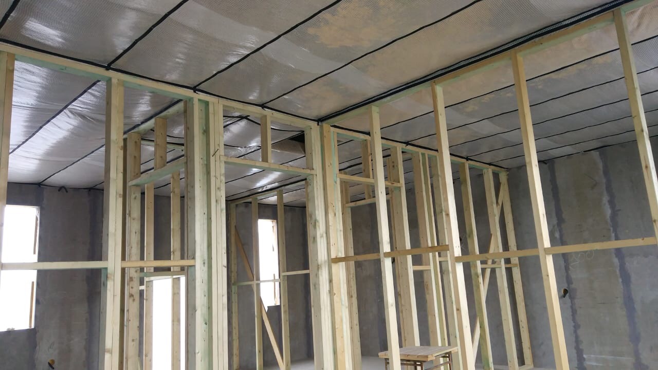 В качестве утеплителя помимо полистирола мы применяем каменную мин. плиту ISOVER. Класс горючести такого утеплителя НГ- негорюч. Данный утеплитель имеет потрясающие акустические (шумоизоляционные) характеристики!