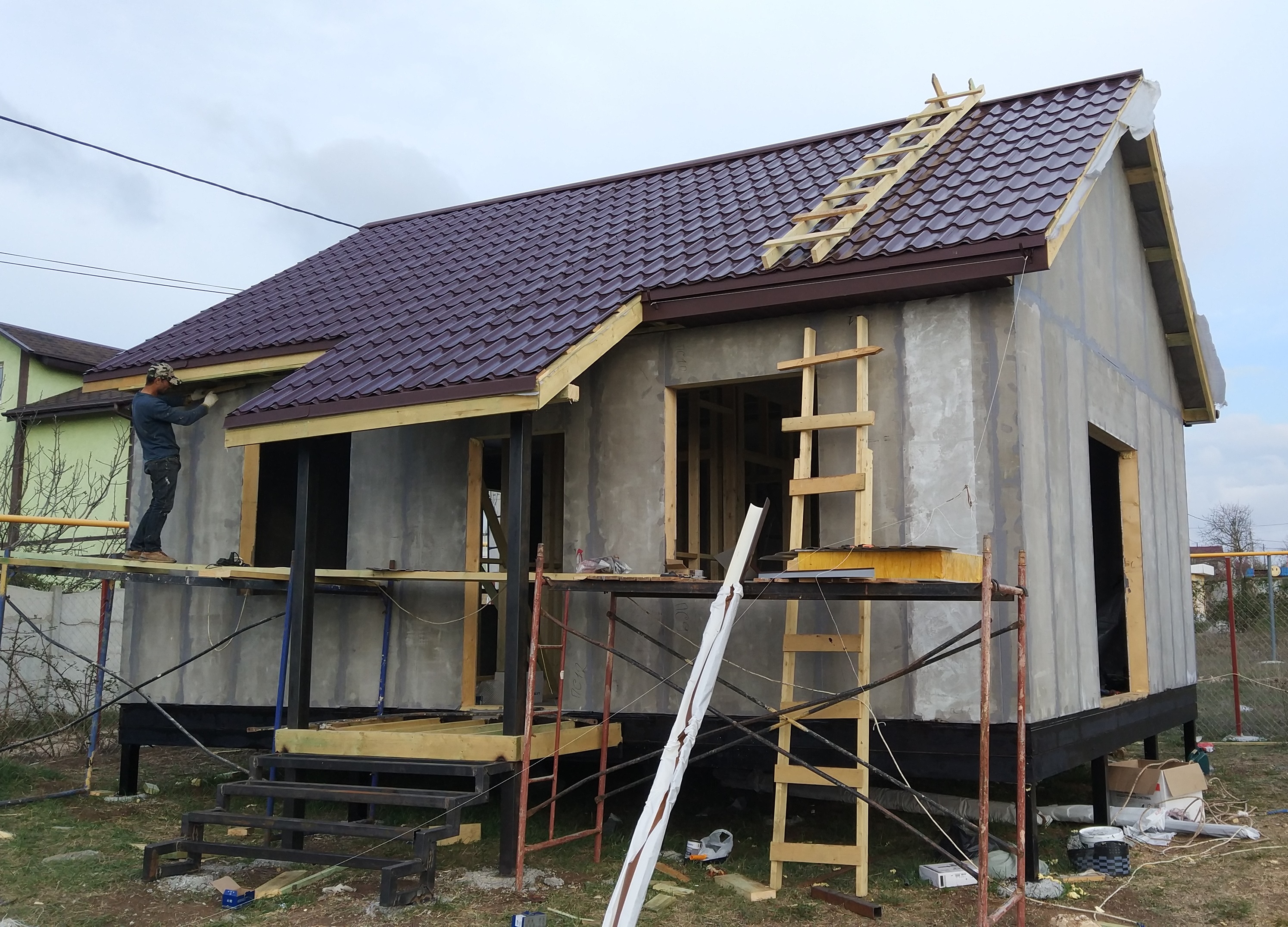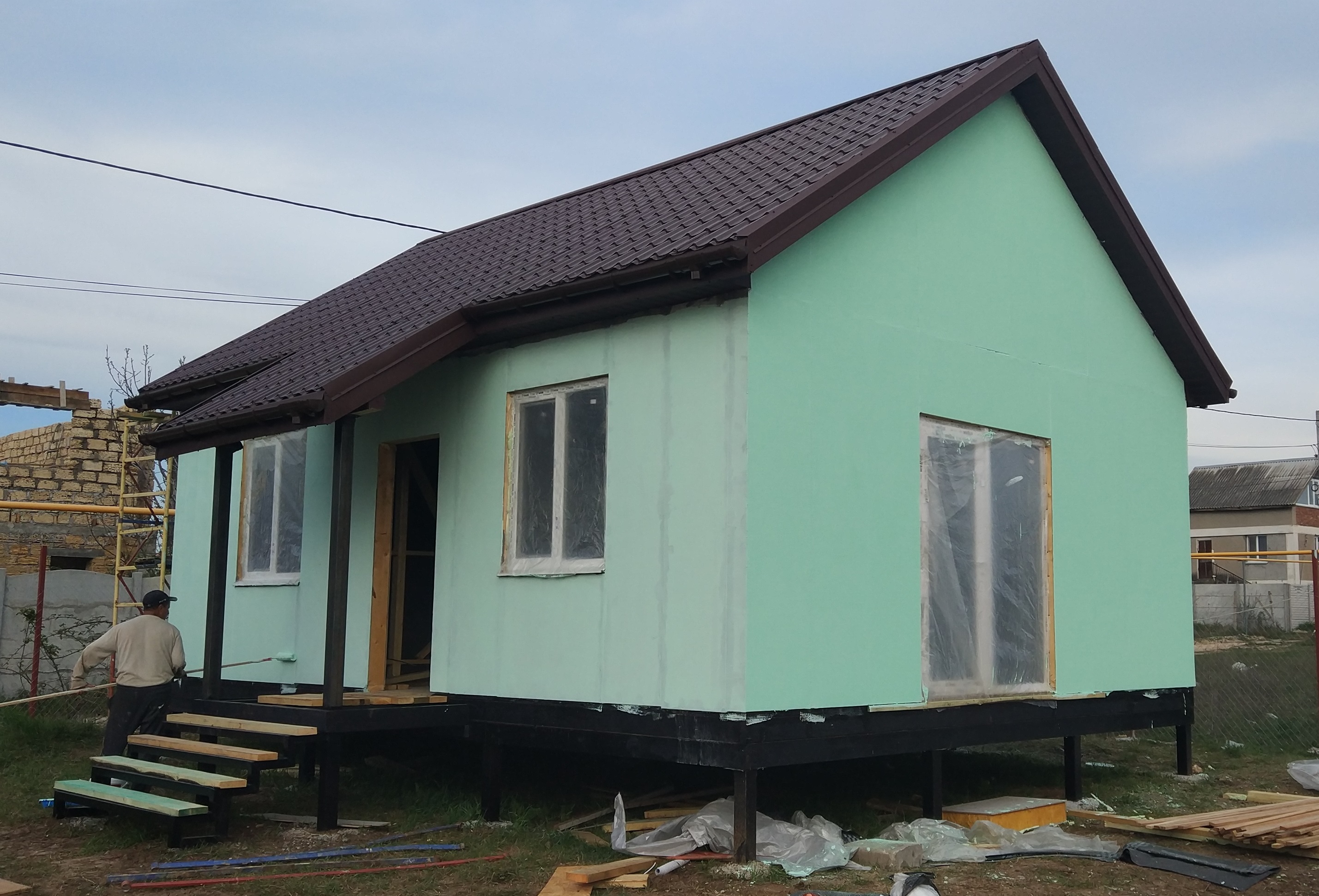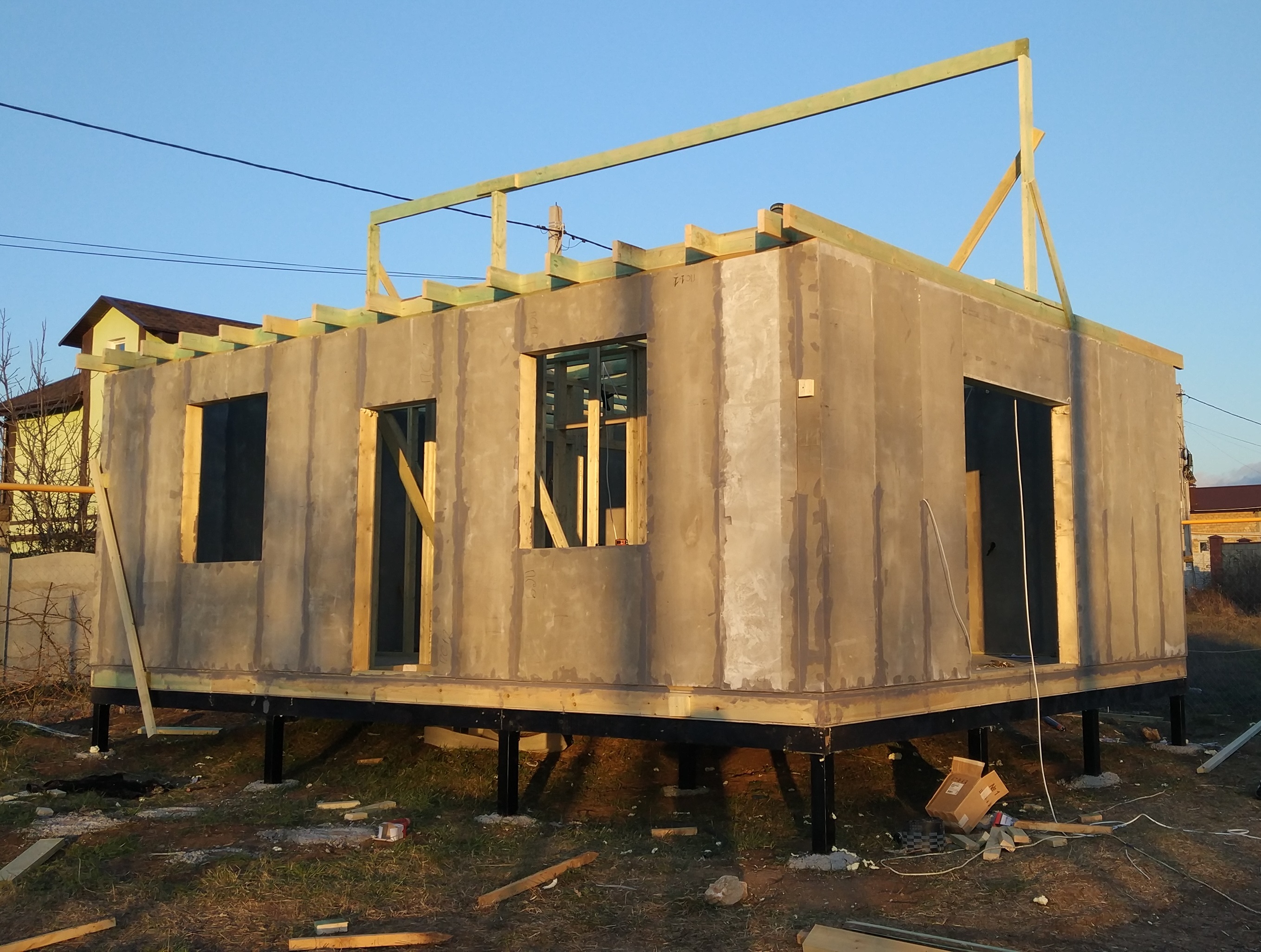 Как и большинство людей, мы выбрали сип-технологию по причине удачного соотношения «цена-качество-скорость». Опасения у нас, конечно же, были, но они не оправдались. Мы обошли несколько фирм, которые занимаются быстровозводимыми домами, побывали на объектах, все осмотрели, постучали по стенам, и в итоге выбрали Вирмак. У нас создалось впечатление, что это серьезные люди, с которыми смело можно работать. К тому же, именно дома от Вирмак оказались на деле самыми качественными и надежными. Непосредственно строительство нашего дома велось две недели, сваи сделали заблаговременно. Сборка дома заняли не более пяти дней, остальное время ушло на кровлю.