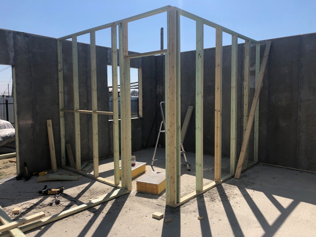 Ростверк изготовлен из калиброванного клееного бруса и защищен снаружи цементно-стружечной плитой