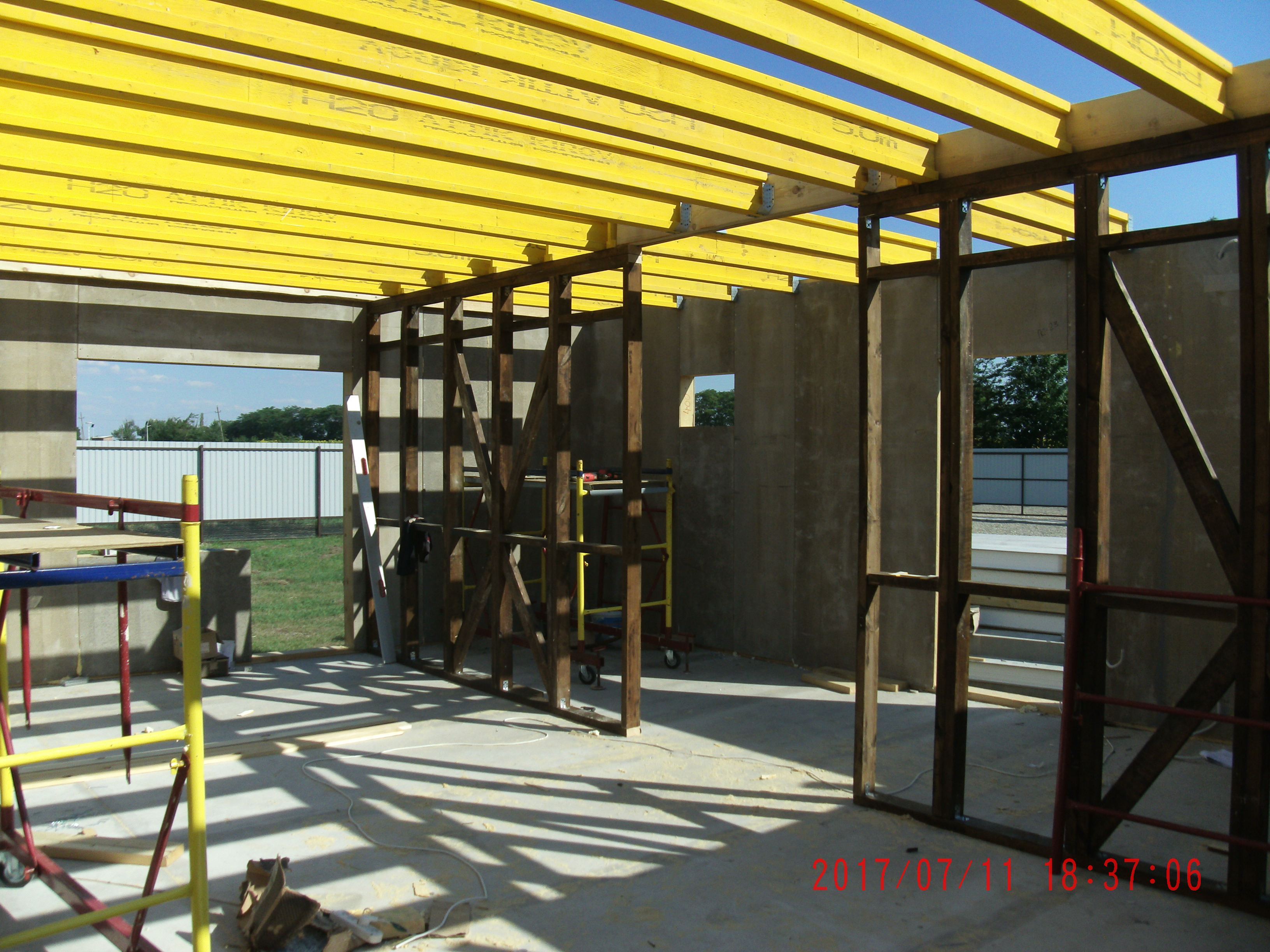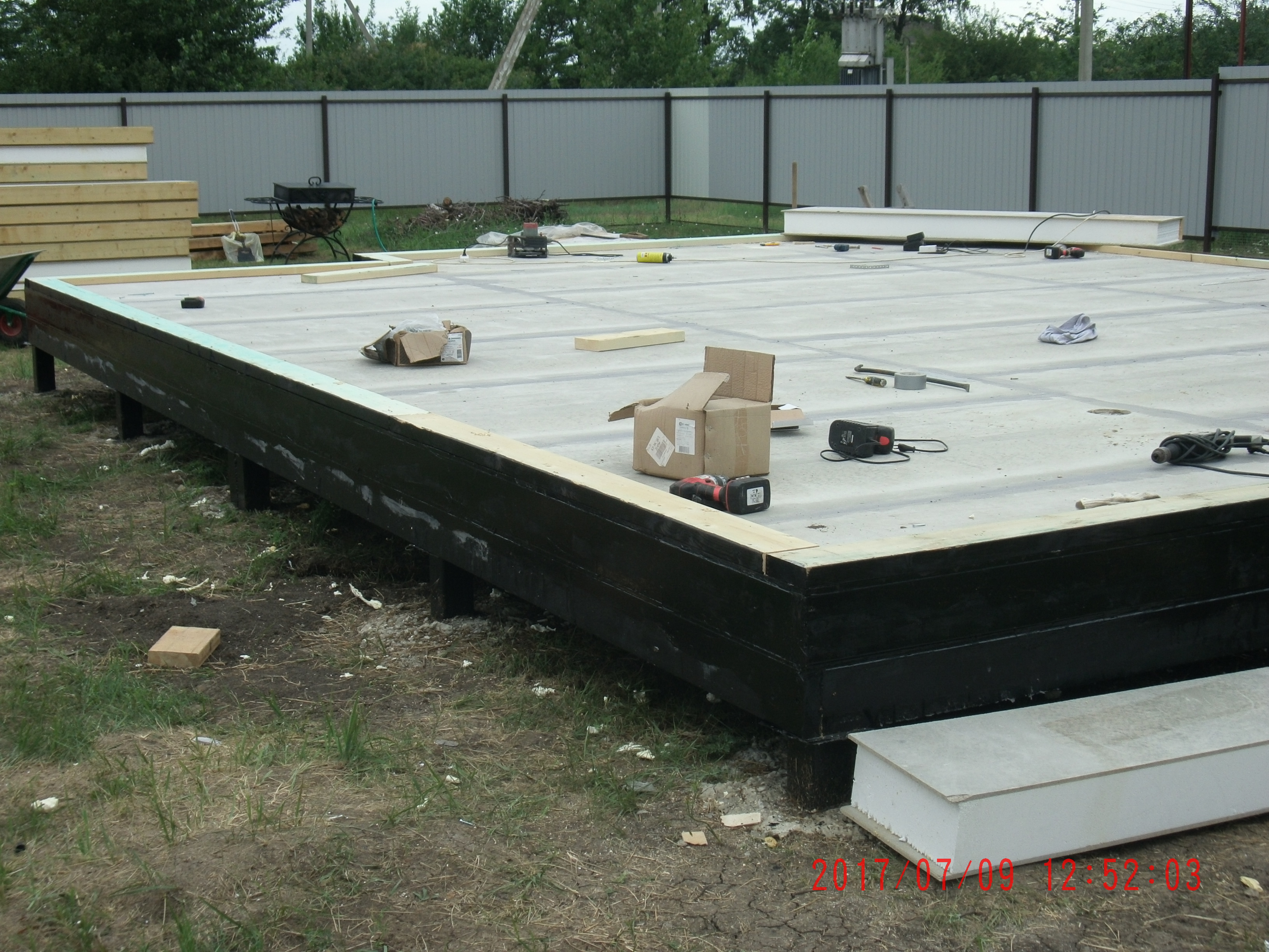 Ростверк изготовлен из калиброванного клееного бруса и защищен снаружи цементно-стружечной плитой