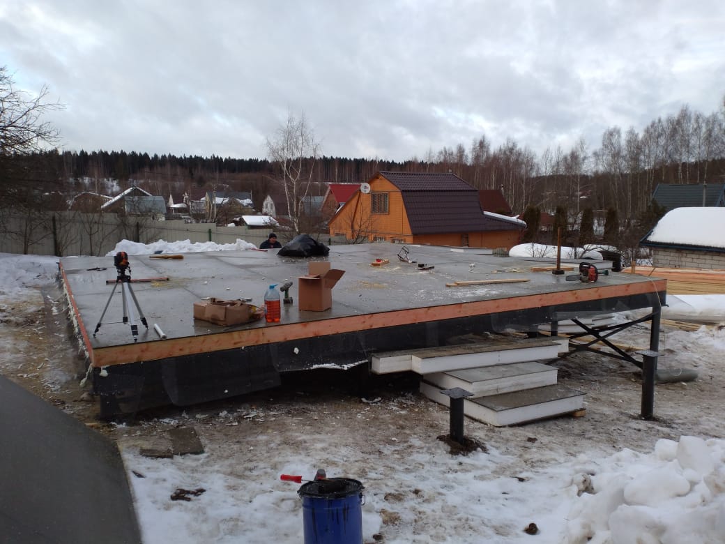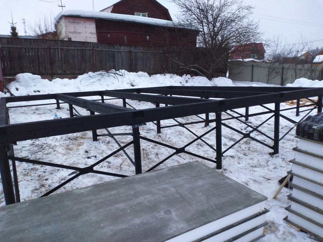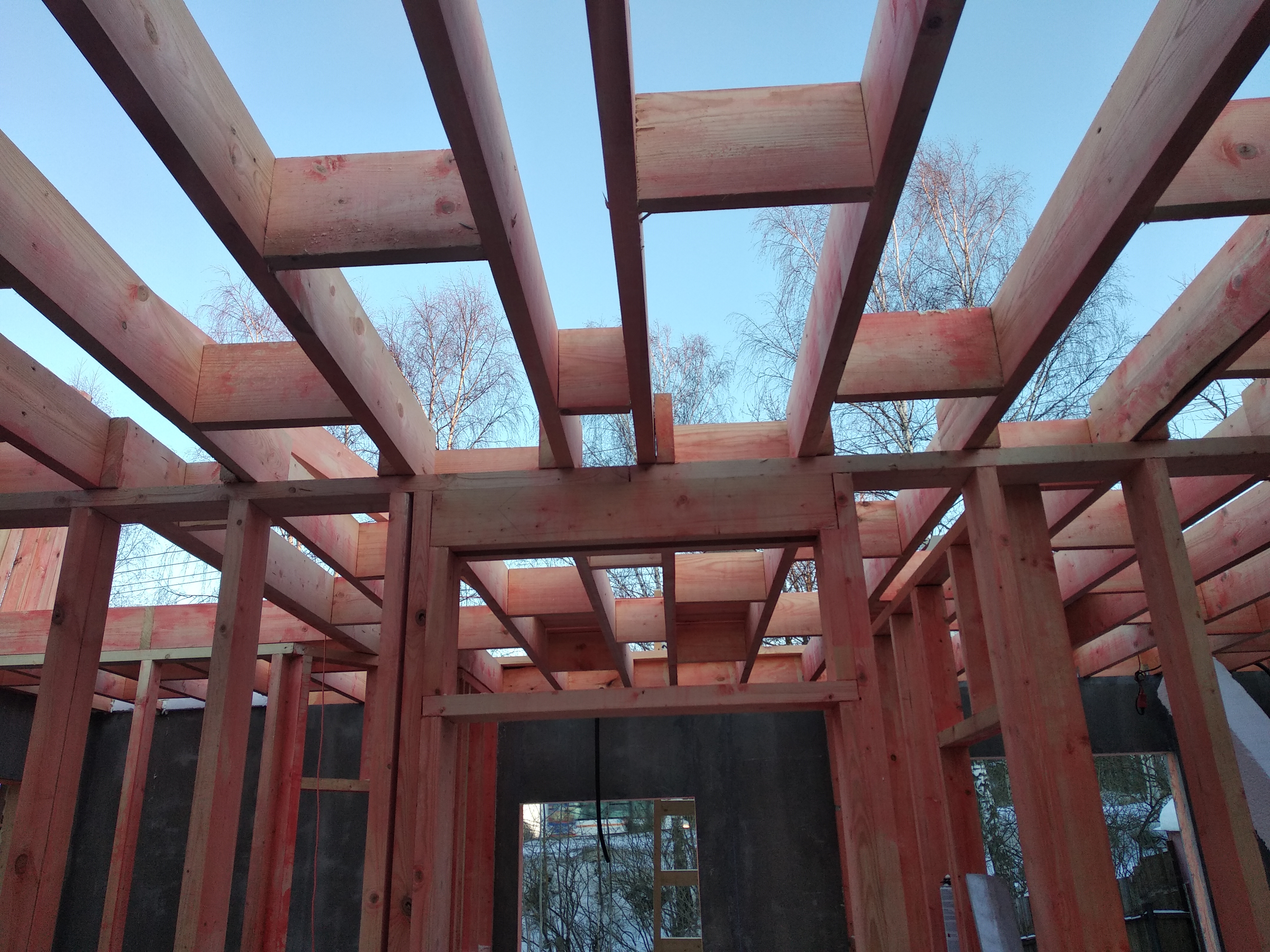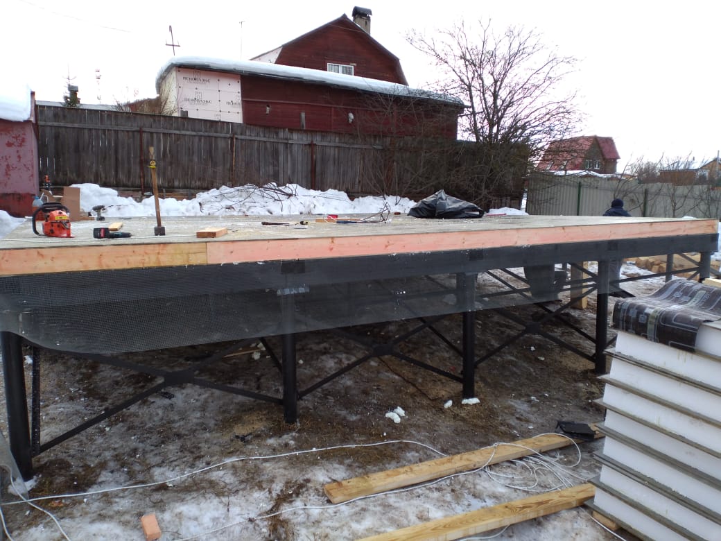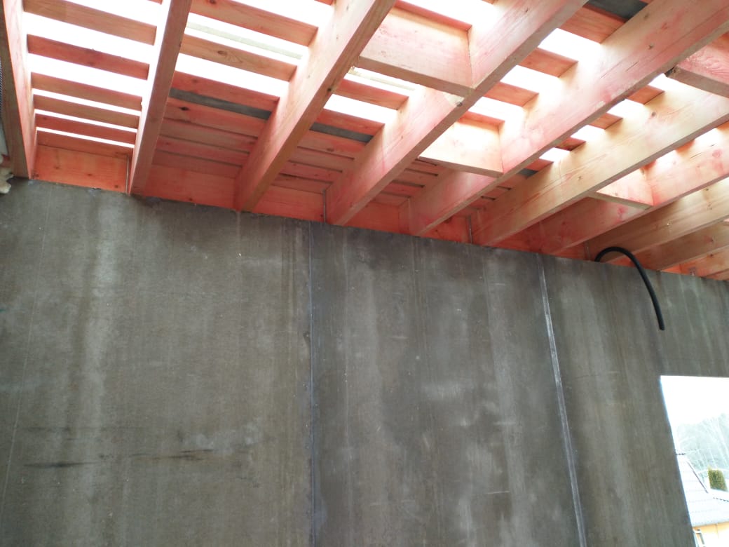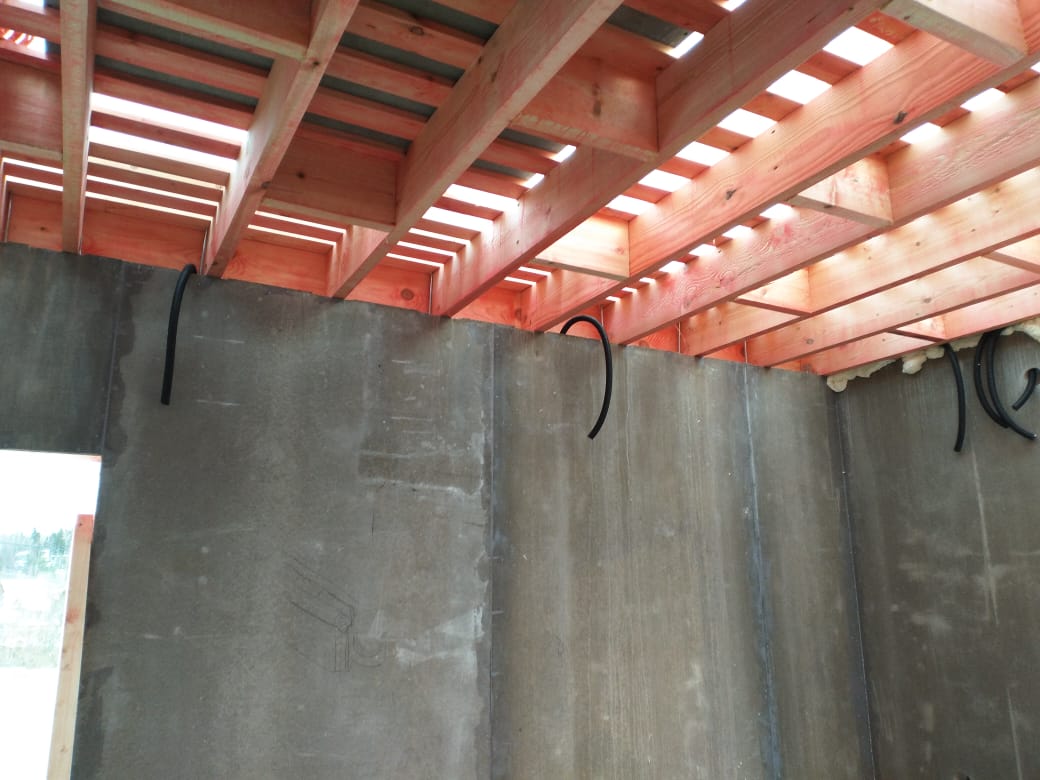 Ростверк изготовлен из калиброванного клееного бруса и защищен снаружи цементно-стружечной плитой