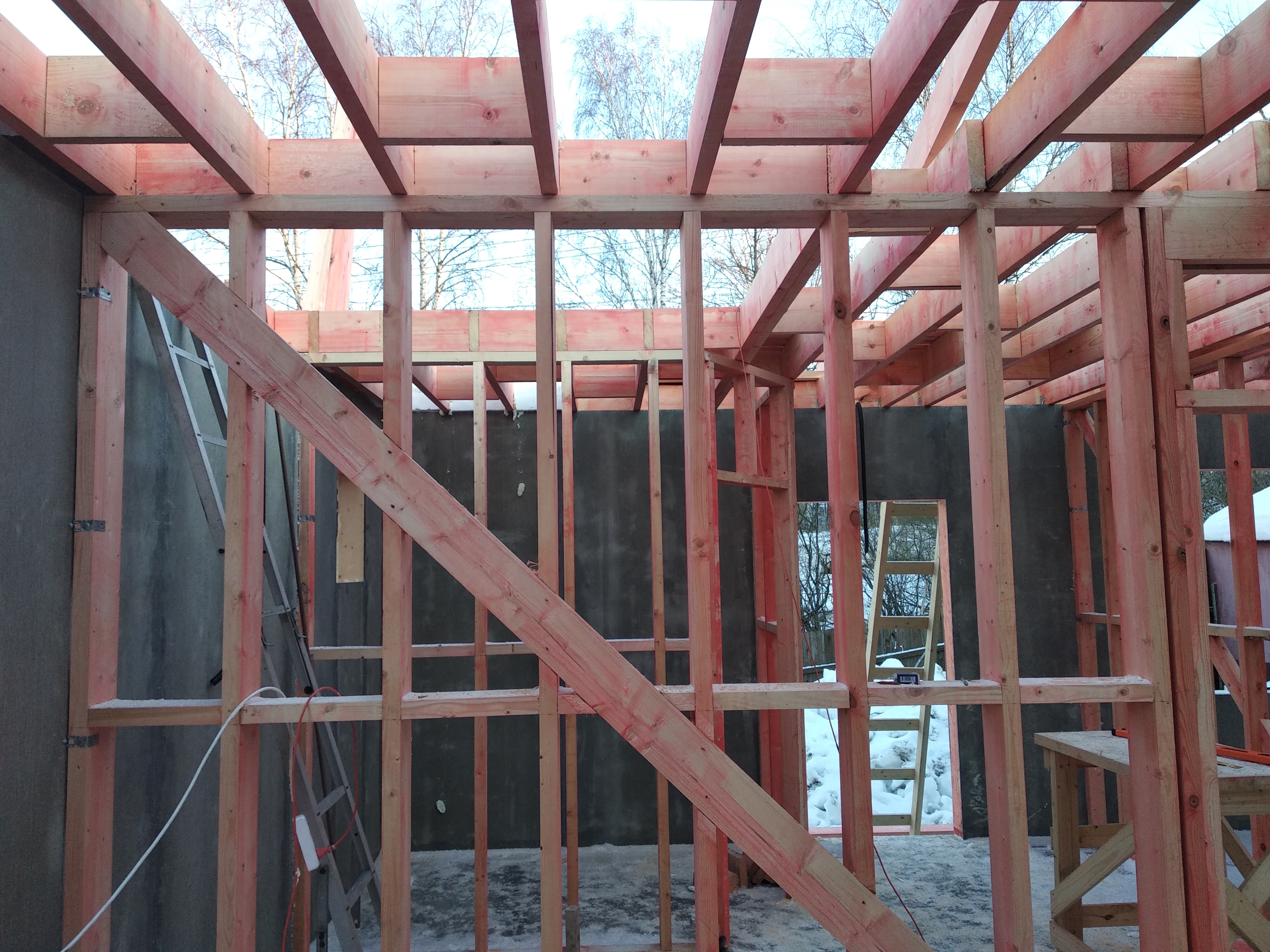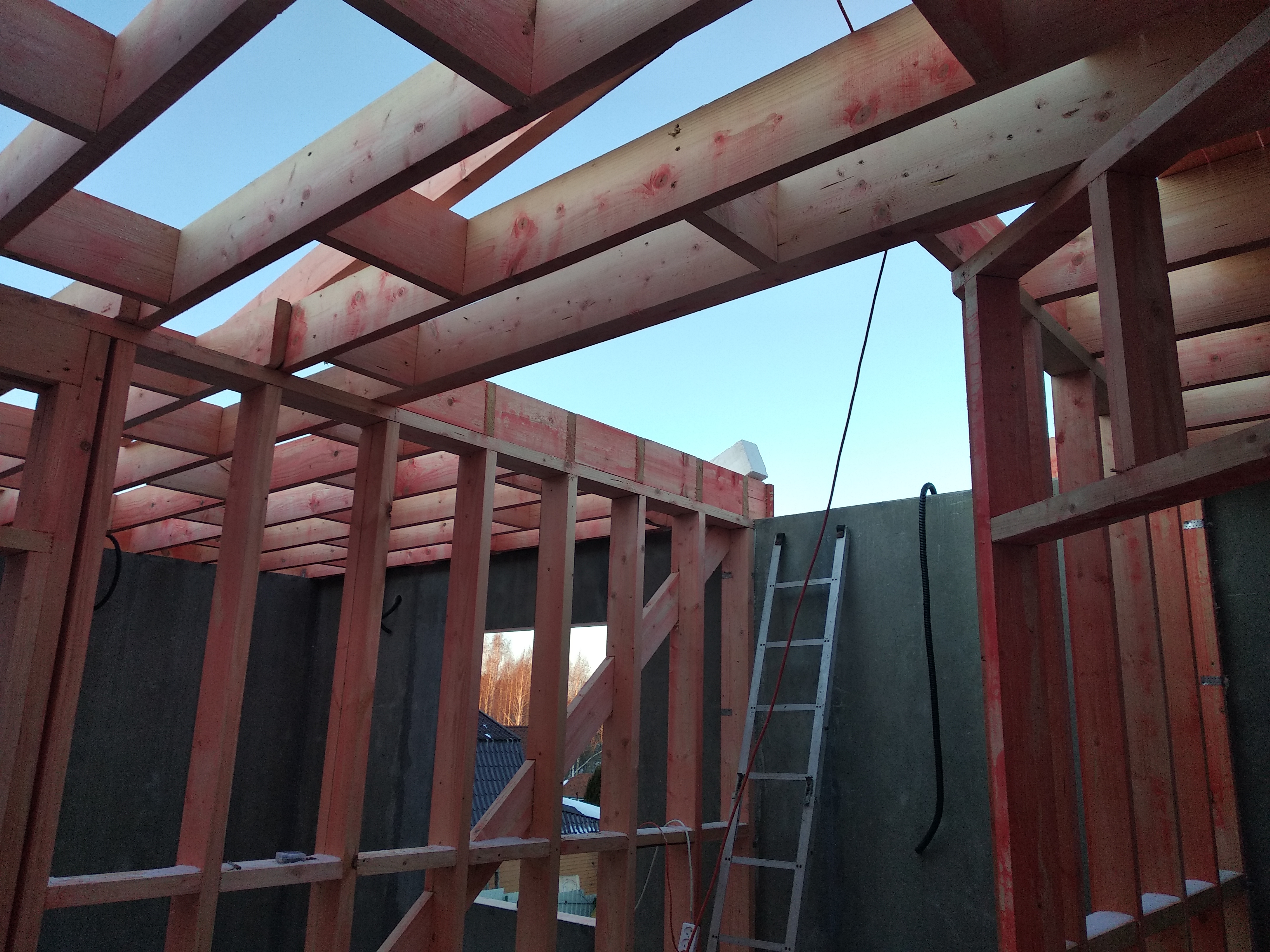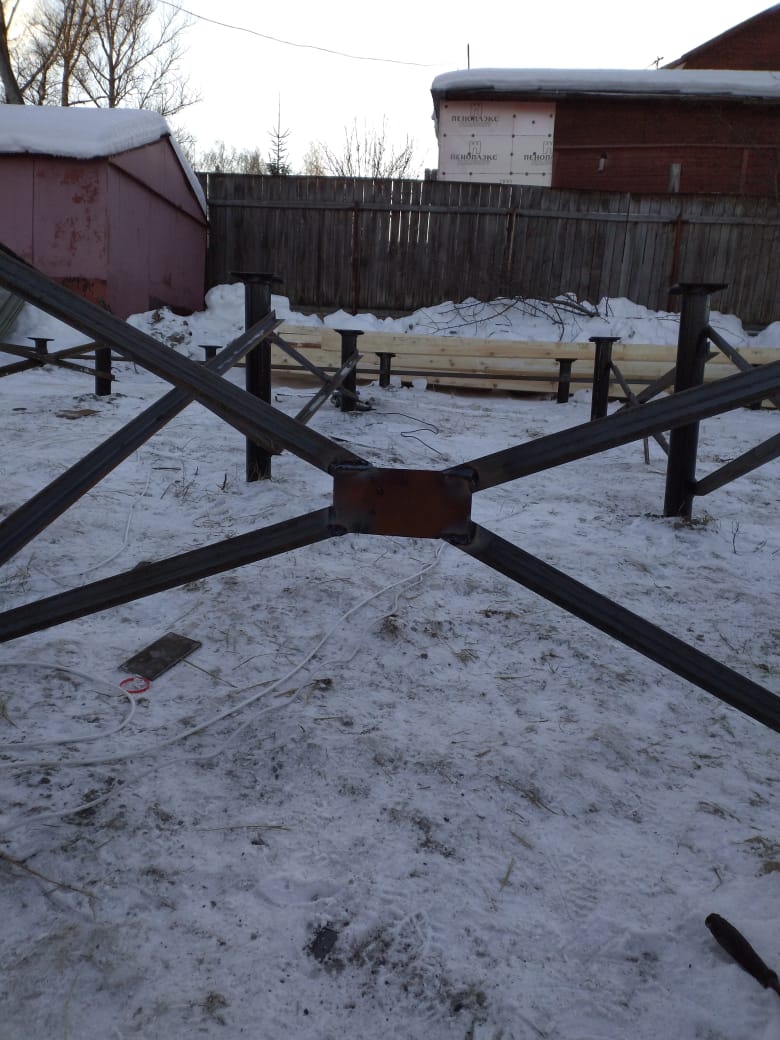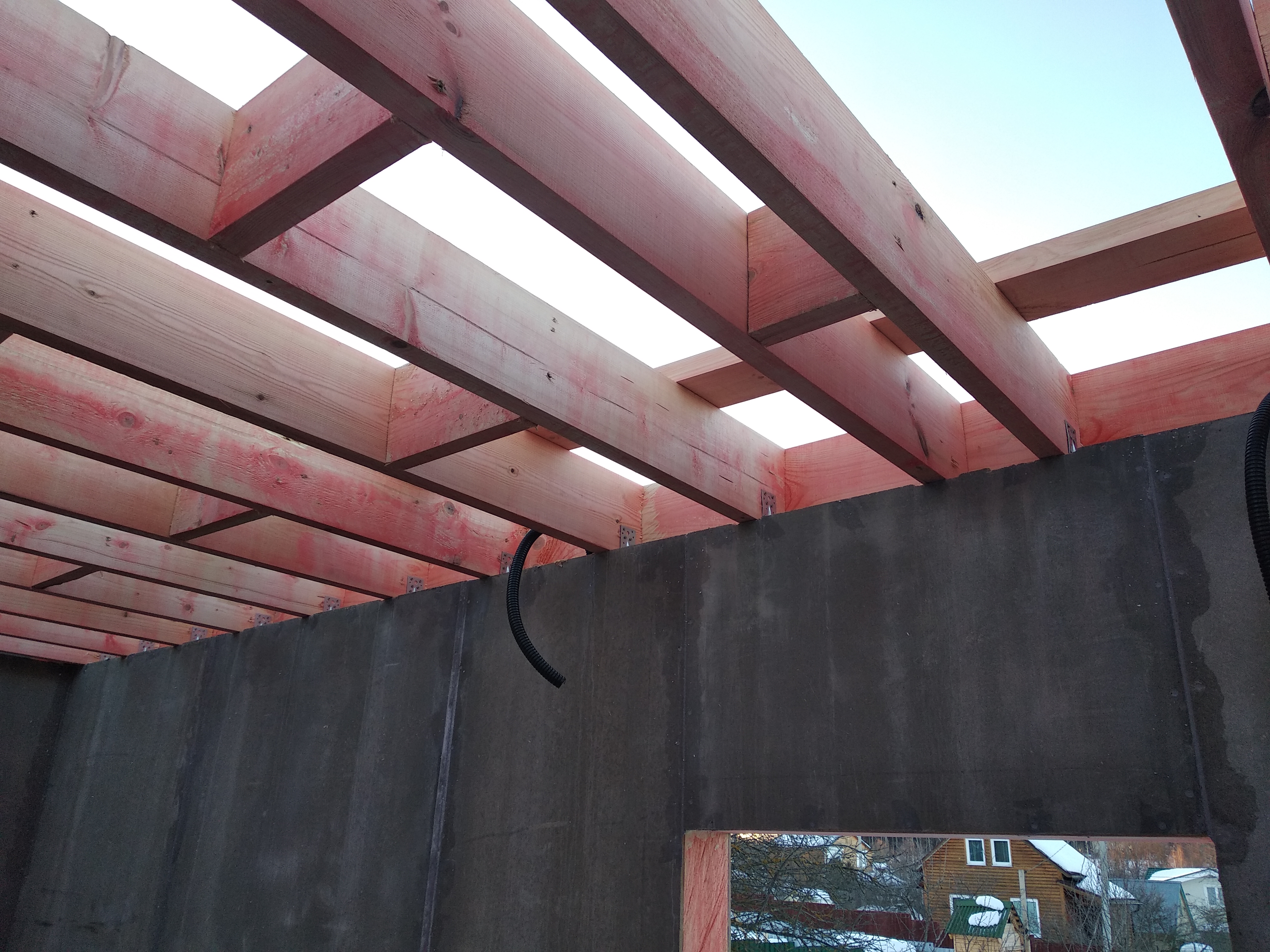 Ростверк изготовлен из калиброванного клееного бруса и защищен снаружи цементно-стружечной плитой