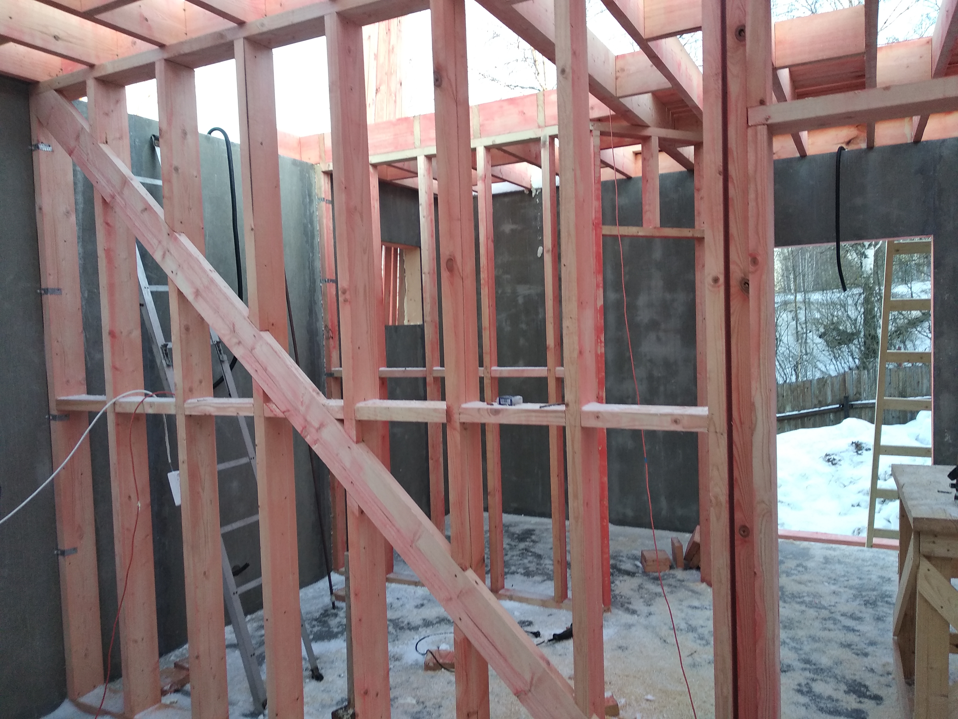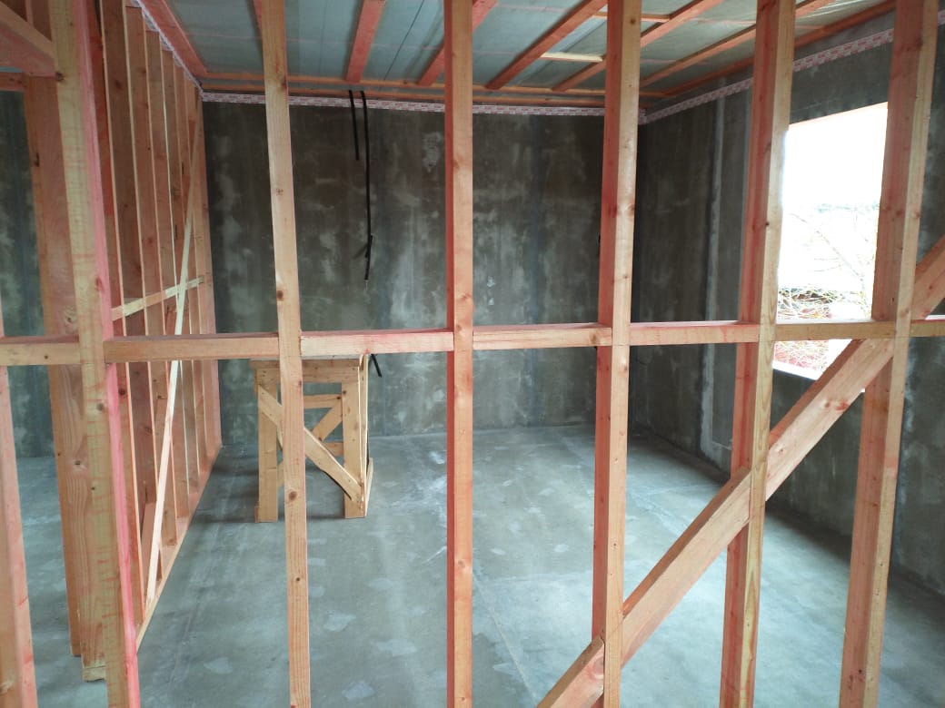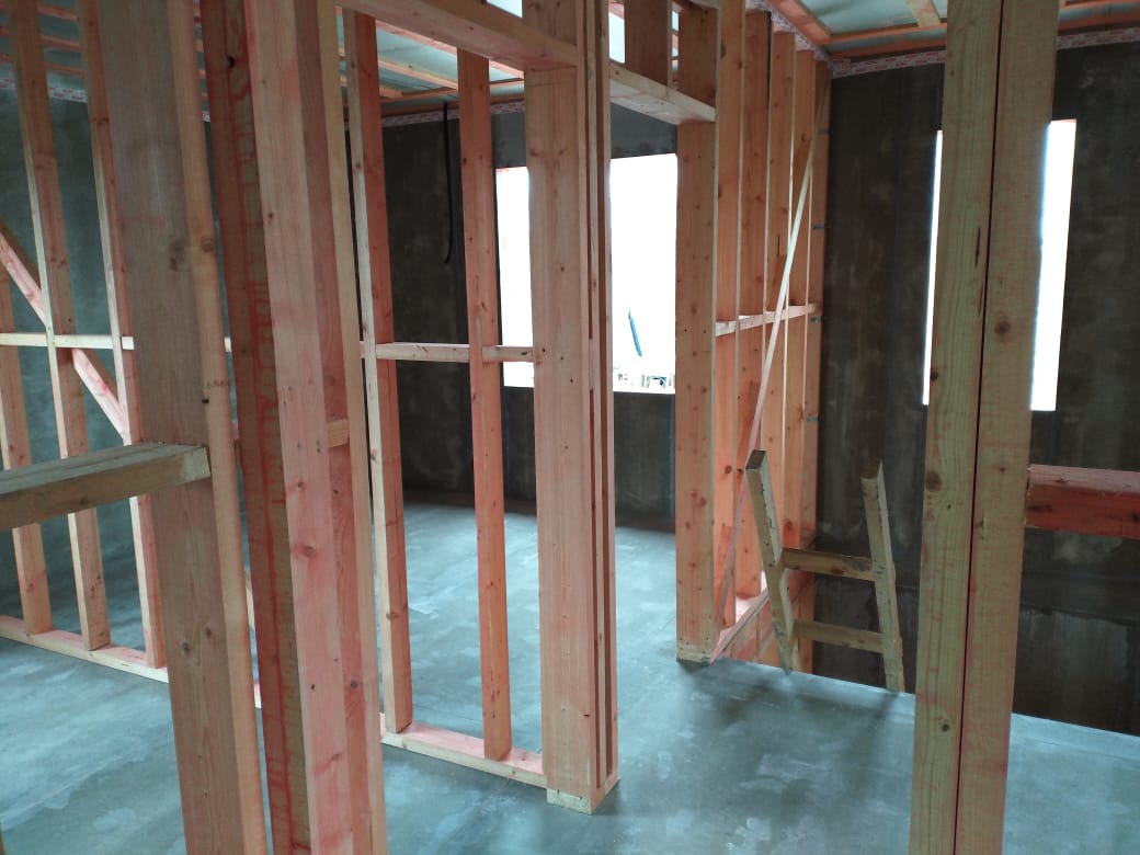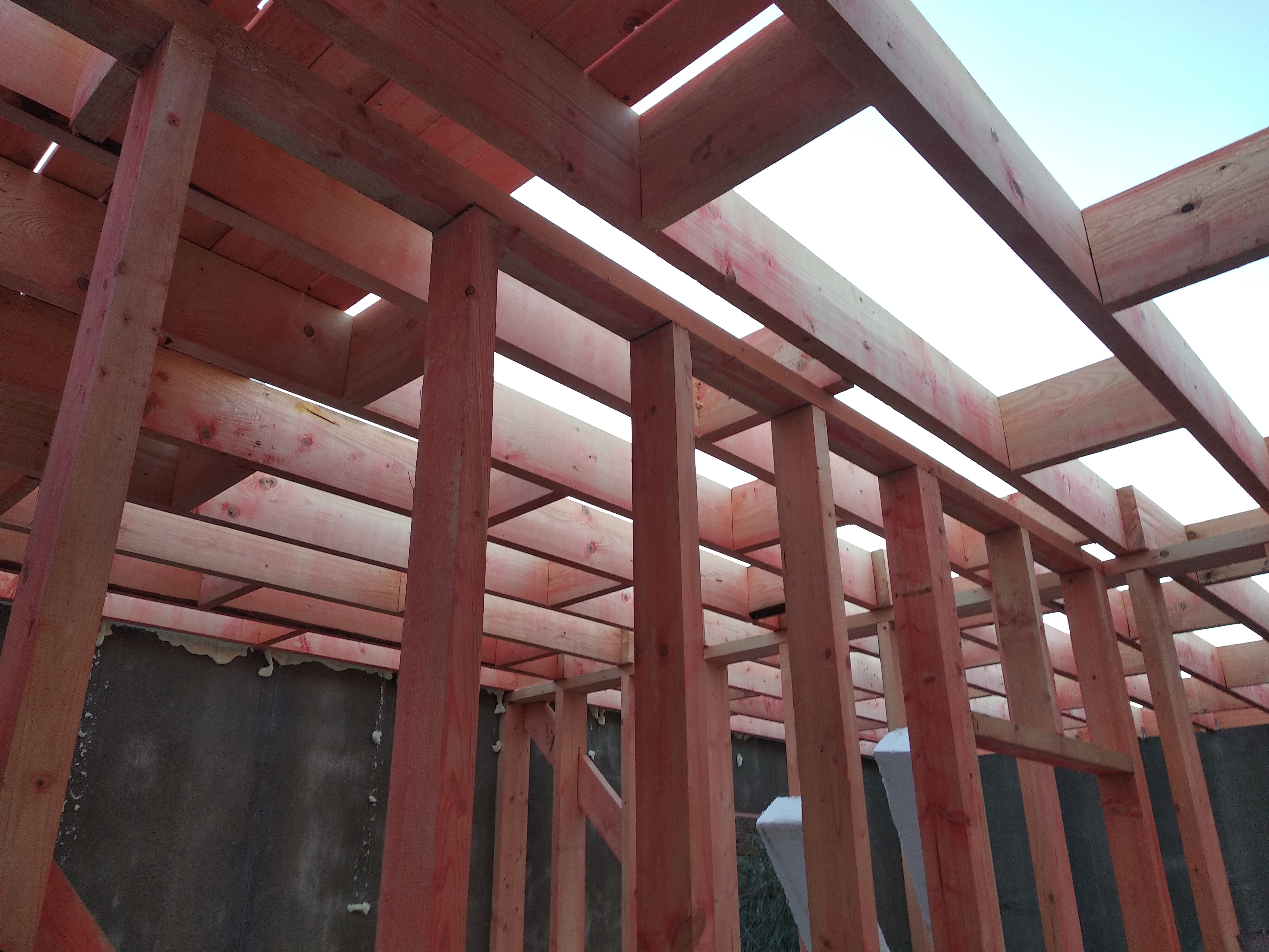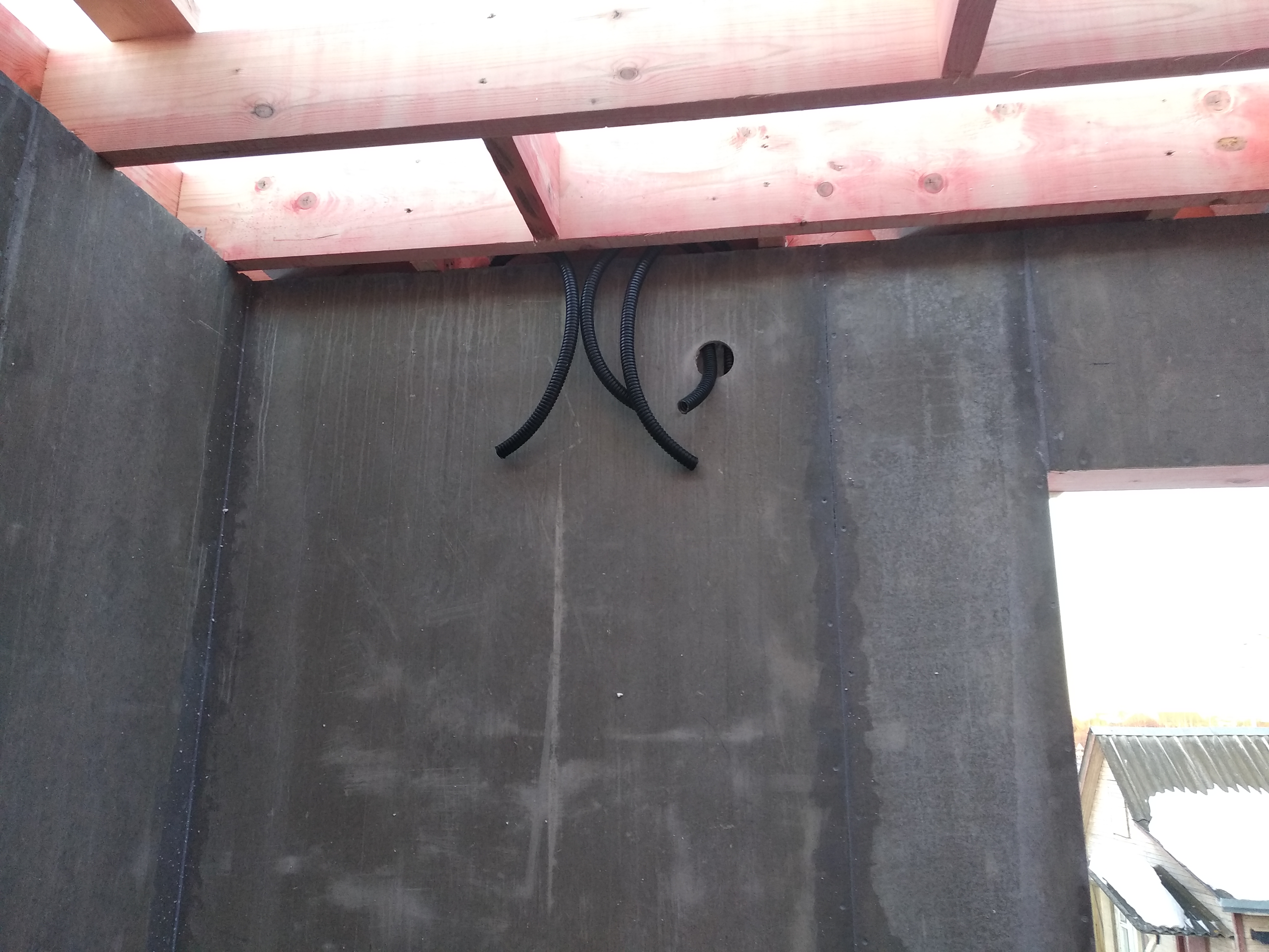 Ростверк изготовлен из калиброванного клееного бруса и защищен снаружи цементно-стружечной плитой