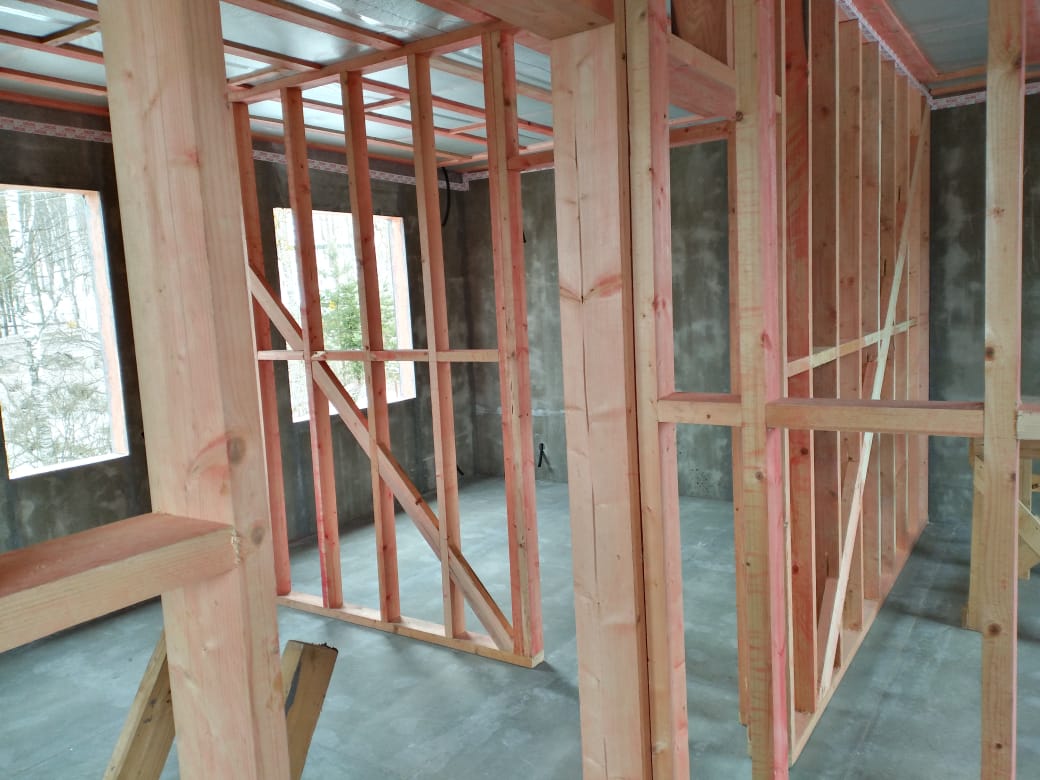 Наши стеновые панели из ЦСП 12 мм! Шириной- 600! Шаг обрусовки в два раза чаще, чем у других. В качестве обрусовочного (соединительного) пиломатериала мы применяем клееную термостойку! (65х 140мм). Теперь никаких мостов холода и кручения пиломатериала! Термостойка нашего производства - это высокотехнологичный продукт.