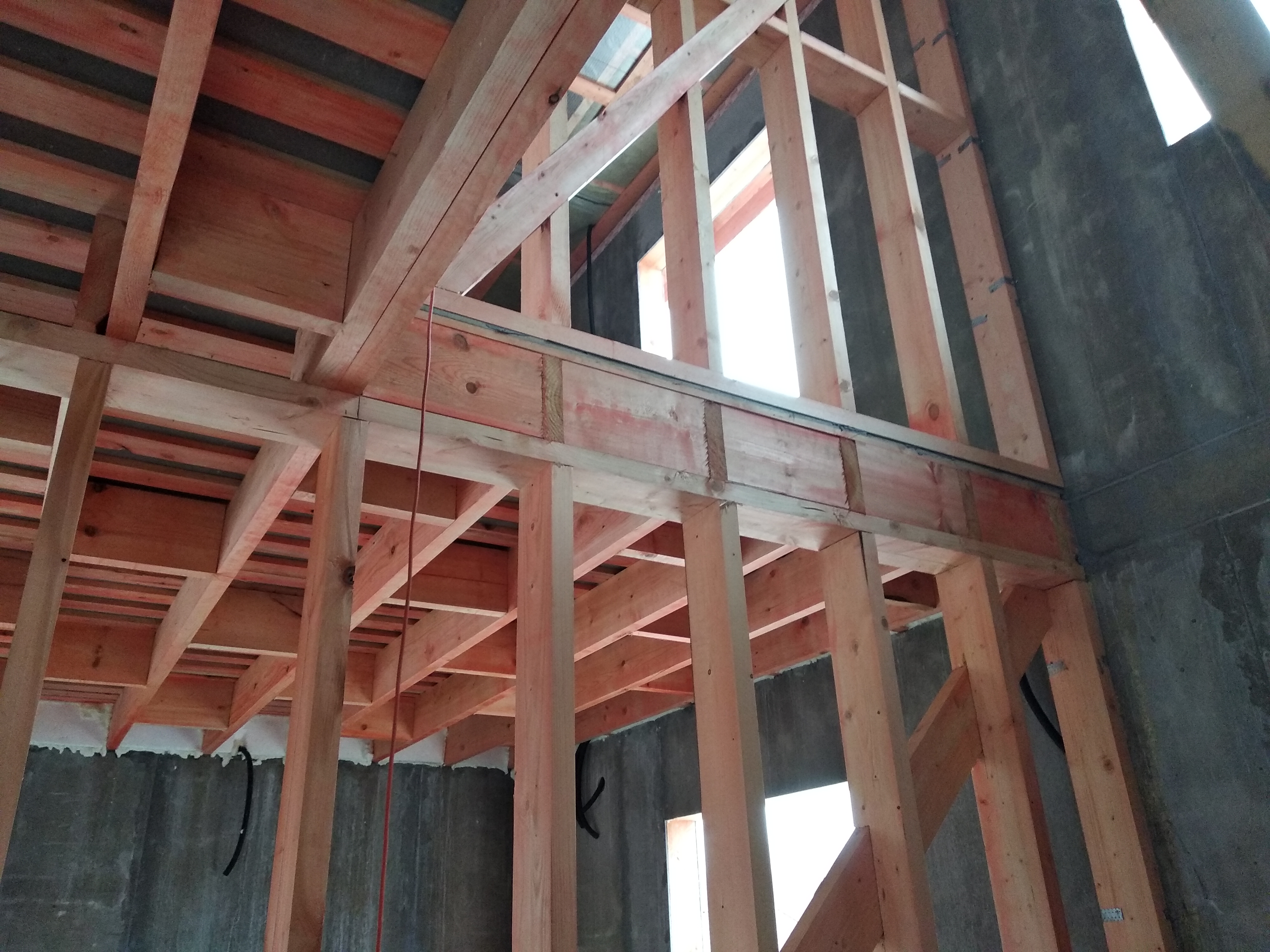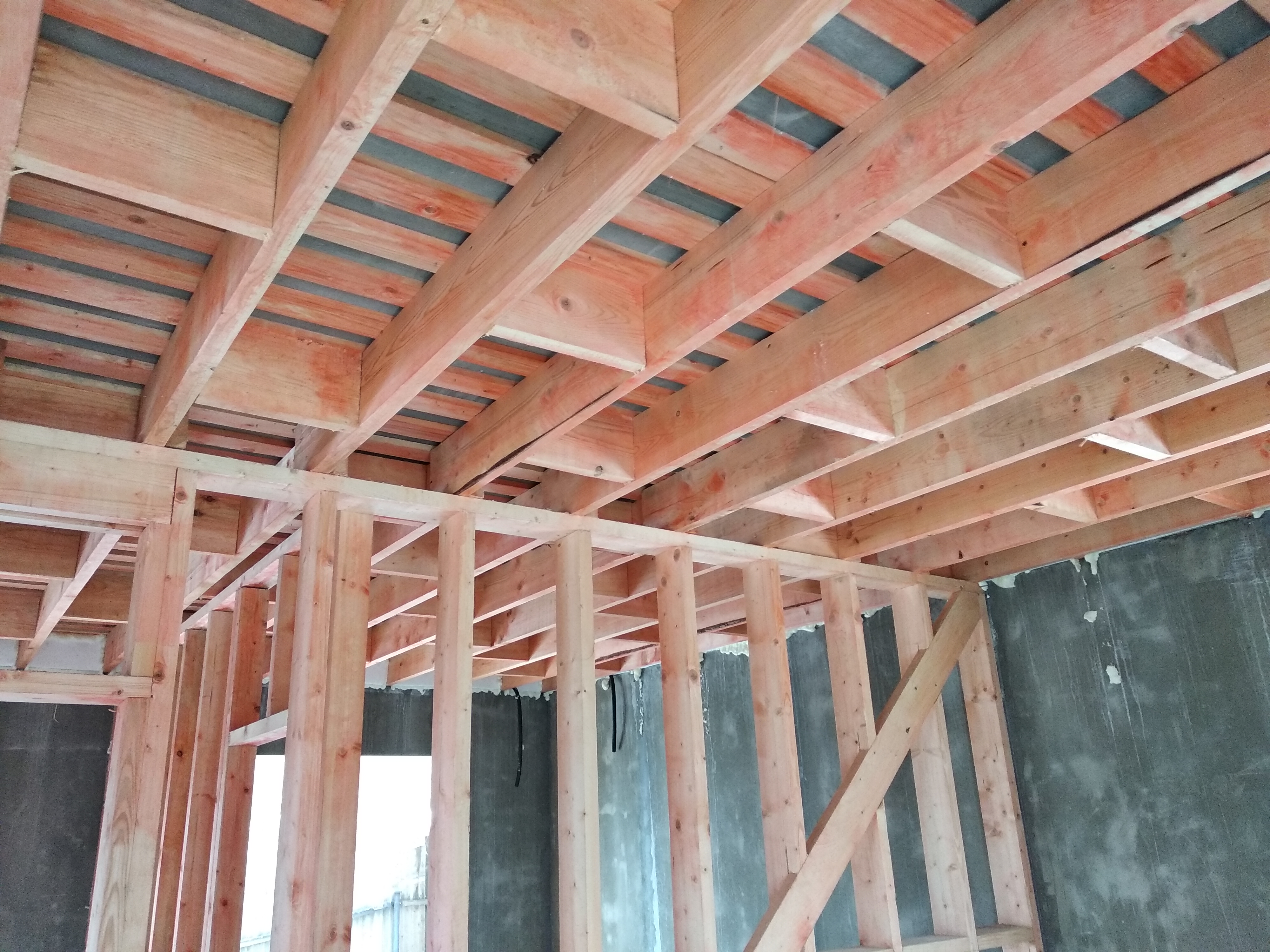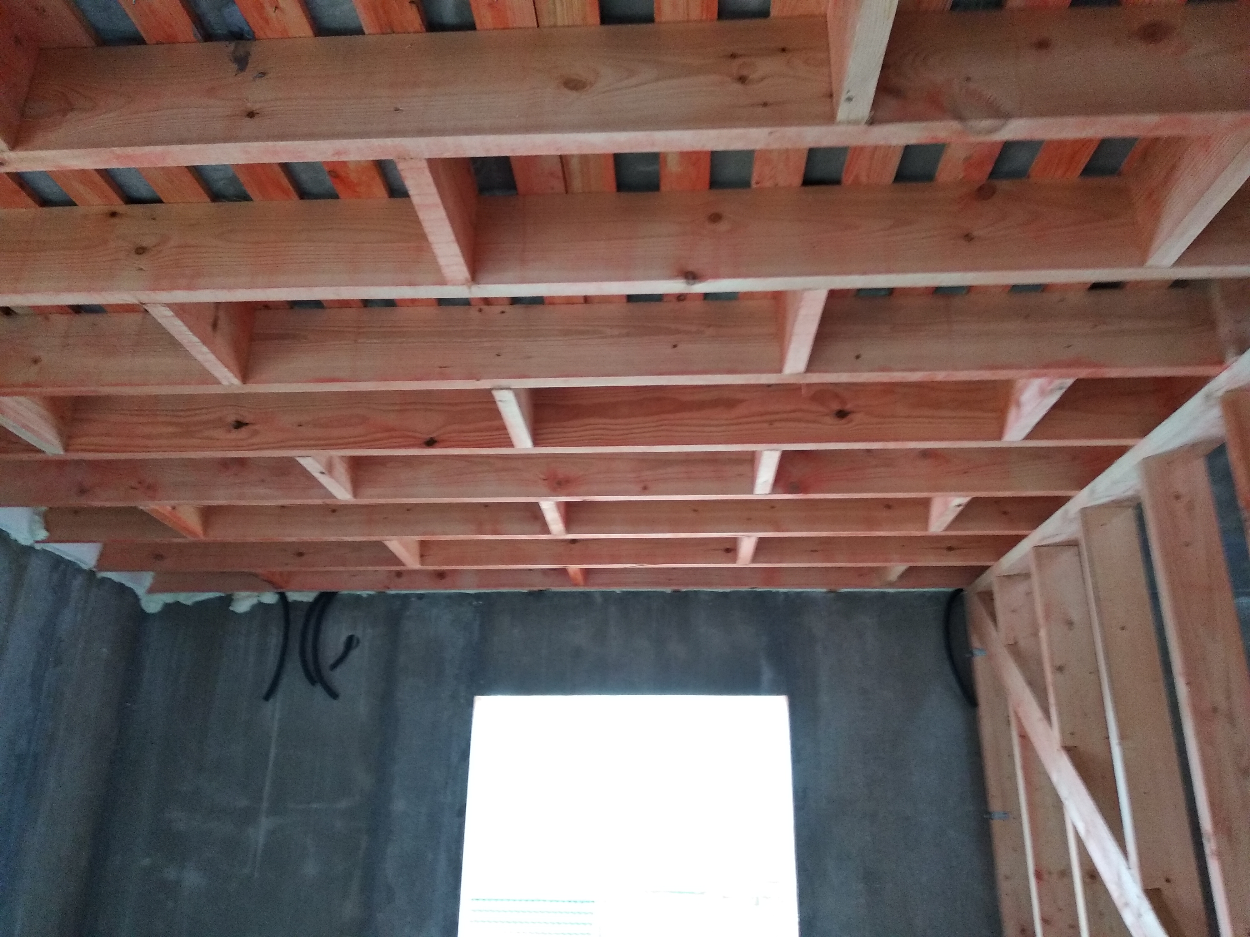 В межэтажных перекрытиях в качестве несущих лаг мы применяем двутавровые балки собственного производства с влагостойкой 24 мм. фанерой в сердечнике.