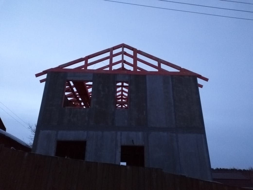 Кровля может быть построена из бруса 150х50мм или SIP панелей. В качестве кровельного материала можно использовать: металлочерепицу, битумную и керамическую черепицу. Также производим кровельные шовные сэндвич-панели.