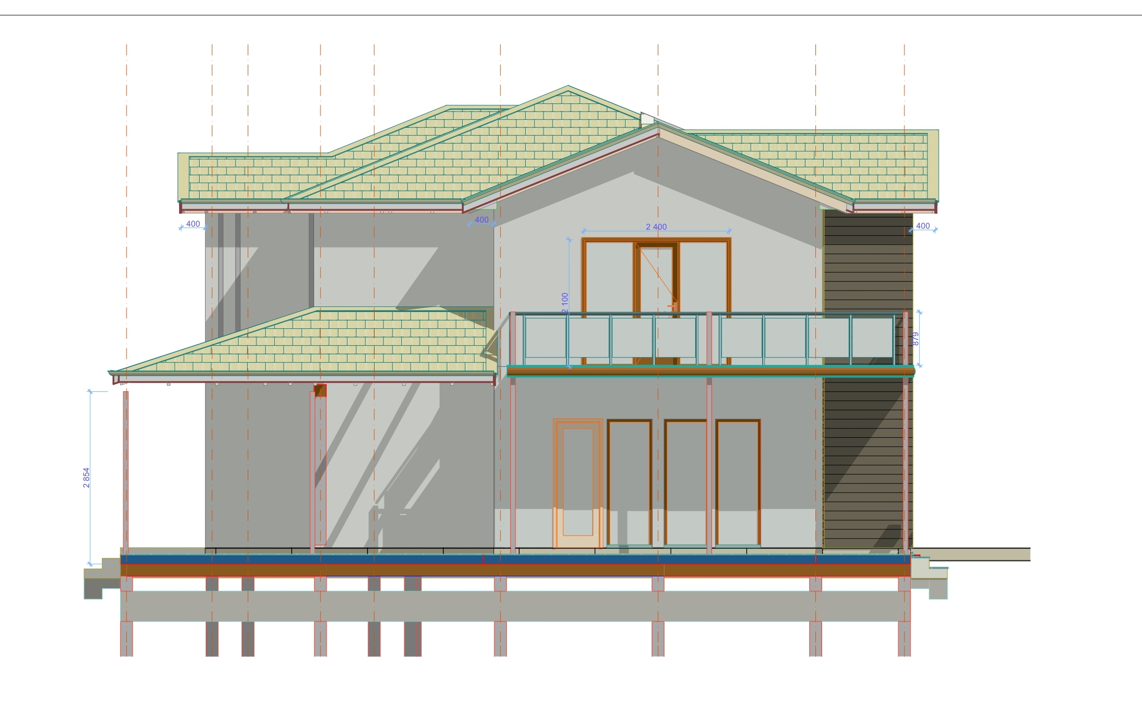 Ростверк изготовлен из калиброванного клееного бруса и защищен снаружи цементно-стружечной плитой