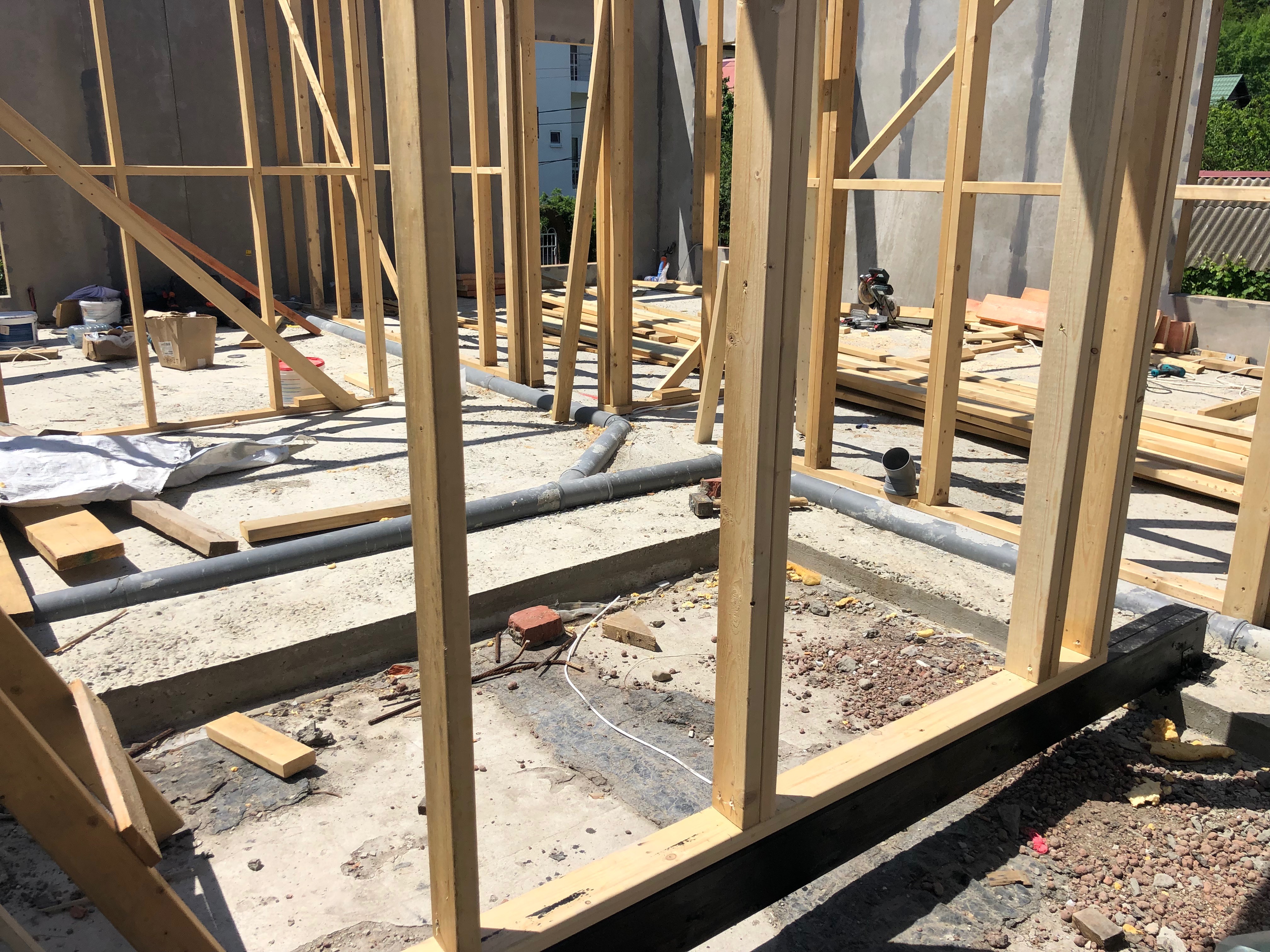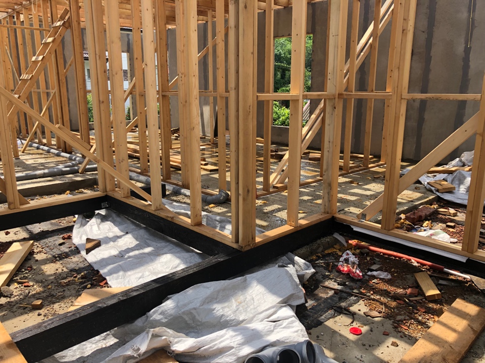 Ростверк изготовлен из калиброванного клееного бруса и защищен снаружи цементно-стружечной плитой