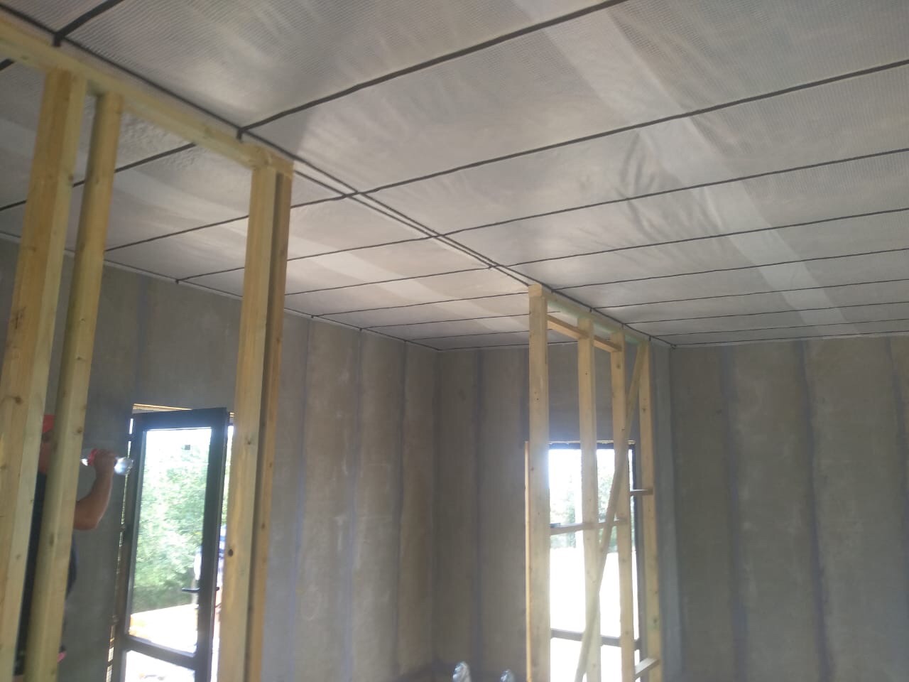 Ростверк изготовлен из калиброванного клееного бруса и защищен снаружи цементно-стружечной плитой