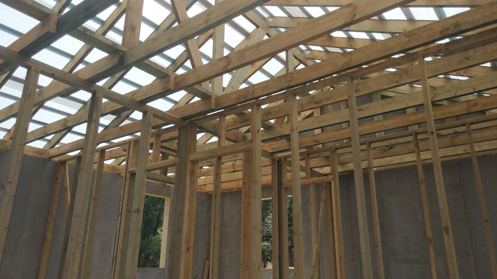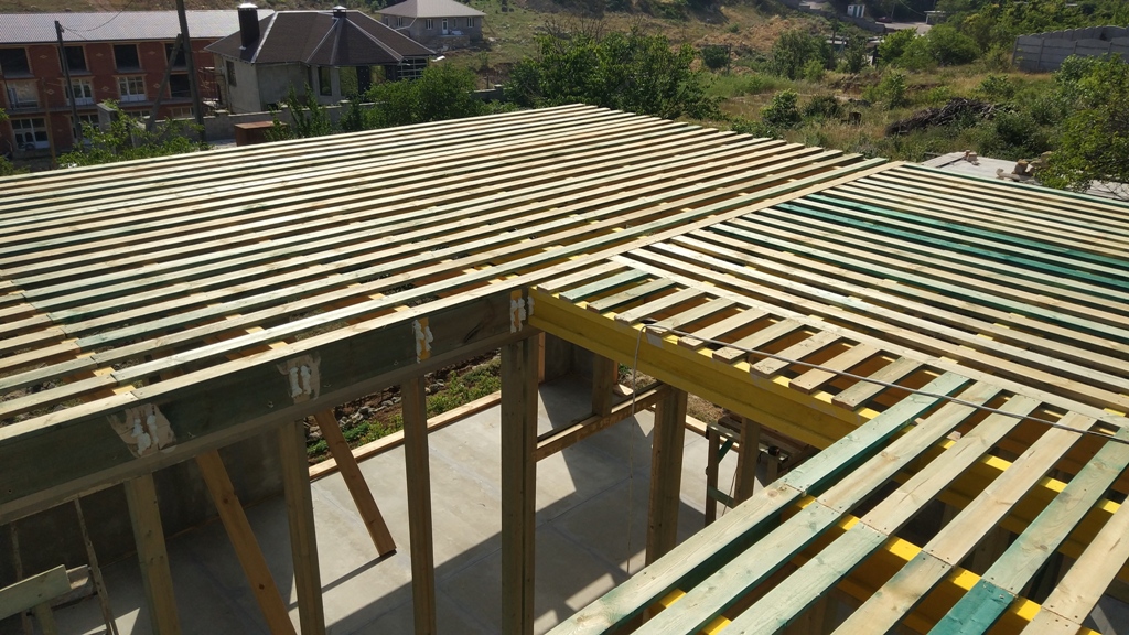 Кровля может быть построена из бруса 150х50мм или SIP панелей. В качестве кровельного материала можно использовать: металлочерепицу, битумную и керамическую черепицу. Также производим кровельные шовные сэндвич-панели.