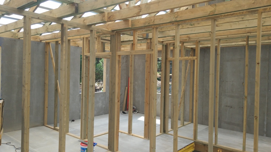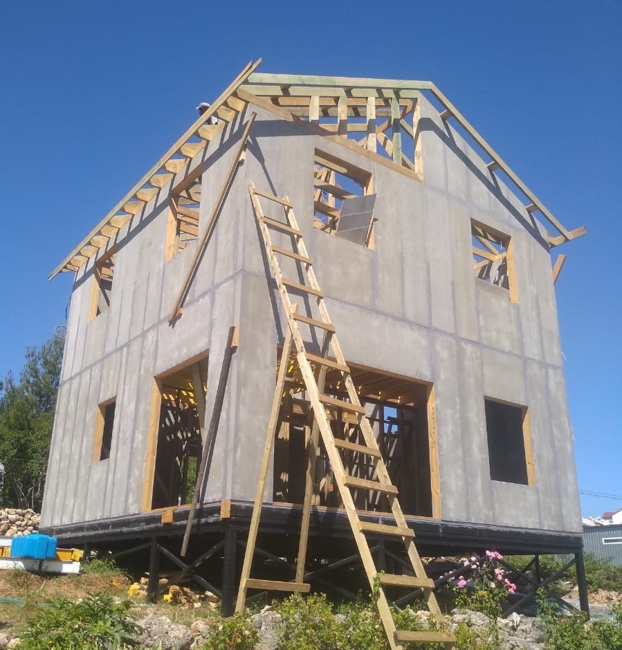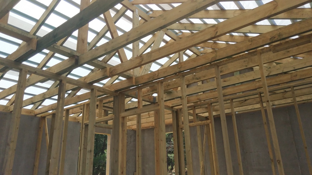 Ростверк изготовлен из калиброванного клееного бруса и защищен снаружи цементно-стружечной плитой