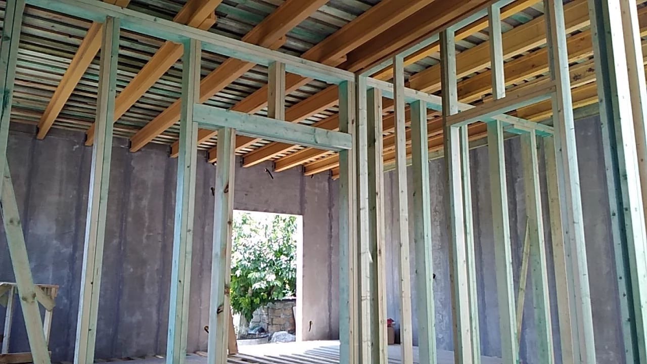 Ростверк изготовлен из калиброванного клееного бруса и защищен снаружи цементно-стружечной плитой